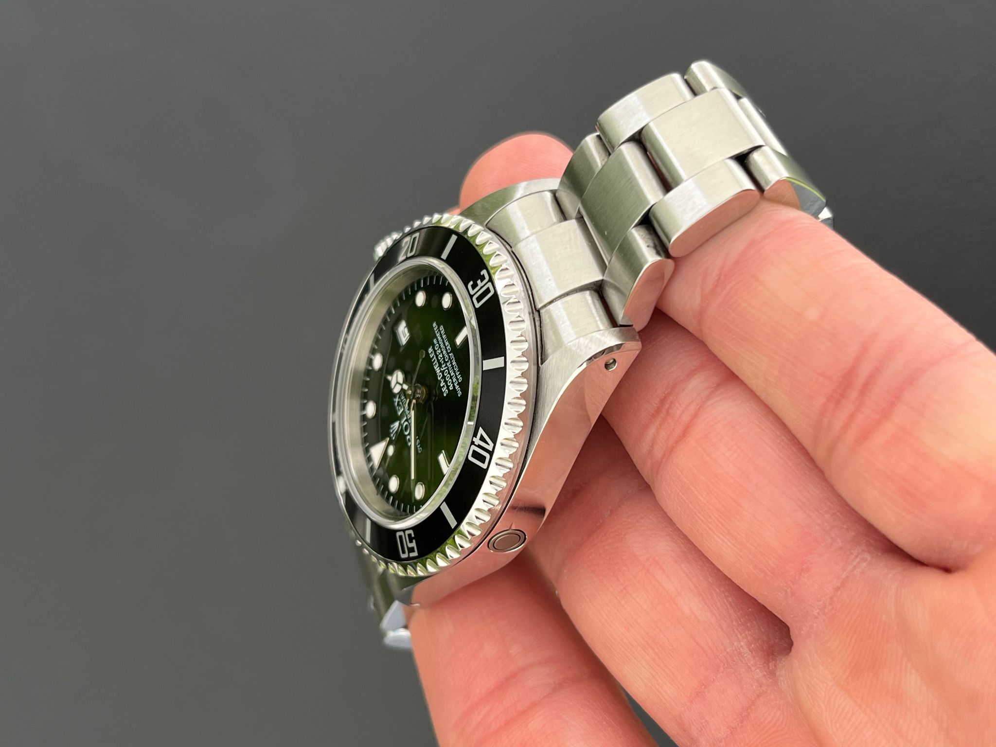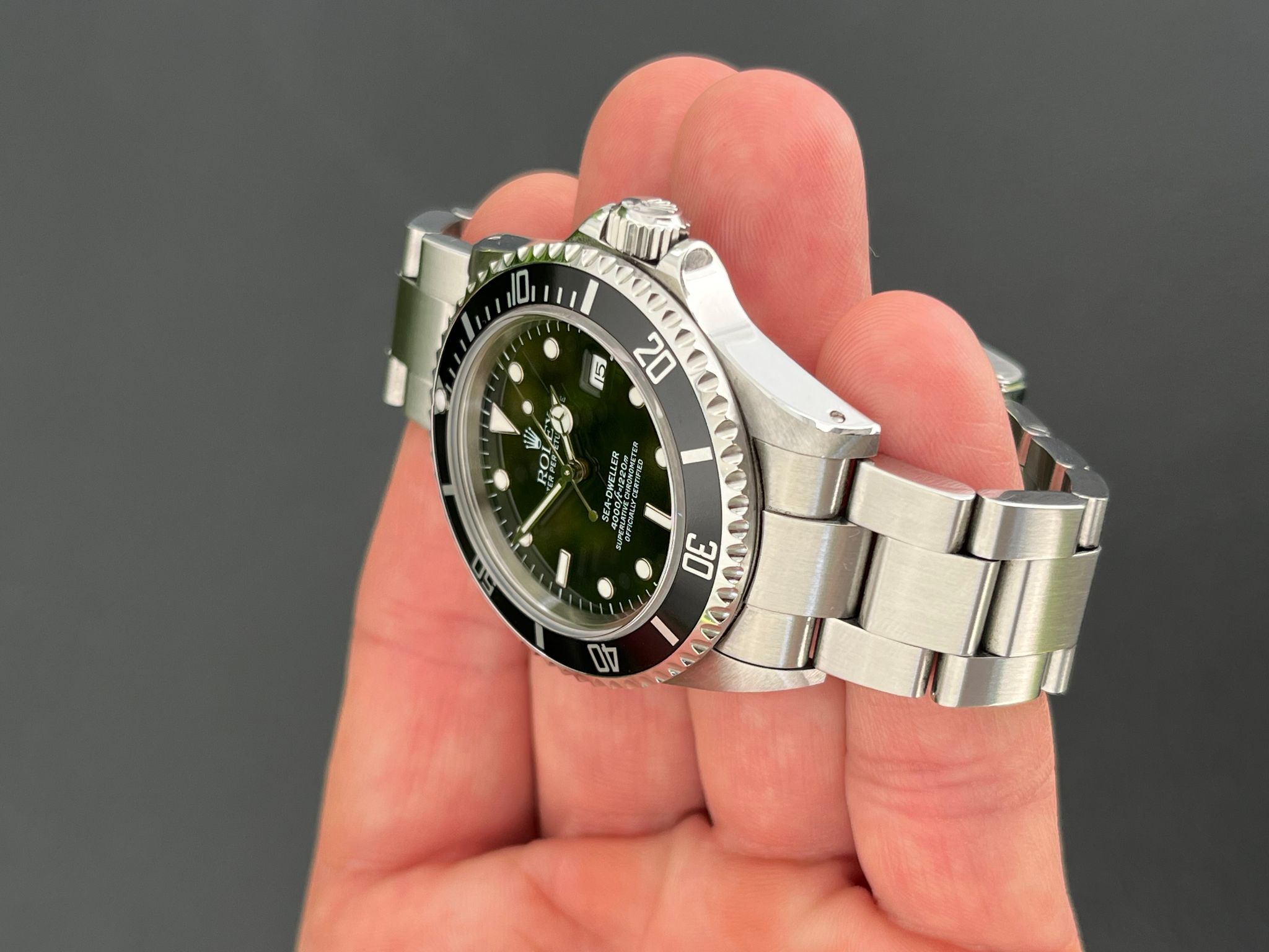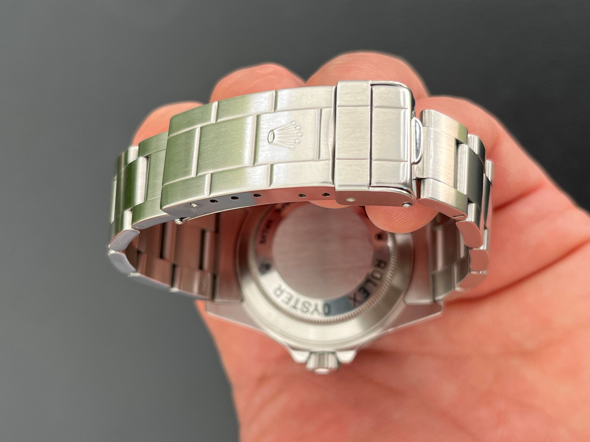 This example is in excellent condition showcasing a razor-sharp holes case and crisp bezel. The bracelet has 12 total links + Dive Extension and shows no stretch. This example comes with original papers dated 6/1998, both hang tags and is in excellent vintage condition!