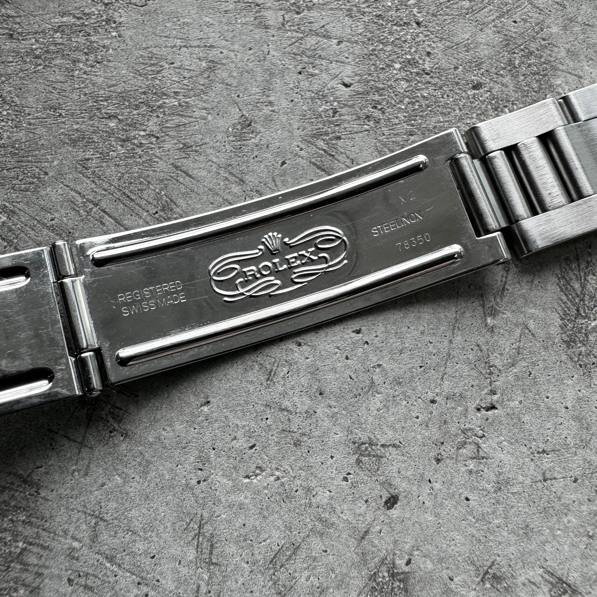 Bracelet/Strap: Original Rolex stainless steel oyster bracelet which remains unpolished with a few light scuffs. The bracelet remains very tight with essentially no stretch. The bracelet reference is 78350 with X2 clasp code dating this bracelet correctly to February 1999. This watch comes with all of the links as new and will fit an 8inch wrist.