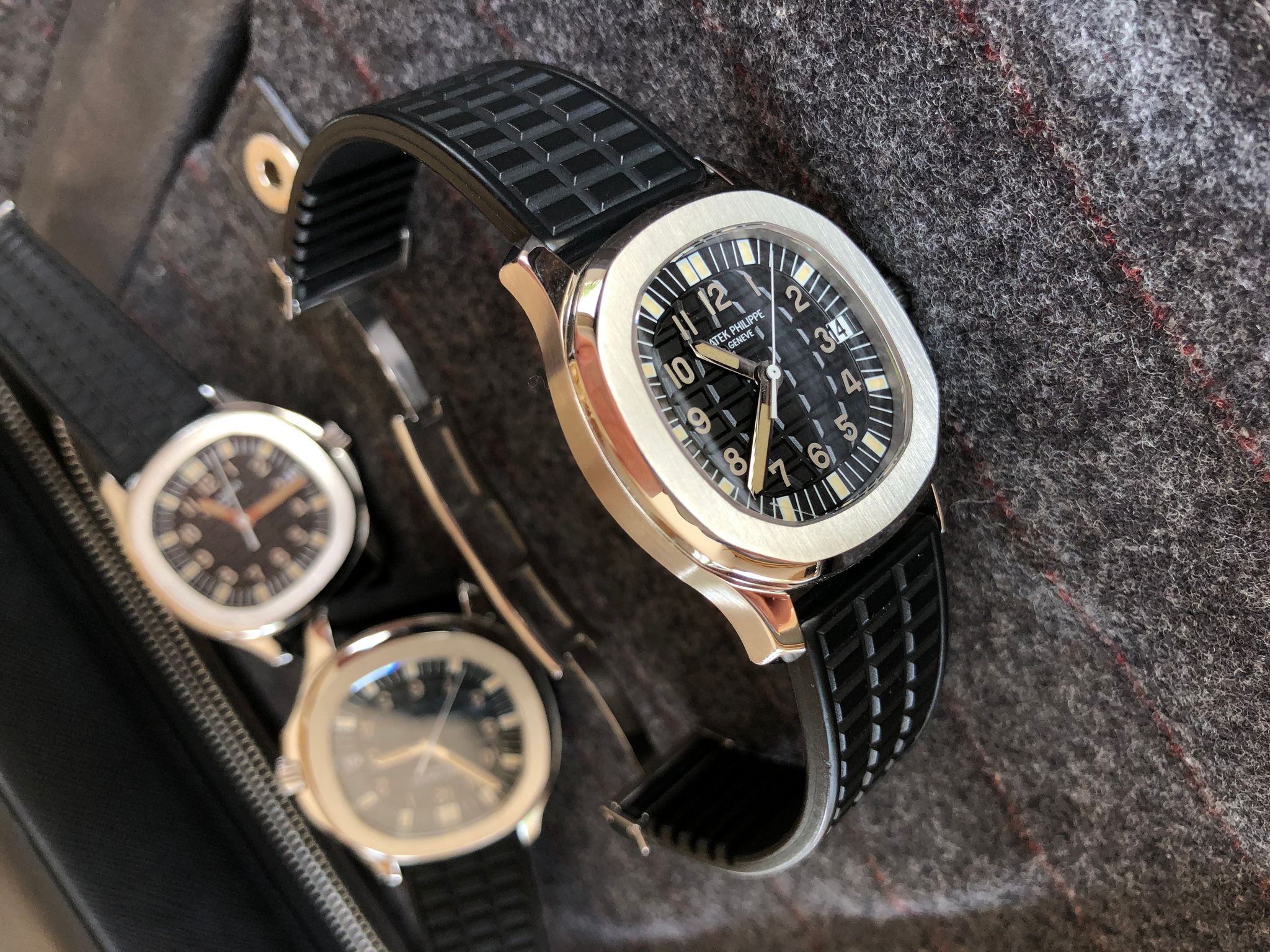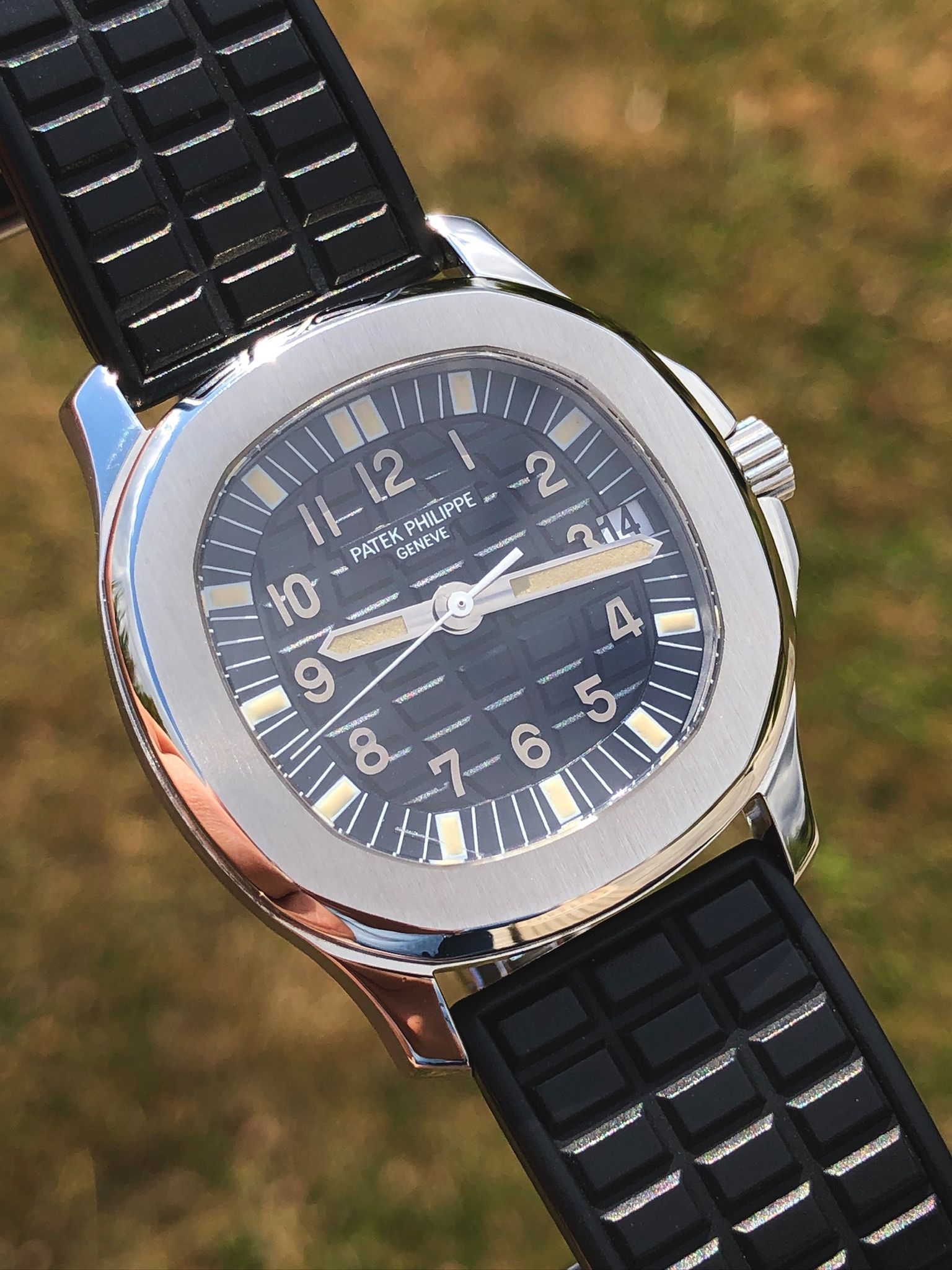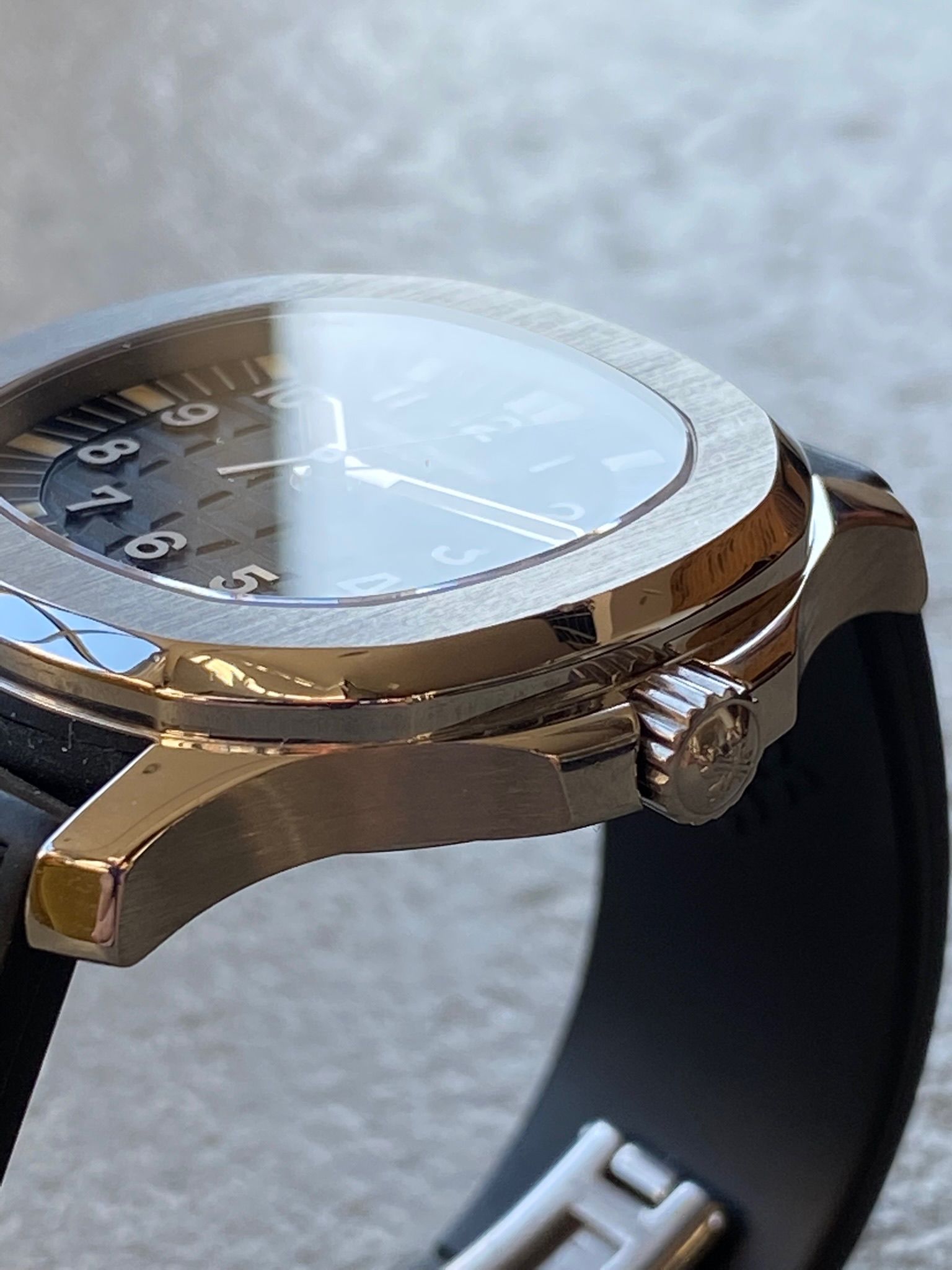 Bracelets: featured with its black rubber strap (another Patek rubber color strap can be discussed).