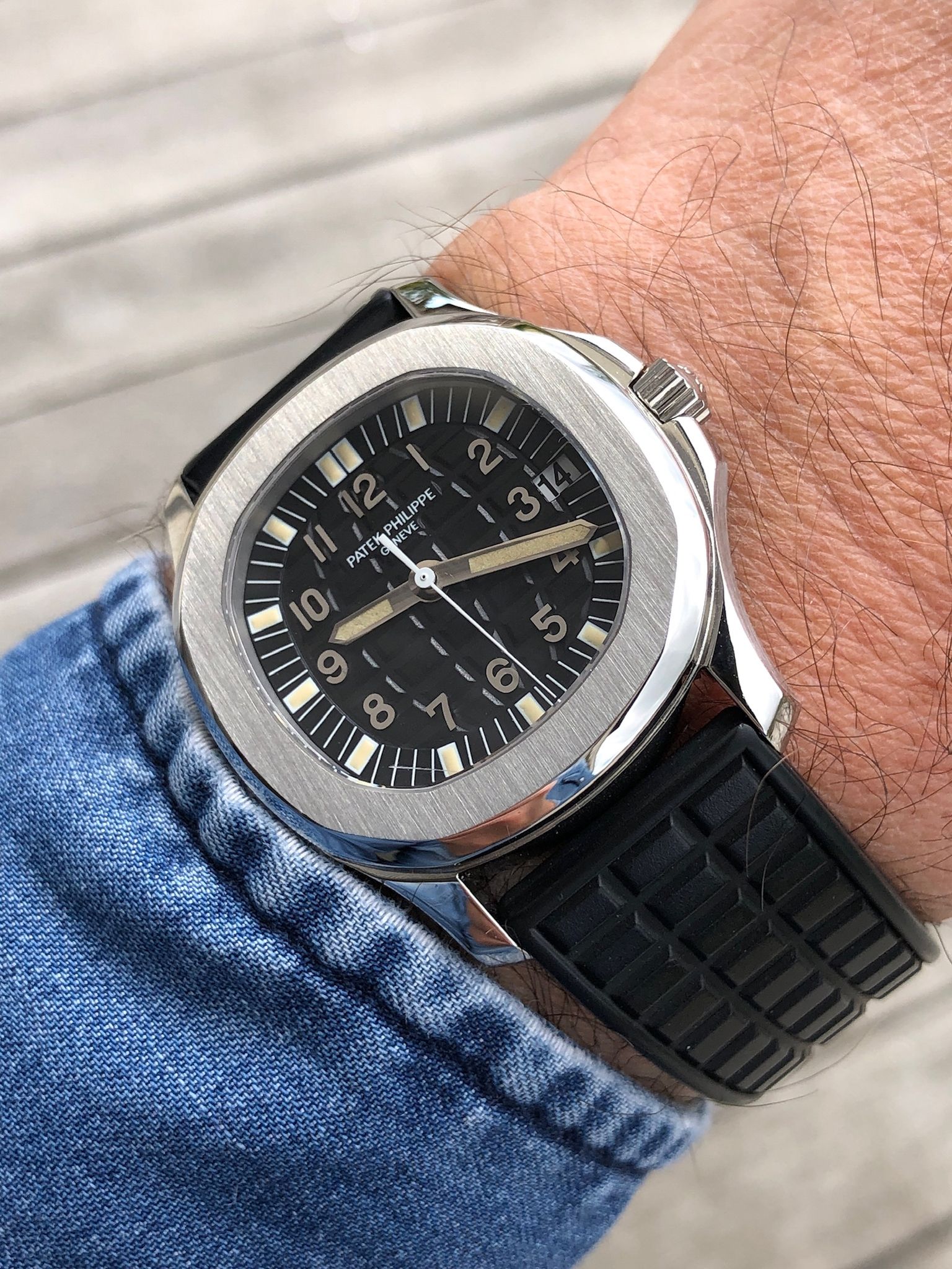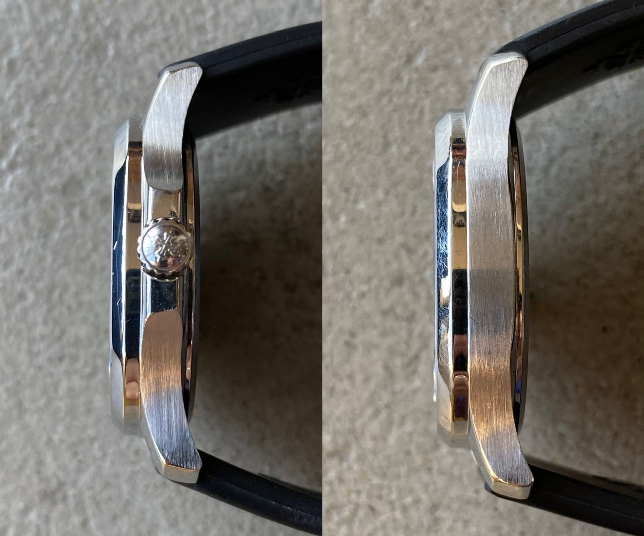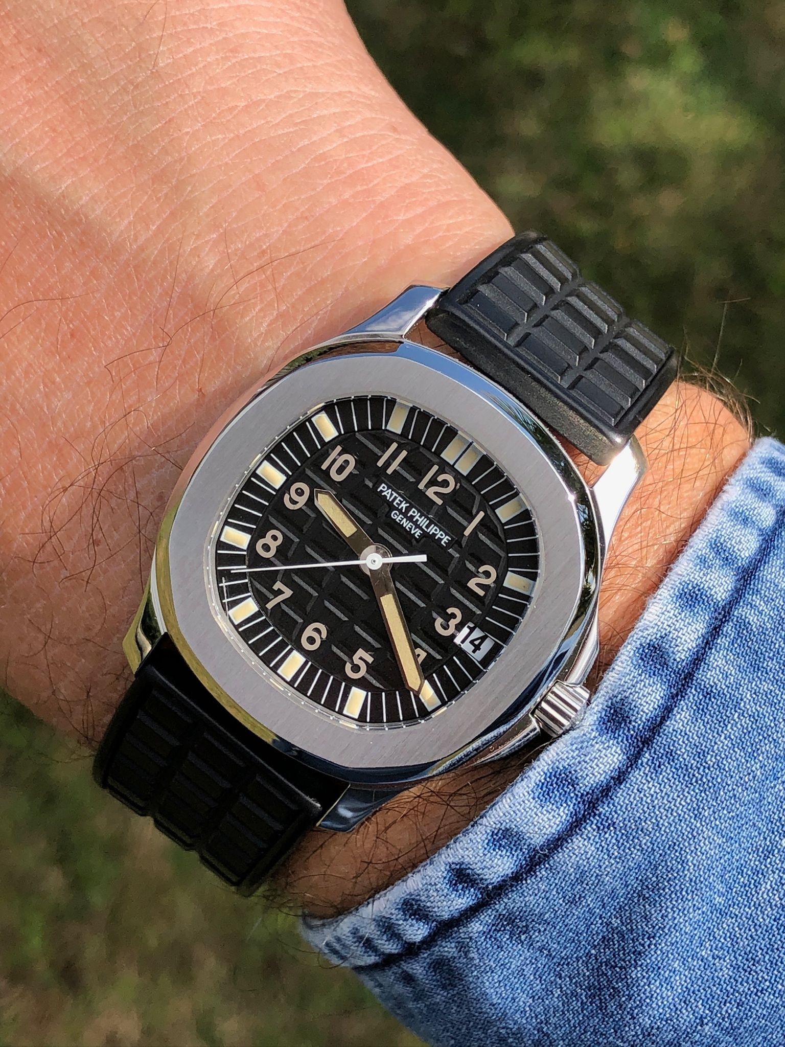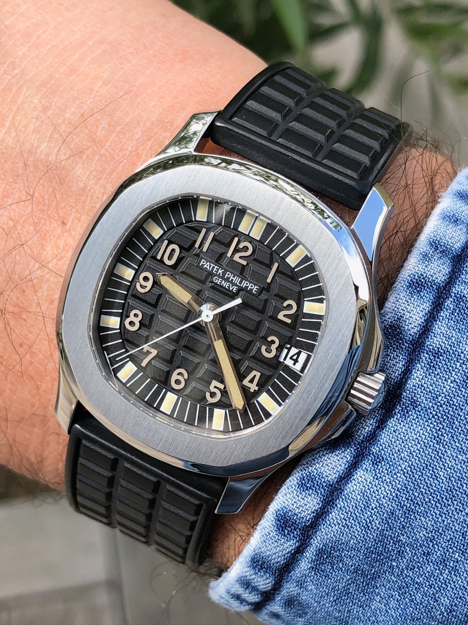 Bracelets: featured with its black rubber strap (another Patek rubber color strap can be discussed).