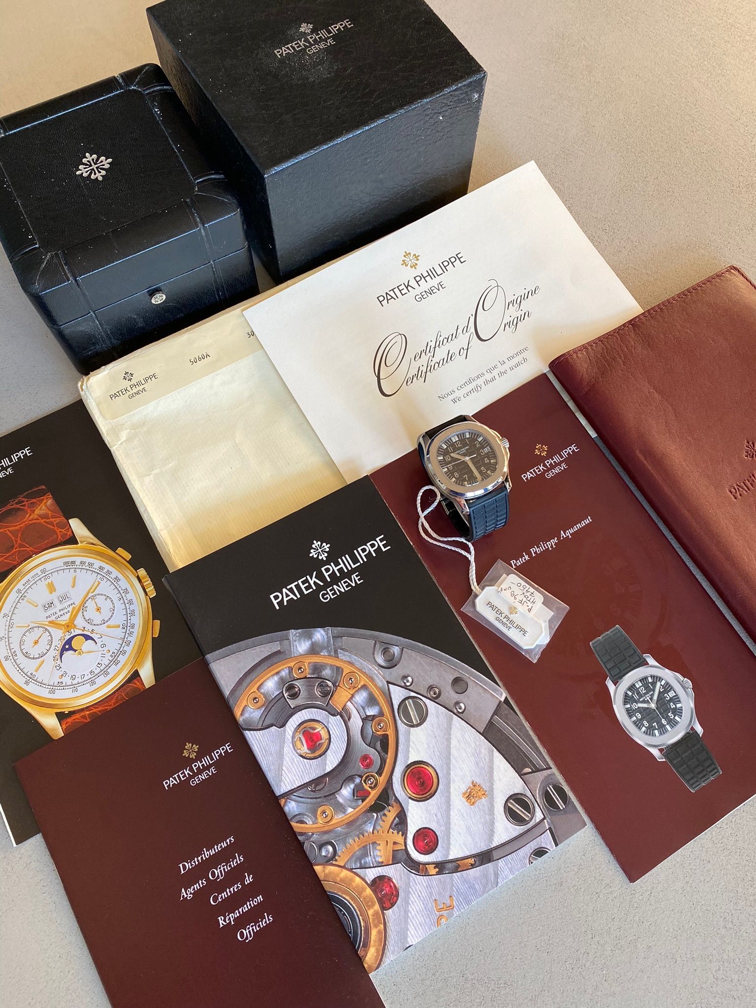 Papers & box: original guarantee with no name (open papers), cover box, box (another flaking one…what a shame Patek used this supplier), booklets and tag.