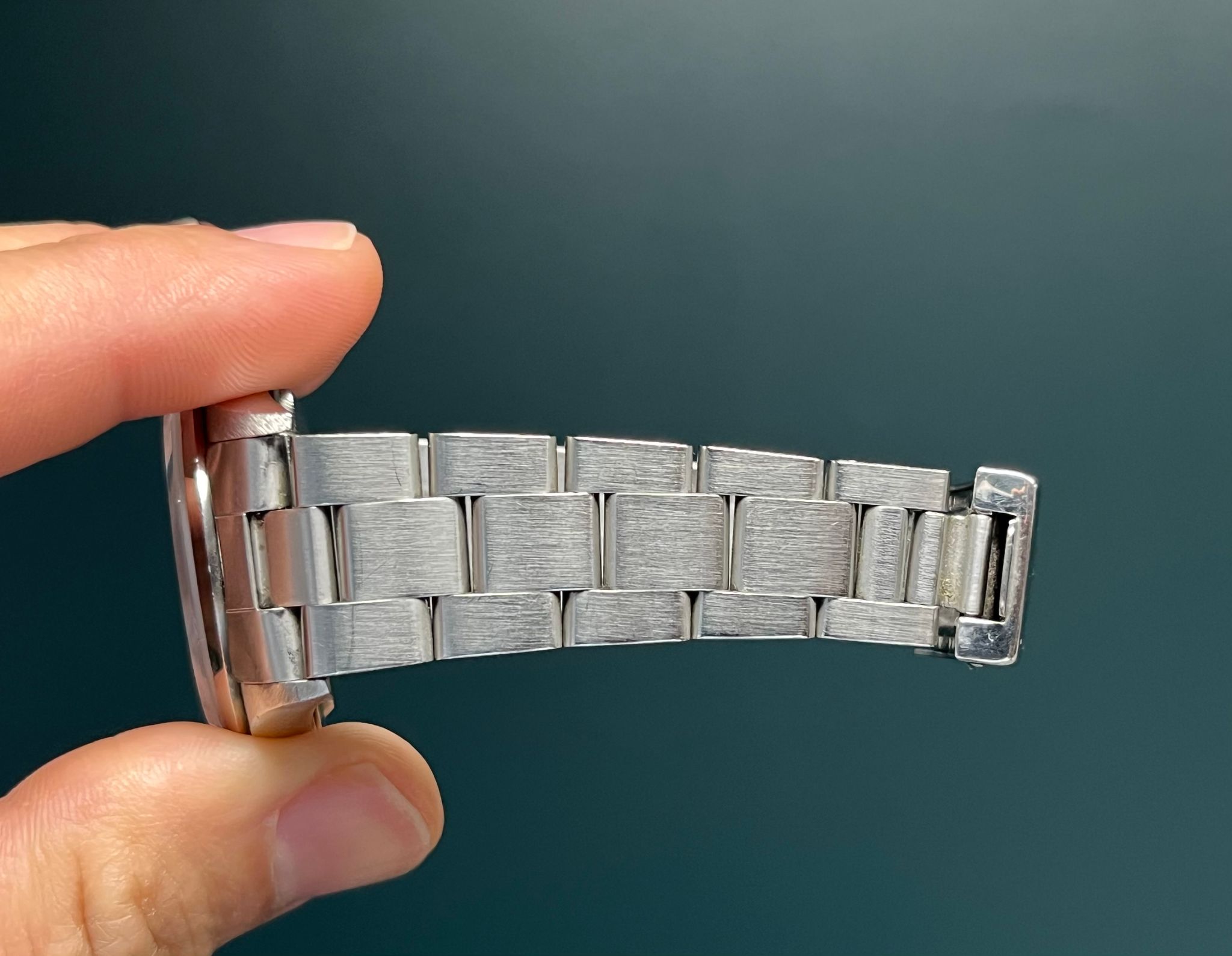 Today's example comes as watch only and is in excellent condition. The no holes case is sharp and crisp. The 3-6-9 Blue dial is mint and shows no visible wear. The bracelet is fully linked and show no stretch. A top example in its reference class.