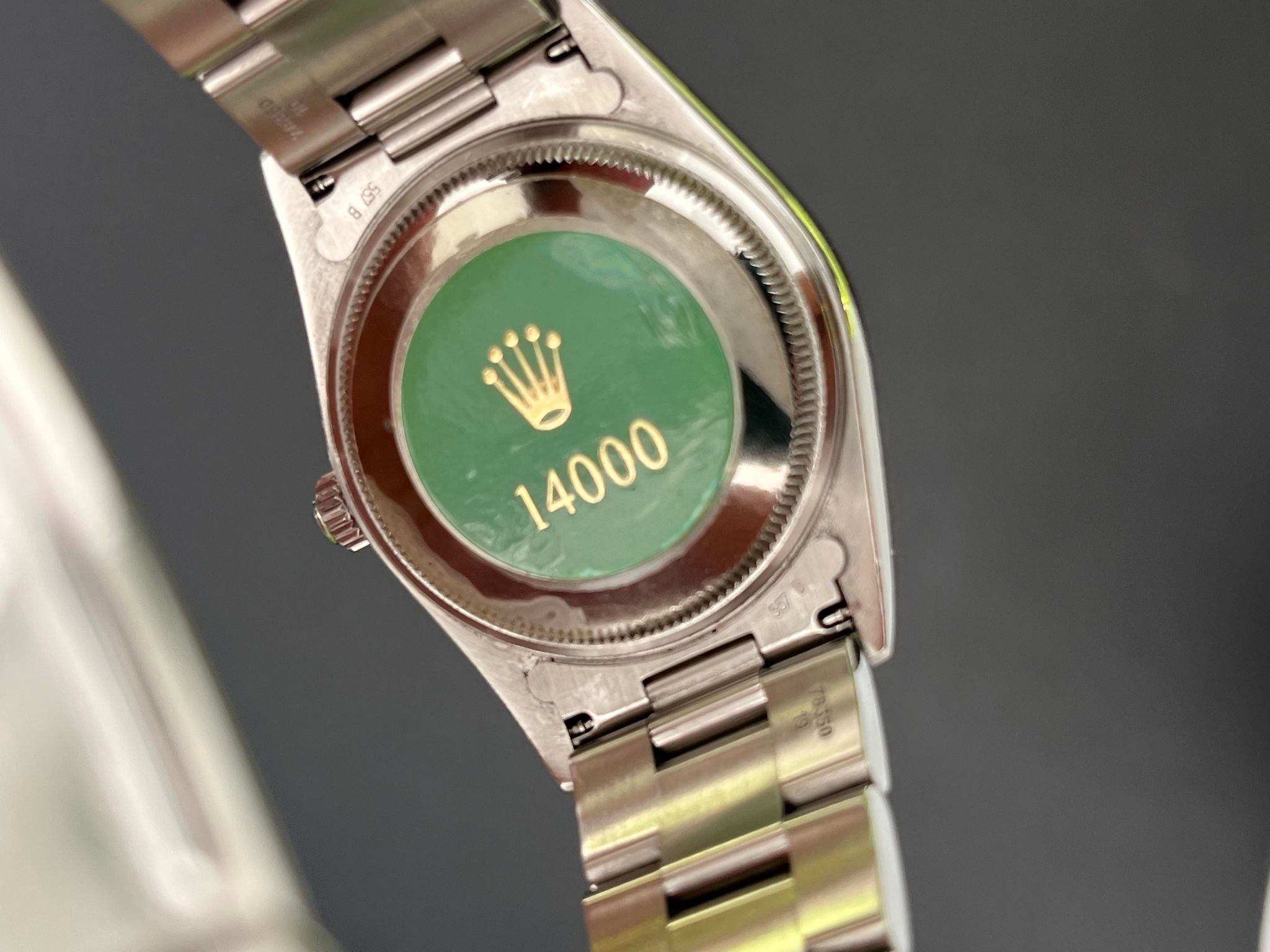 The Rolex Oyster Perpetual Air-King Reference 14000 with a black stick Dial is a stunning example of Rolex's commitment to timeless elegance and superior craftsmanship. This exquisite timepiece features a 34mm stainless steel case, perfectly balanced for both comfort and style. The sharp black stick dial adds a touch of sophistication, beautifully contrasted by the sleek, minimalist design and luminous hour markers. The smooth bezel and classic Oyster bracelet enhance its refined aesthetic, making it suitable for any occasion. This particular model, with its rare and captivating black salmon dial, stands out as a distinctive and highly sought-after addition to any watch collection, embodying the perfect blend of tradition and modernity.