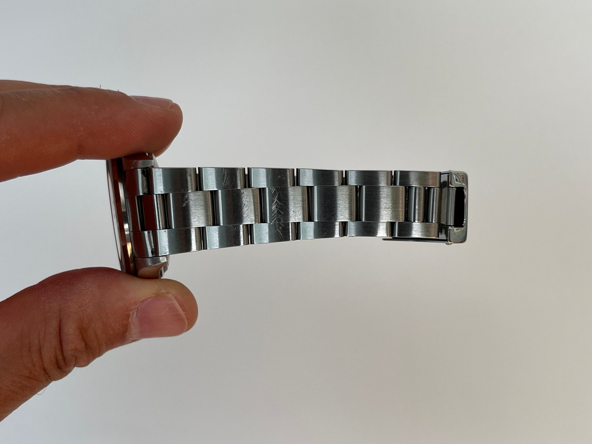 Today's example comes to us in excellent unpolished condition. The no holes case is sharp and crisp. The black stick dial is mint and shows no visible wear. The bracelet has 12 total links and shows no stretch. The case back sticker is fully intact. Just an excellent example in top condition at the right price!