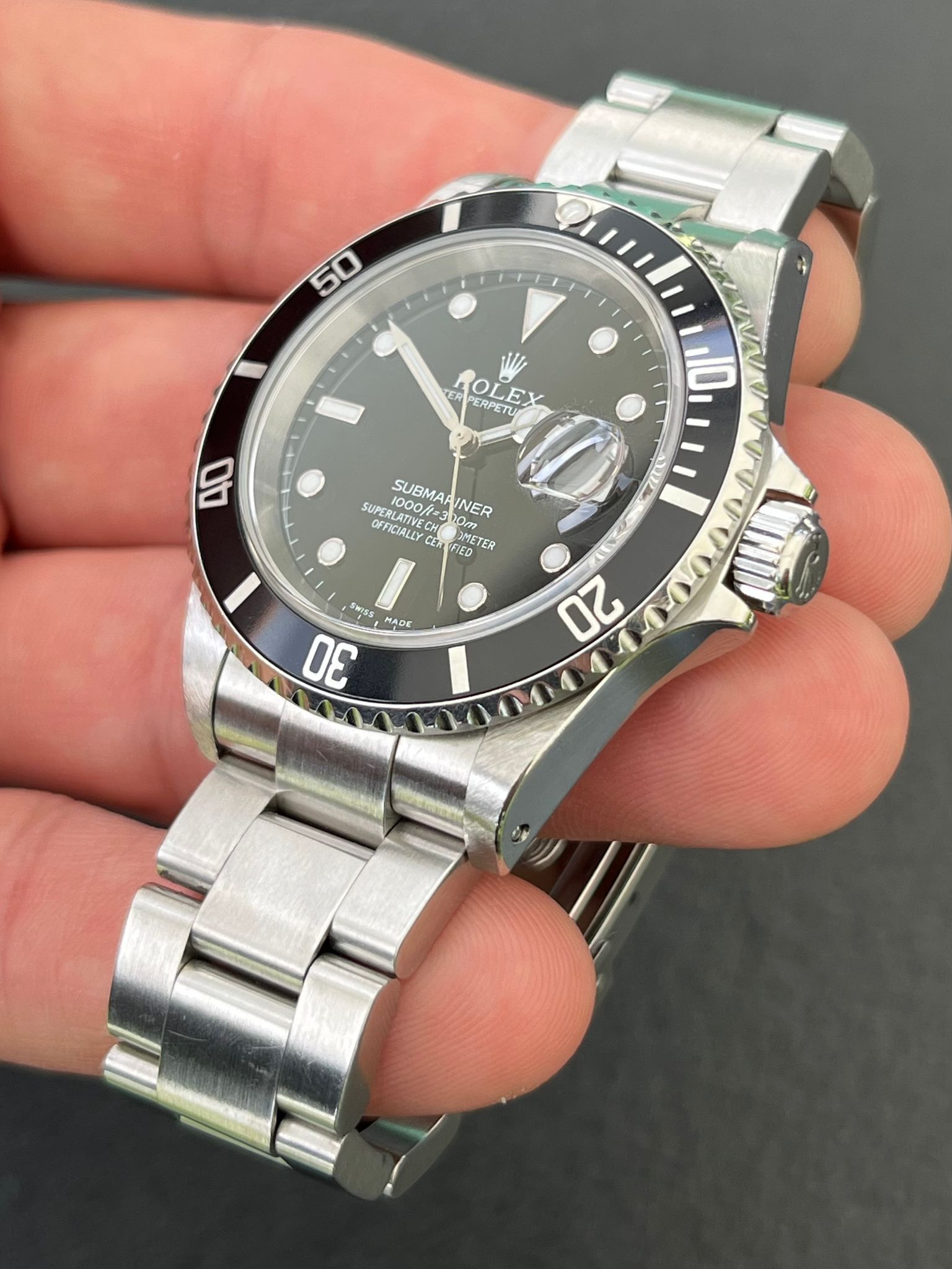 The Rolex 16610 is a highly sought-after vintage timepiece known for its distinctive design. This classic Submariner model, produced until the mid-2000s, features a stainless steel case giving it a sleek and timeless appearance. Renowned for its durability, water resistance, and iconic aesthetics, the Rolex 16610 is a beloved choice among watch enthusiasts and collectors.
