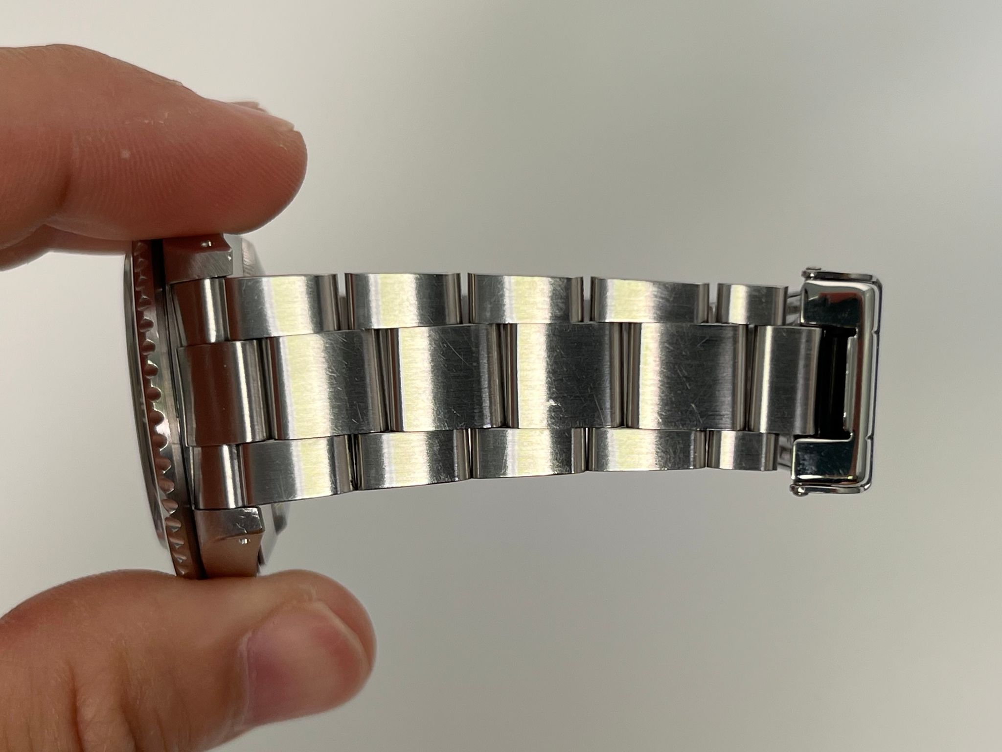 Today we bring you a beautiful Submariner reference 16610 accompanied by its original punched papers . This example has a case that is excellent with thick chamfers present. The insert, dial and Saphire crystal are excellent showing no visible wear. The dial and hands show a nice matching patina. The SEL solid link oyster bracelet has 12 total links plus dive extension and shows no stretch. This example is running COSC and keeping time.