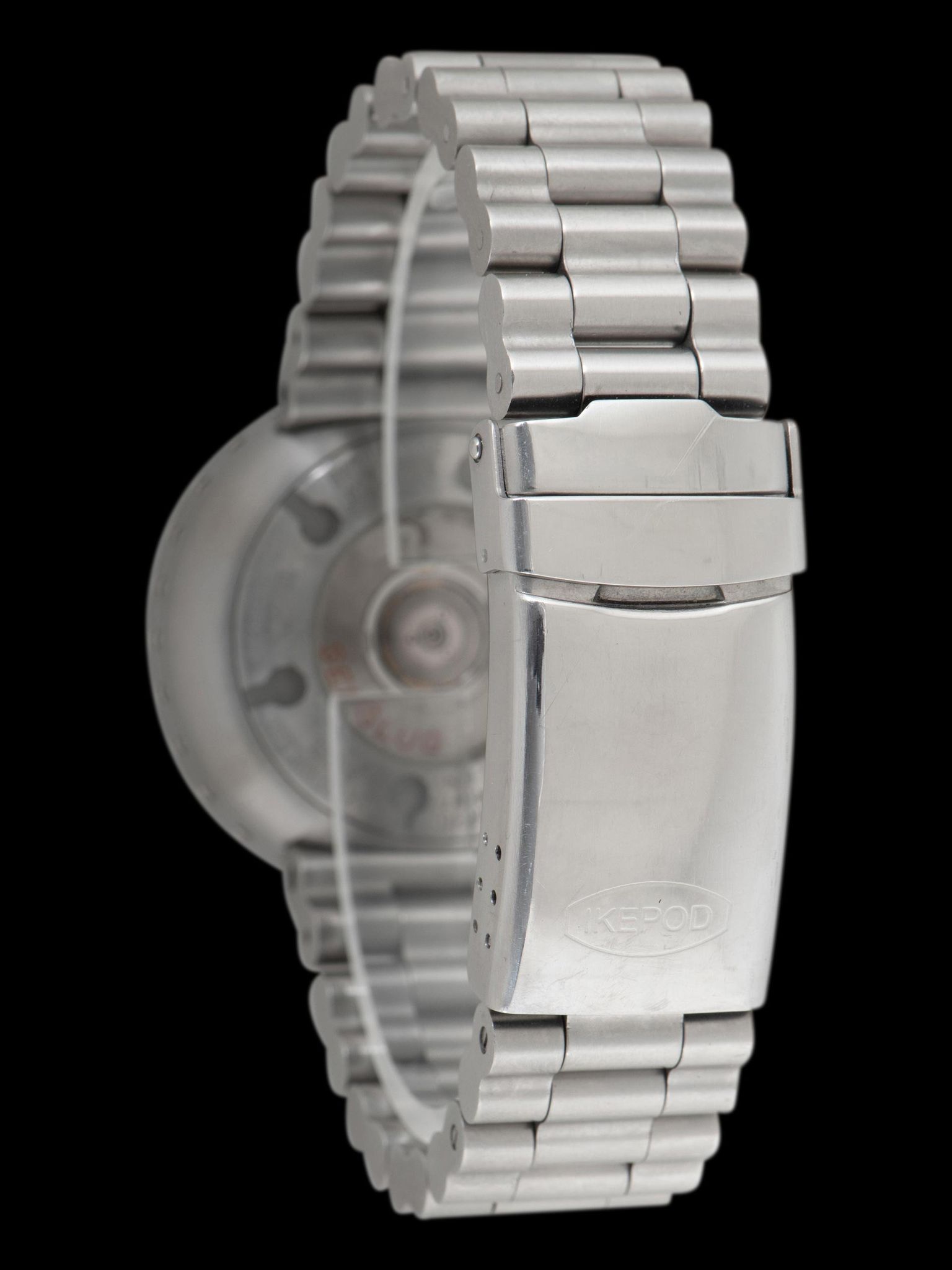 The watch comes with its original inner box, Ikepod guarantee card, COSC certificate, and inner box redemption certificate. The watch is keeping time perfectly, but the service history is unknown.