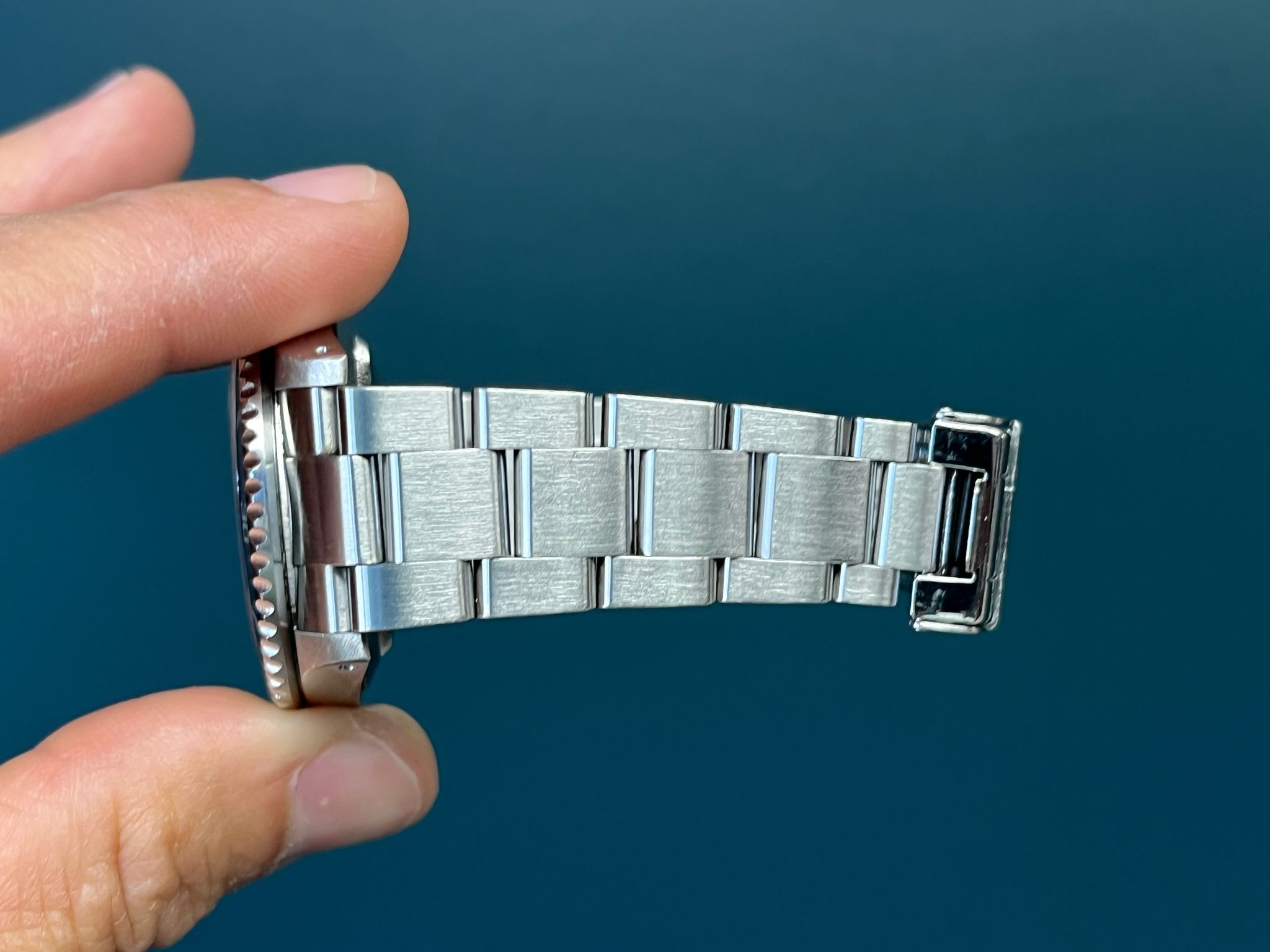 Today we bring you a beautiful Submariner reference 16610 accompanied by its box, original punched papers, some booklets and tags dated 7/2001. This example has a case that is excellent with thick chamfers present. The dial and Saphire crystal are excellent showing no visible wear. The dial and hands show a nice matching patina. The Solid end link bracelet is fully linked and shows no stretch. This example is running COSC and keeping time.