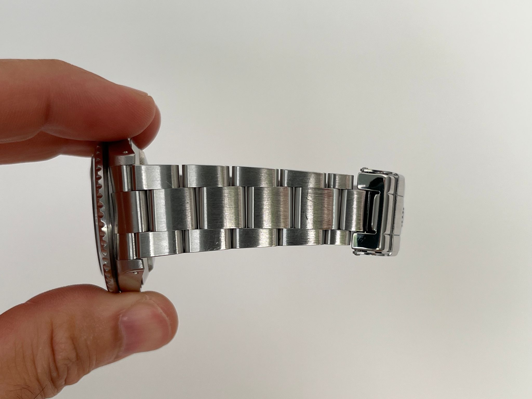 Today we bring you a beautiful Submariner reference 16610 accompanied by its original punched papers & Tags. This example has an unpolished case that is excellent with thick chamfers present. The insert, dial and Saphire crystal are excellent showing no visible wear. The dial and hands show a nice matching patina. The SEL solid link oyster bracelet is fully linked and shows no stretch. This example is running COSC and keeping time.