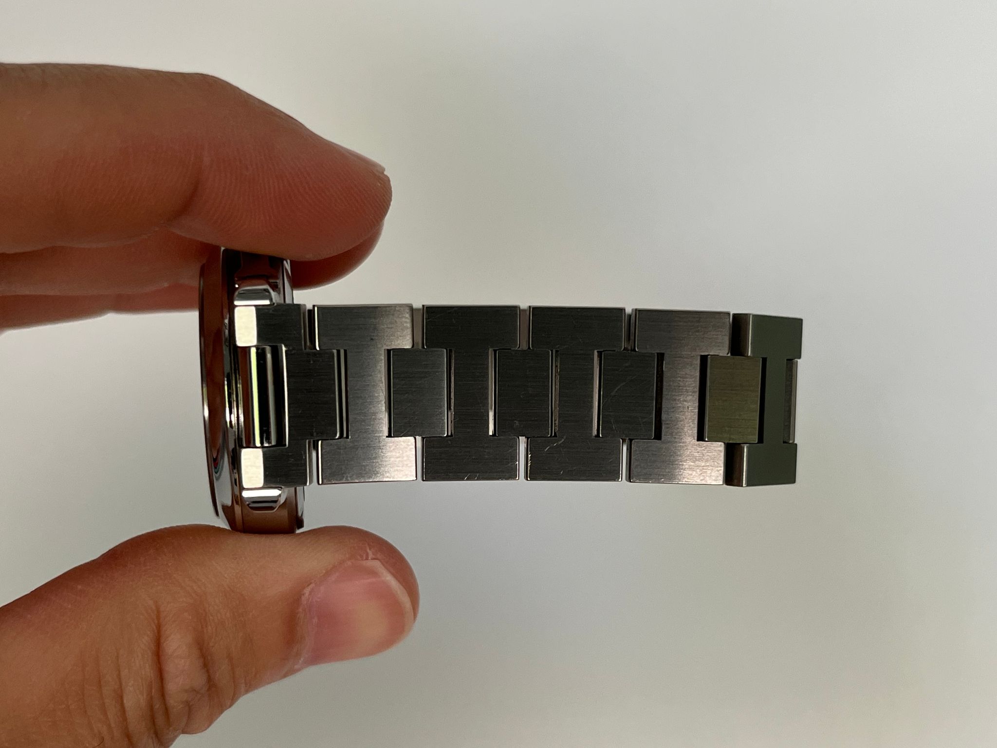 Today's example is in excellent preowned condition, The dial is mint and the automatic movement keeping time. The bracelet is long and has a total of 6 removable links and shows no stretch. This example is accompanied by its full complete set dated 5/02.