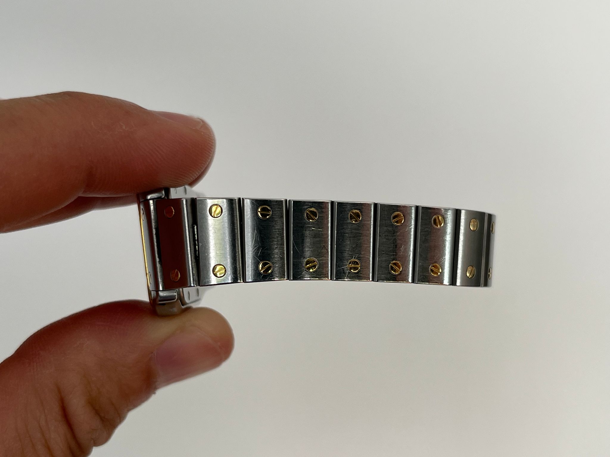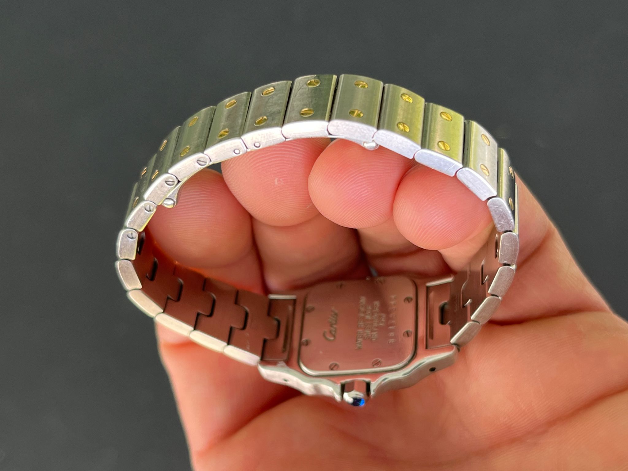 The Cartier Santos Galbée reference 1567 (W20012C4) combines the elegance of Cartier with the functionality of a classic stainless steel sport watch, delivering an iconic piece with timeless appeal. Featuring a 29mm polished and brushed stainless steel case, this model includes Cartier’s signature Roman numeral dial with blue sword-shaped hands, all protected by a scratch-resistant sapphire crystal. The bracelet showcases polished and brushed links with signature exposed screws, adding to its recognizable look. This full complete set includes the original box, papers, and all documentation, making it a pristine collector’s find. The Cartier Santos Galbée is a refined choice for those seeking sophistication, comfort, and versatility in one beautifully designed package.