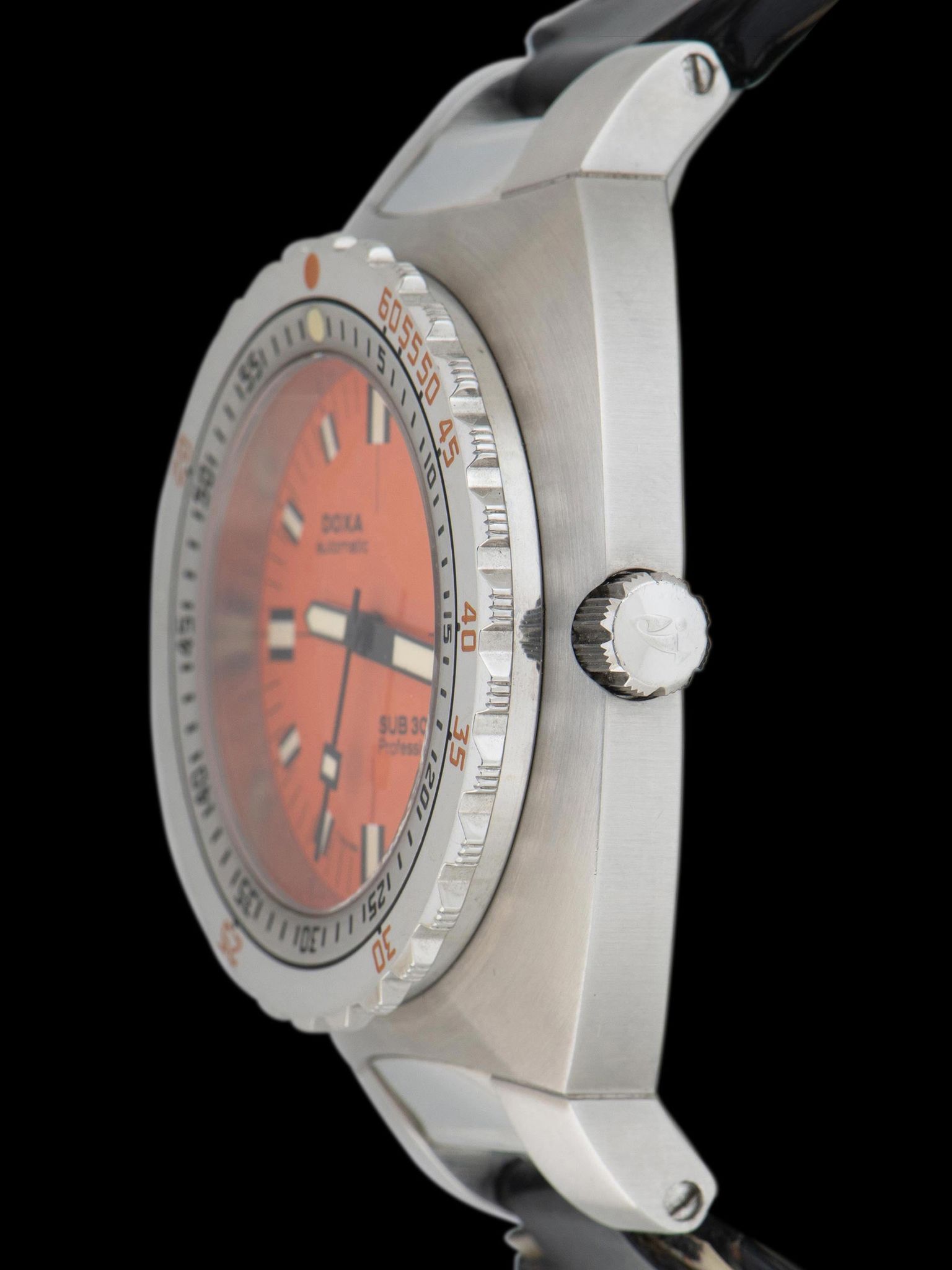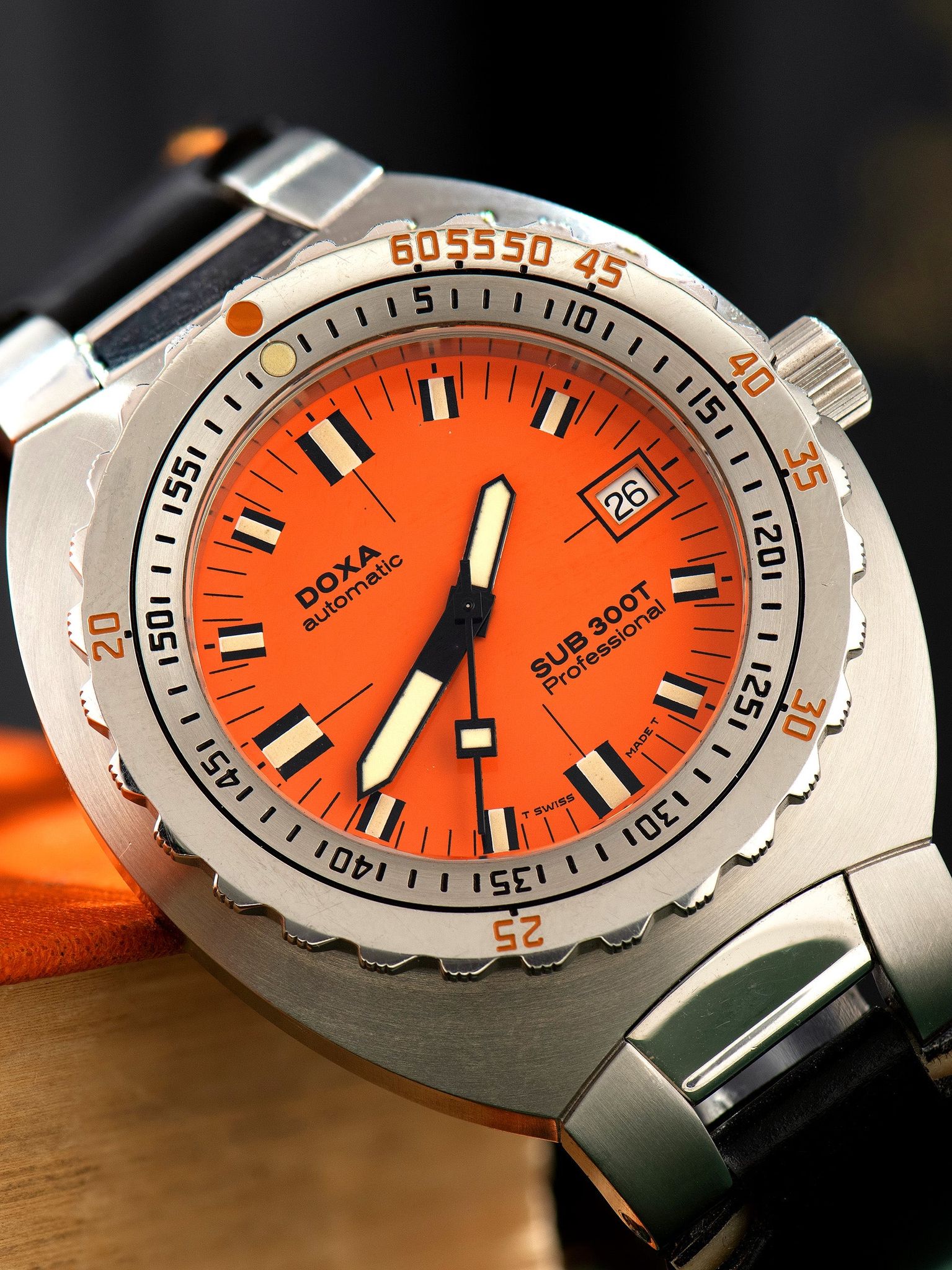 Today it may seem that all heritage brands are reissuing modern versions of their more successful vintage pieces, though this piece comes from a time when this notion was still novel, and allowed for creative liberties. In 2002, Doxa introduced their first re-issue limited edition timepiece of their iconic Sub 300T model with an orange dial, though, this re-issue was really more of a reimagining of the classic model as it featured a much longer and even more robust case that curves to hug the wrist. The reference for this model is 30010, however, it's most commonly referred to as the Doxa Sub 300T '2002'. Two versions of the watch were created, 1000 of each model which were individually numbered, so 2000 total, and they both featured the bright orange dial. The only difference between the two was the printing on the dials, the more classic "Professional" version like the one presented here, and a "Seahunter" version which also featured a diver motif on the dial. While there were 2000 of the ref. 30010 created, we almost never see this watch come up for sale on the open market.