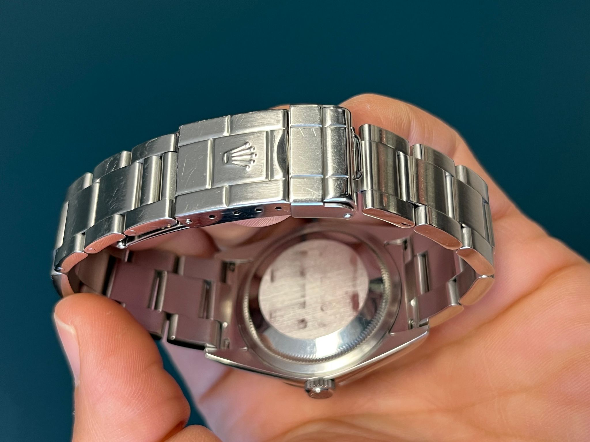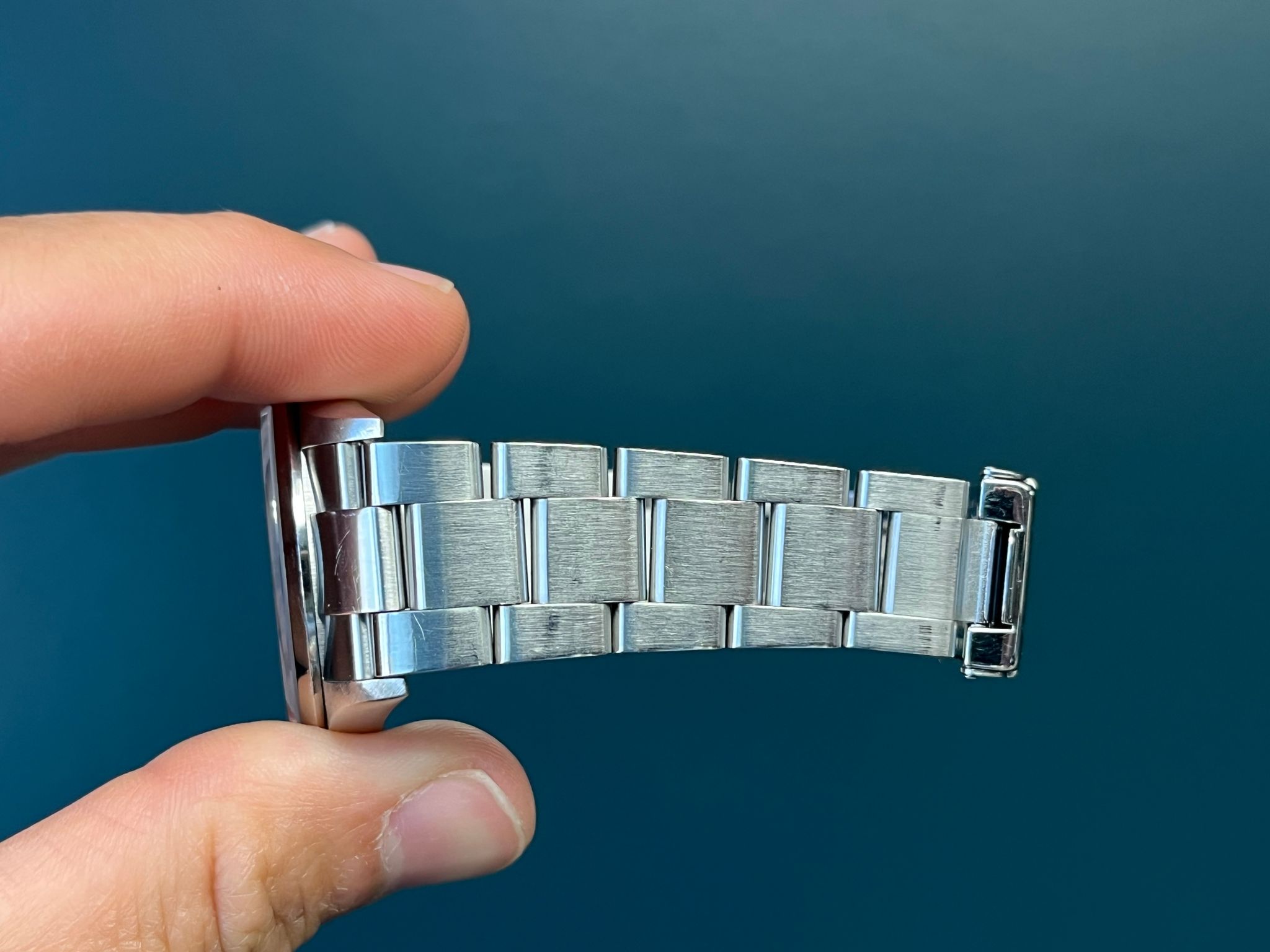 Today's example comes to us watch only and pre-owned condition. The no holes case is thick and even. The dial is mint and shows no wear. The solid end link bracelet has 12 total links and shows no stretch.
