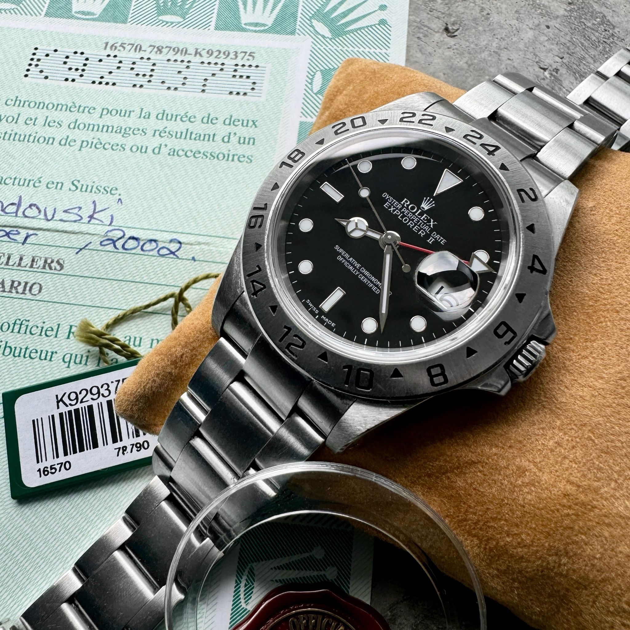 Rolex - 2002 Rolex Explorer II Black Dial 16570 Black Dial – Box and Papers