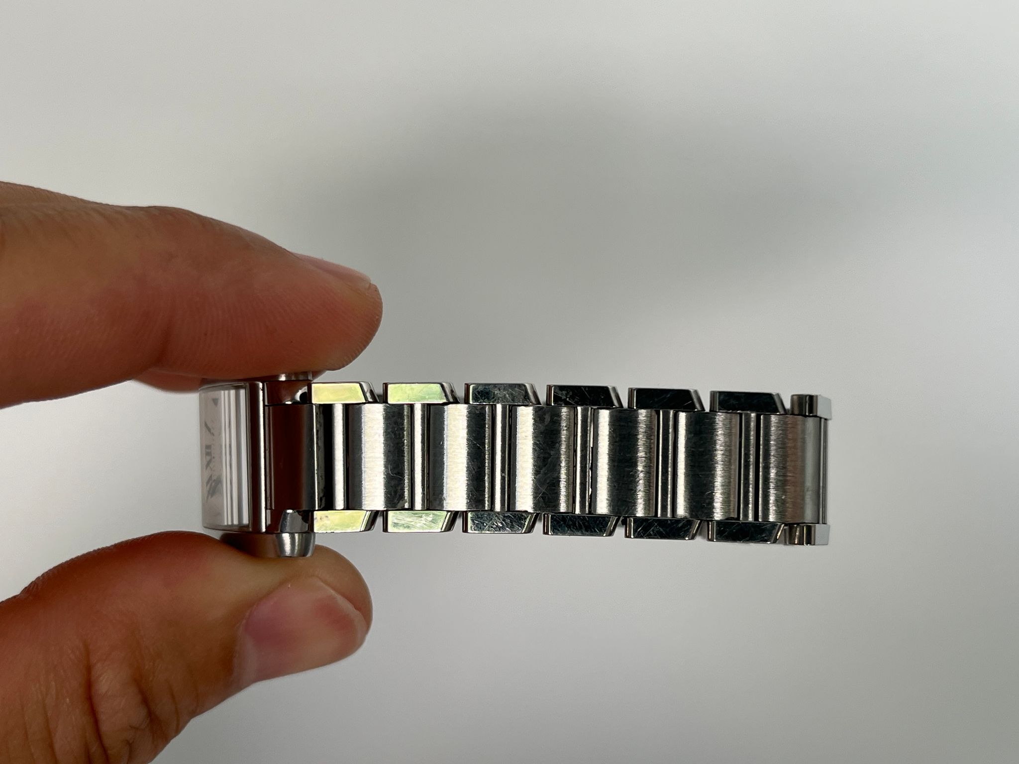 Todays example comes to us as a full complete set with its inner and outer box, folio, manual, and warranty dated 10/2003. The watch its self is in excellent condition and has a long bracelet showing no stretch and 6 removable links. Mounted with a new battery, this example is running excellent and keeping time.