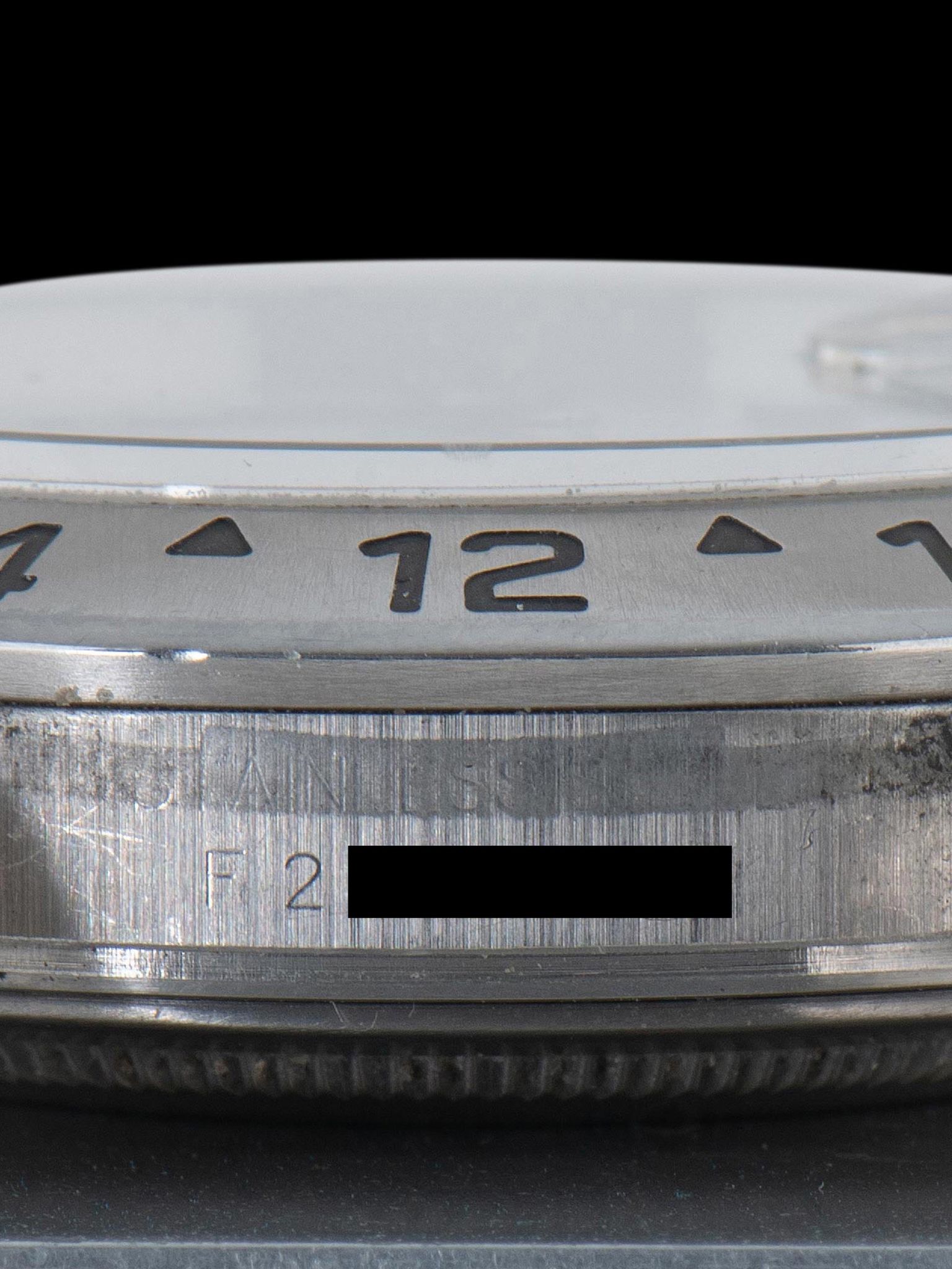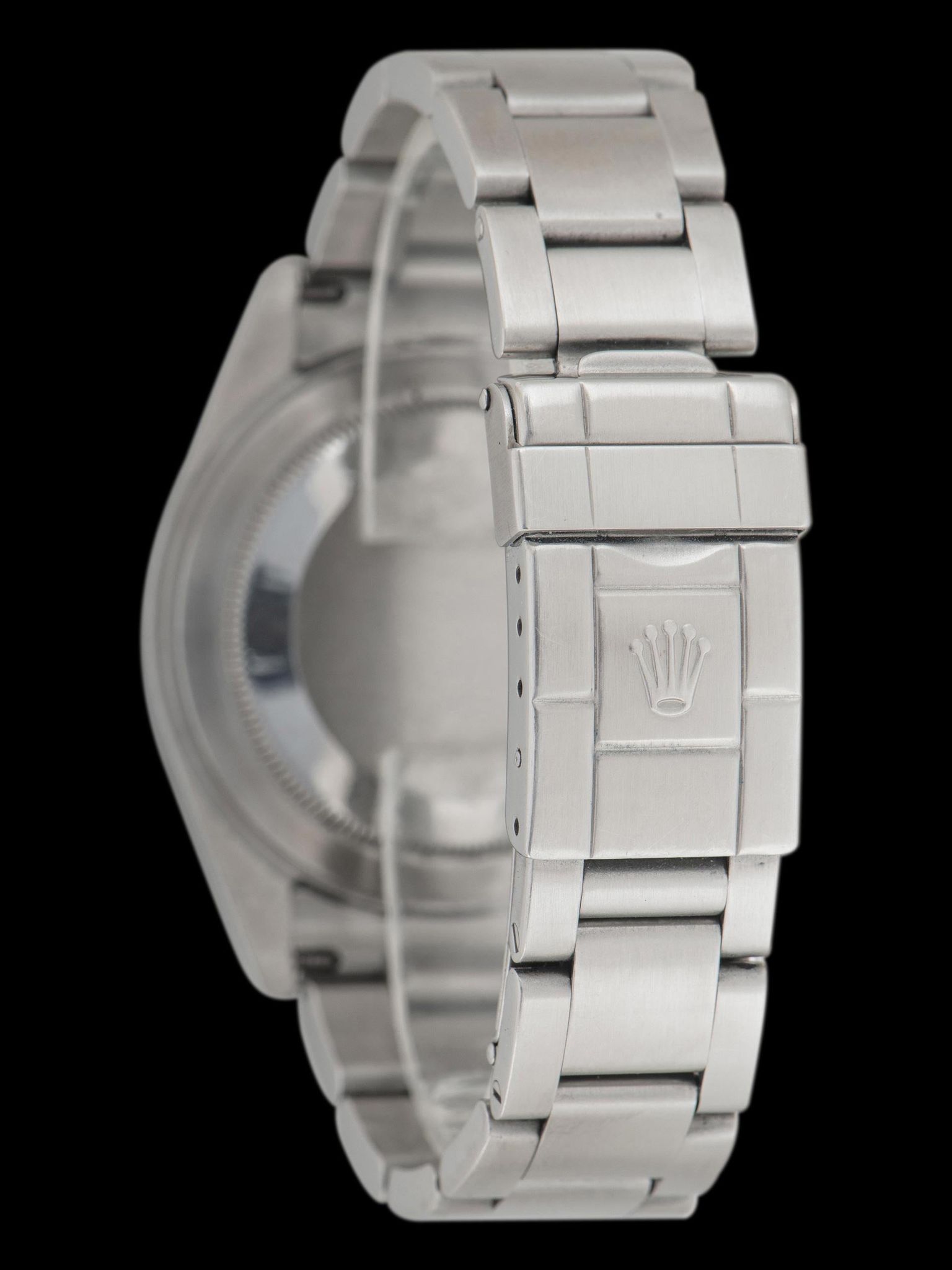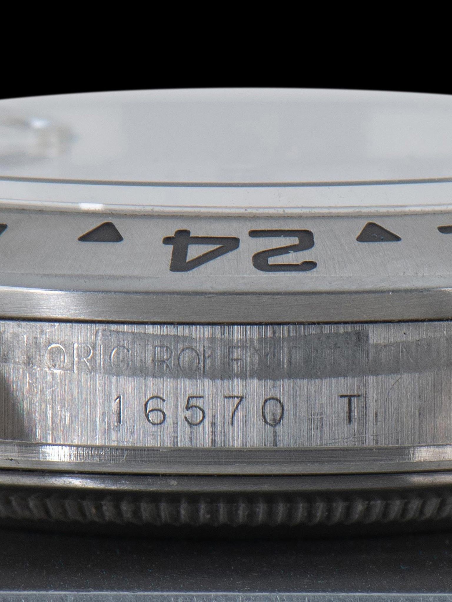The strong "no-holes" case retains very thick and symmetrical lugs that maintain subtle chamfers and show gentle wear with signs of very minimal polishing in the past. The fixed 24-hour stainless steel bezel is in excellent condition retaining all of its factory black enamel with light signs of use and previous polishing. The original Rolex 78790 Oyster bracelet with solid end pieces retains 11 links that show minimal stretch and will fit up to a 7.25-inch wrist.