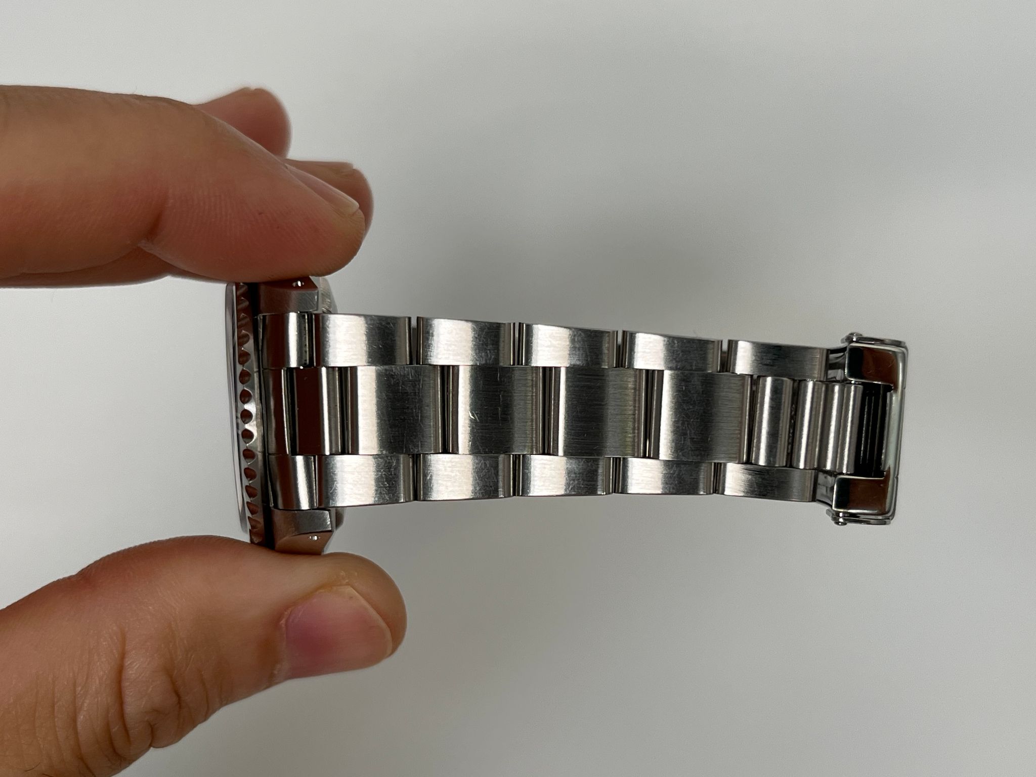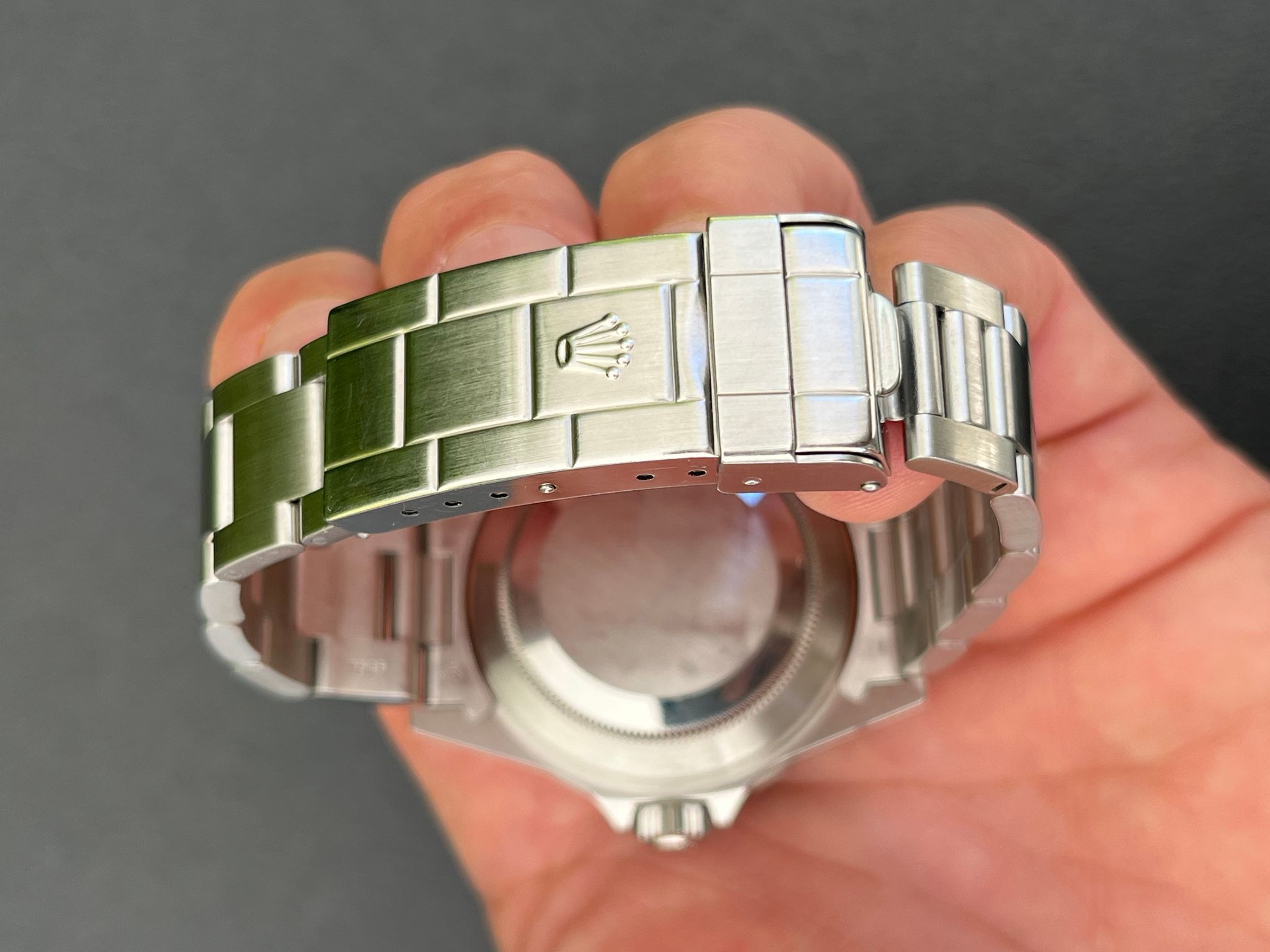 This example comes with its punched papers from 2003 and both its red seal and serial hang tag. The watch itself is in excellent condition. The case is thick and even lugs and appears unpolished. The insert is in excellent condition. The dial is excellent with matching patina. The bracelet has 12 links + div ext. and shows no stretch. Here is a top example with papers at a great price!