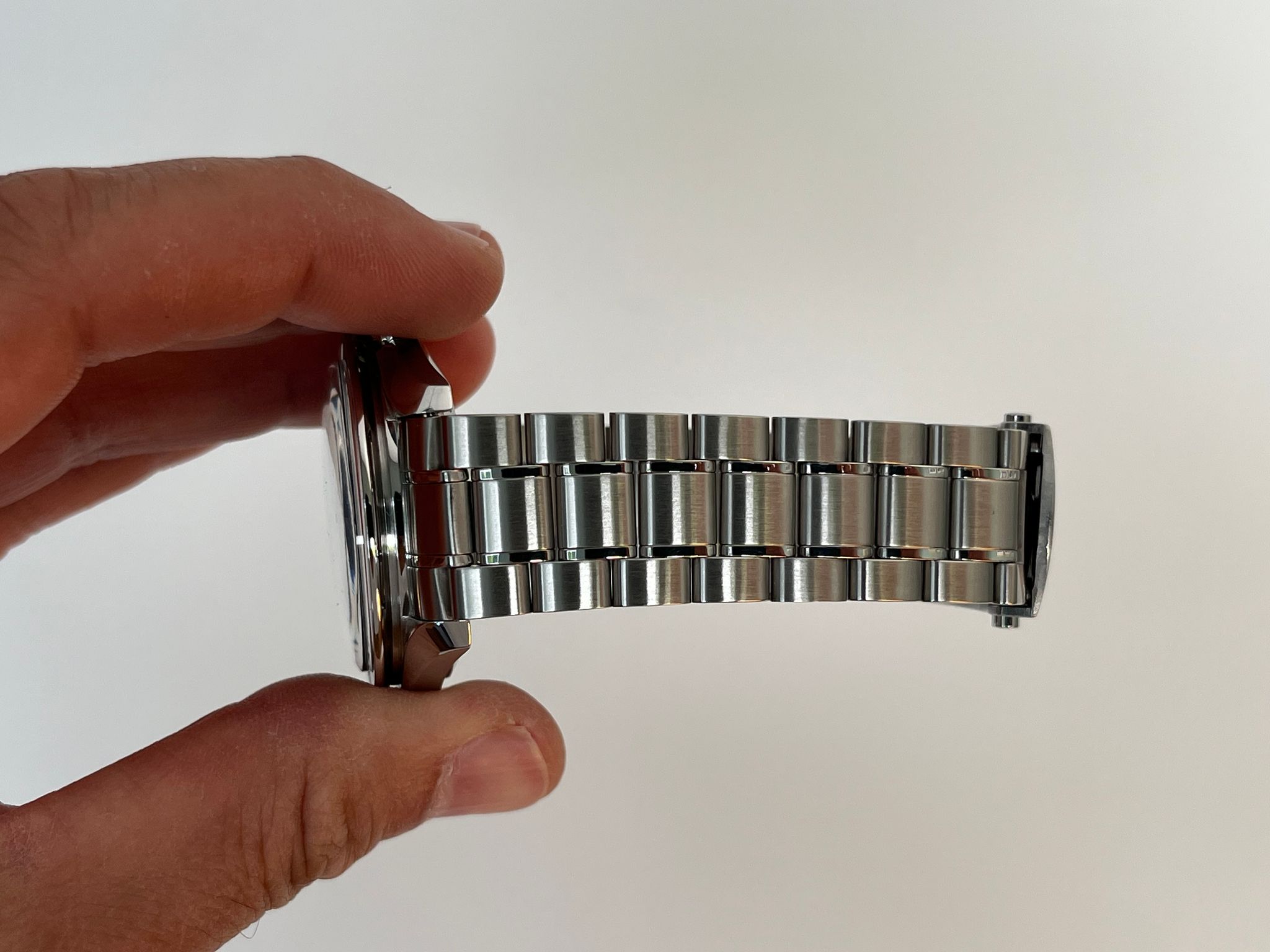 This 2004 example, offered in mint, like-new old stock condition, includes its full set of accessories and documentation dating to 12/21/2004. The condition of the watch is mint. The bracelet is fully linked and shows no wear or stretch. Very seldomly do we find this reference in this condition accompanied by its full set making it a truly iconic and collectible timepiece.