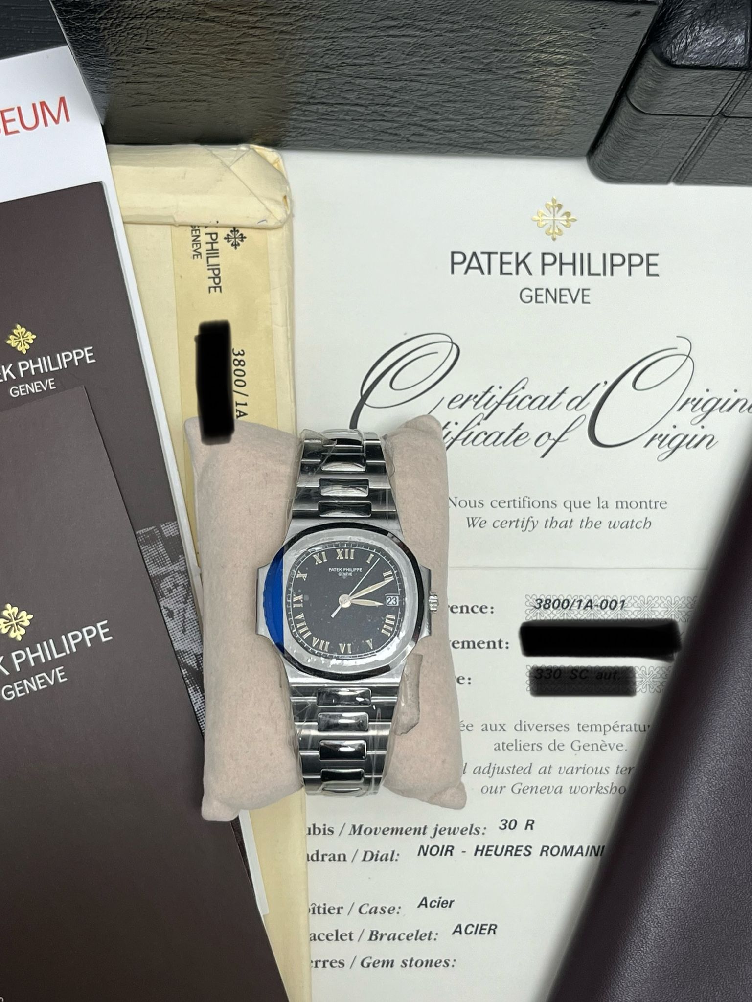 The Patek Philippe Reference 3800, also known as the "Nautilus Midsize," is a legendary timepiece that epitomizes the brand's commitment to craftsmanship and luxury. Introduced in the late 1980s, this iconic watch features a distinctive octagonal-shaped case with rounded corners and a horizontally embossed dial. The stainless-steel construction exudes a timeless elegance, and the integrated bracelet showcases Patek Philippe's attention to detail. The midsize dimensions make it versatile and suitable for both men and women. The reference 3800 is powered by a high-quality automatic movement, ensuring precision and reliability. With its classic design, impeccable engineering, and enduring appeal, the Patek Philippe Reference 3800 remains a coveted collector's item, reflecting the brand's enduring legacy of horological excellence.