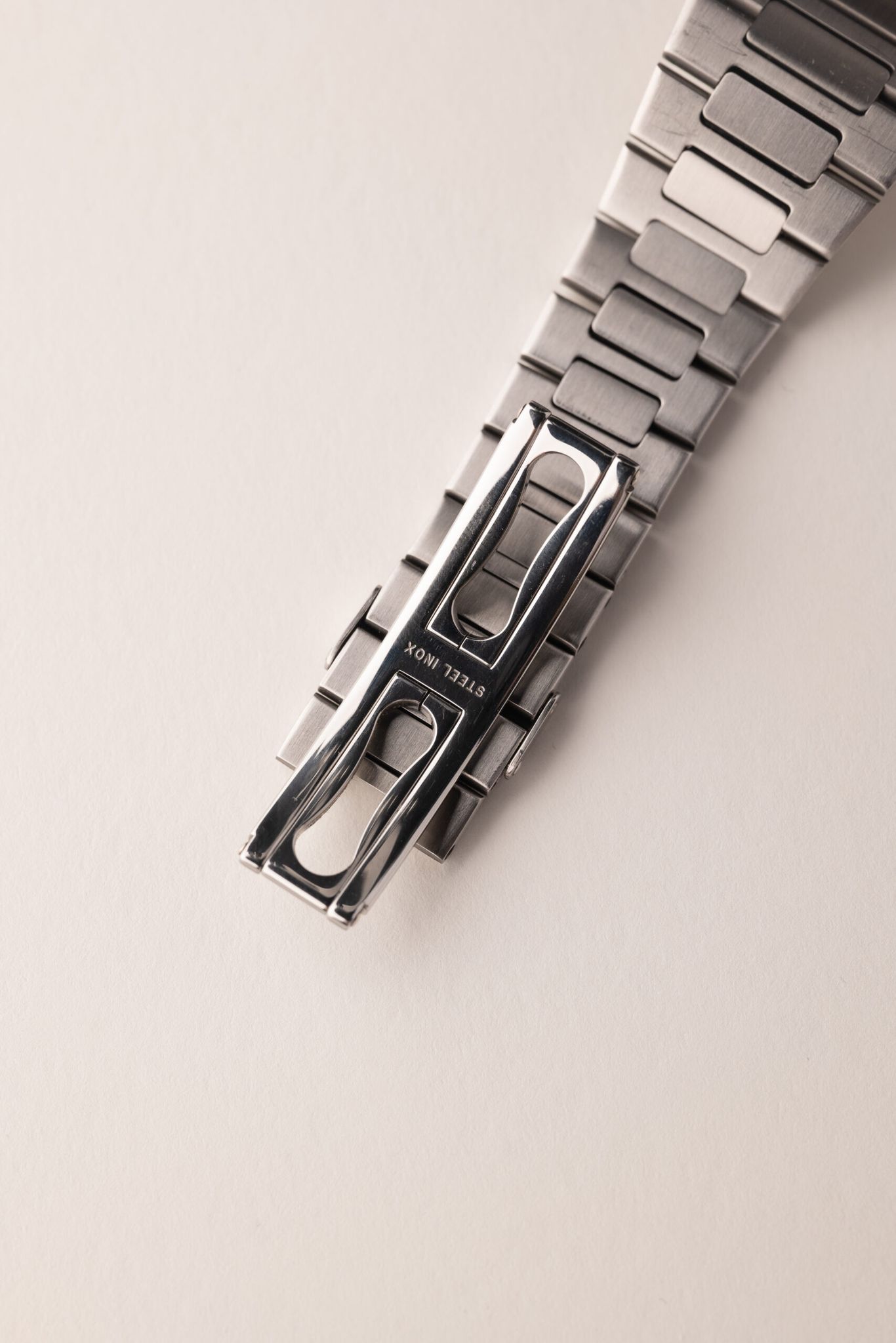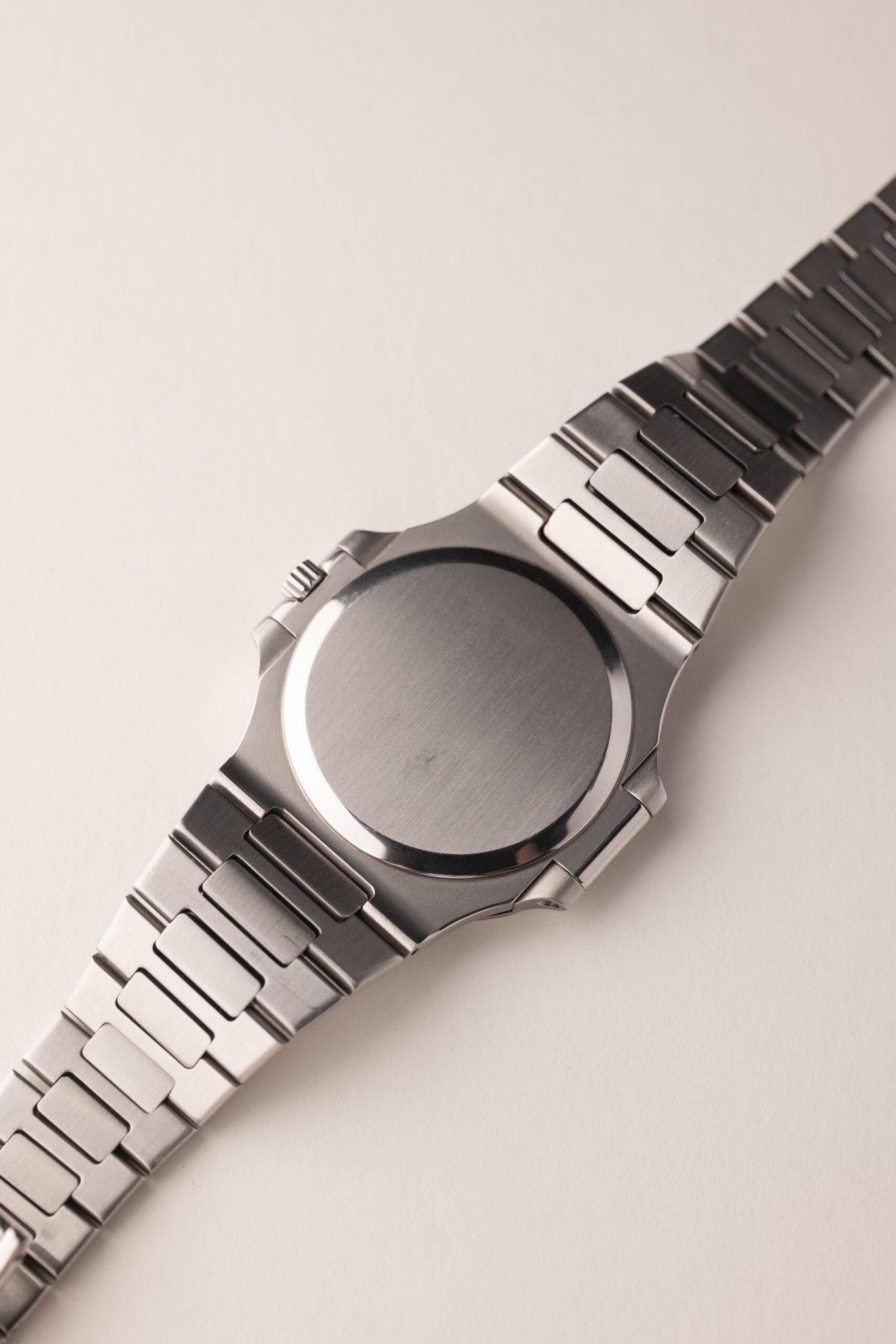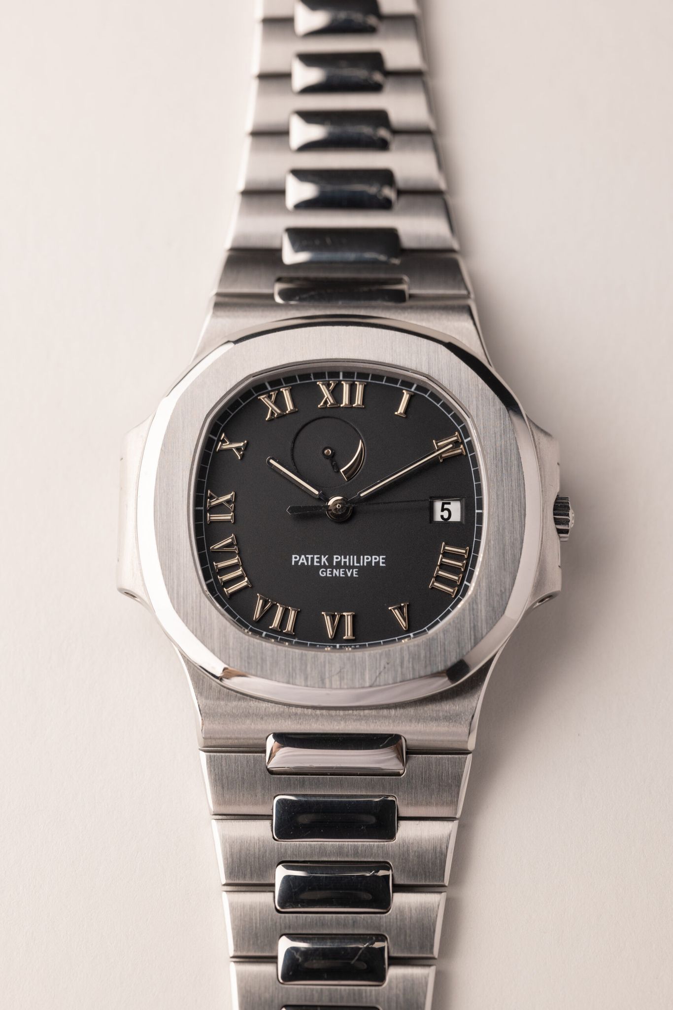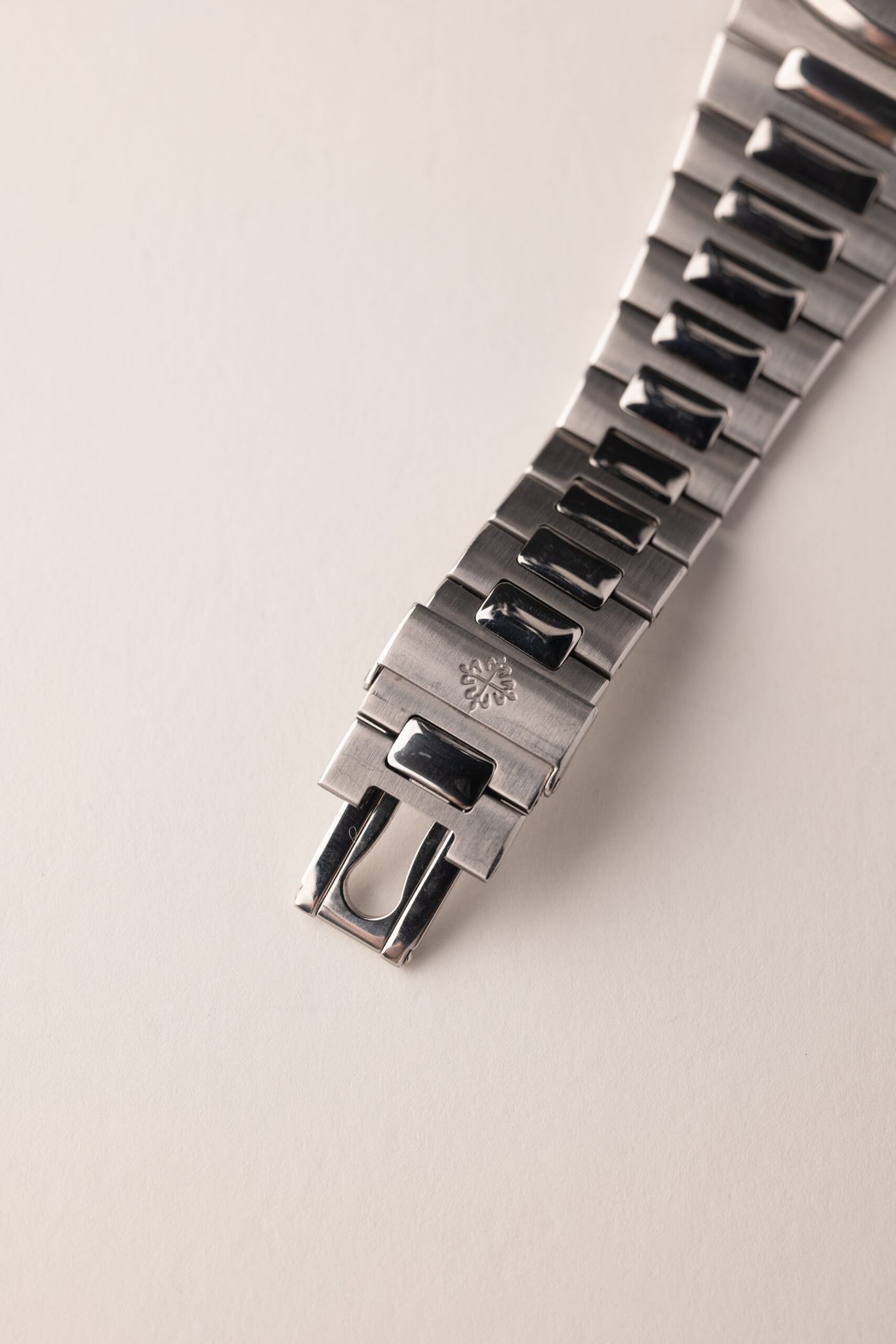 A lesser seen Nautilus, the 3701 has a power reserve that gives its nickname of “Comet.” Short one link from a full bracelet. Comes with papers.