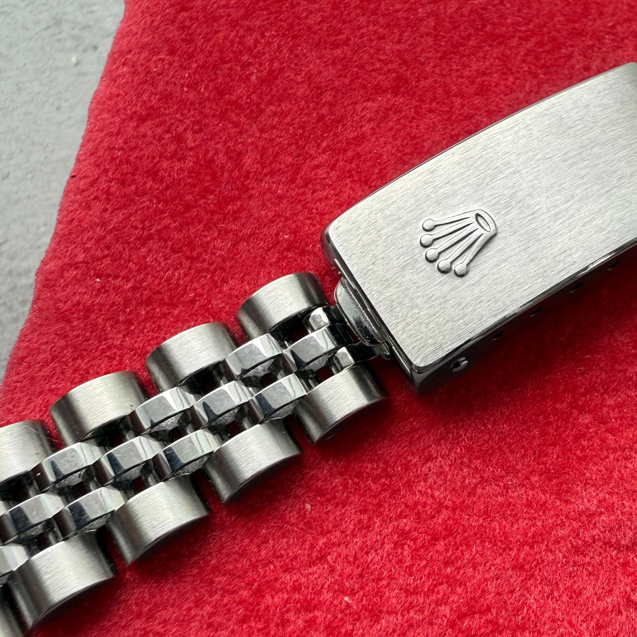 The iconic Jubilee bracelet offers unparalleled comfort and a graceful shimmer, beautifully complementing the sleek stainless steel case. Preserved in razor-sharp, unpolished condition, this piece radiates originality and charm, ensuring it’s as pristine as the day it was created.