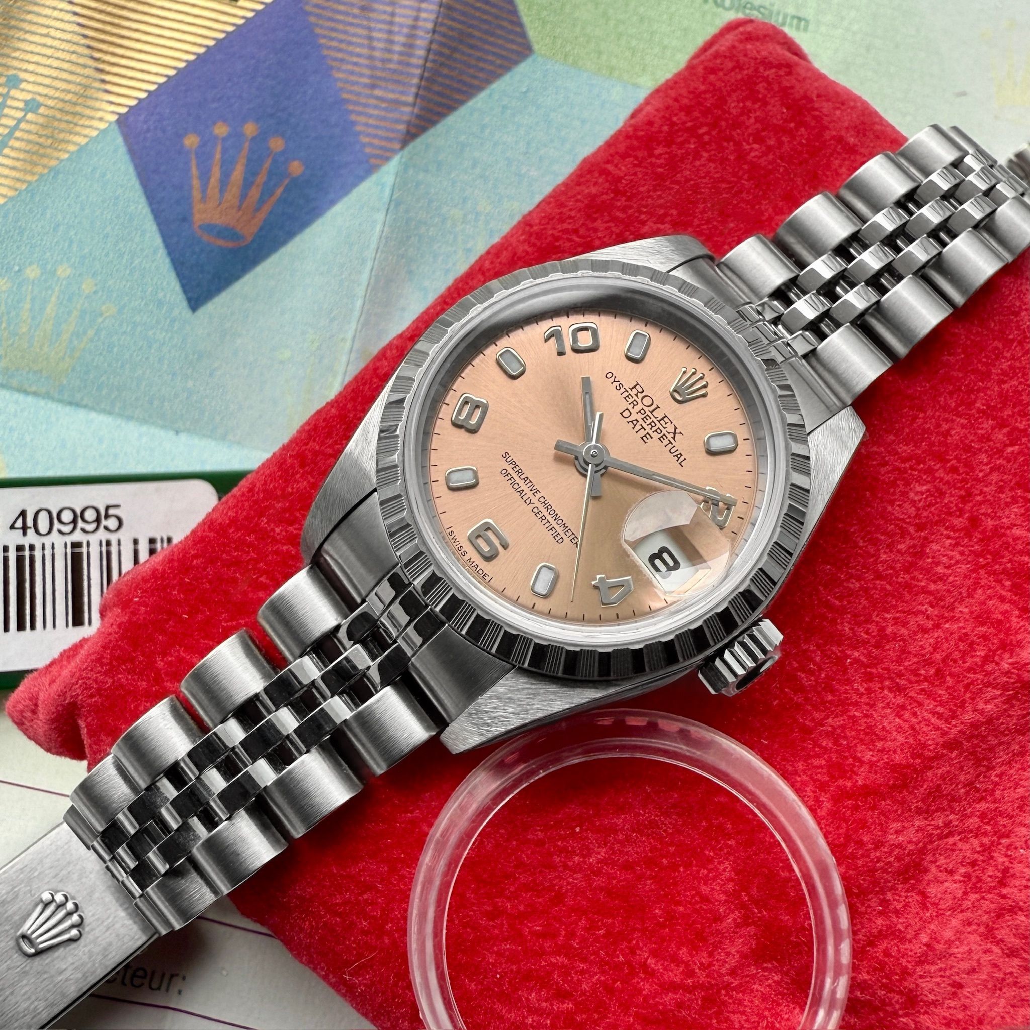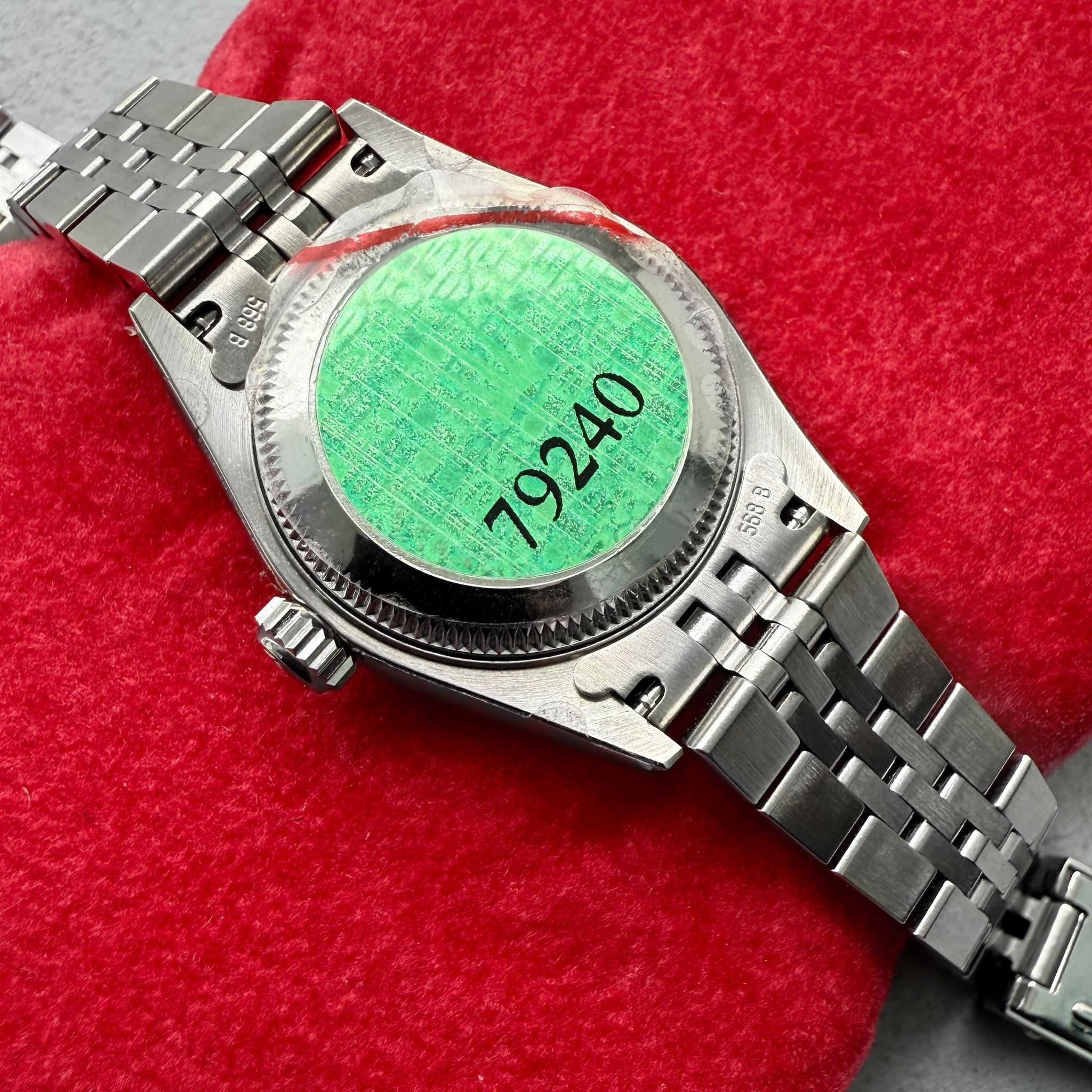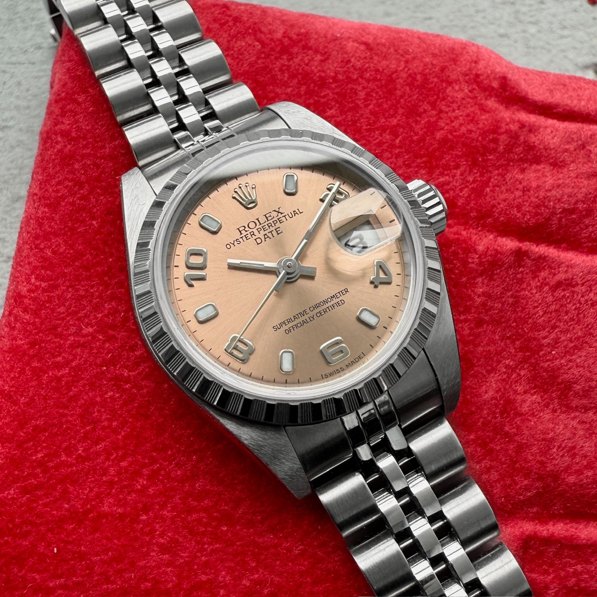 Indulge in timeless elegance with this stunning ladies Rolex Datejust, reference 79240. Showcasing a captivating pink dial, this classic timepiece exudes femininity and sophistication, perfect for enhancing both everyday attire and formal looks.