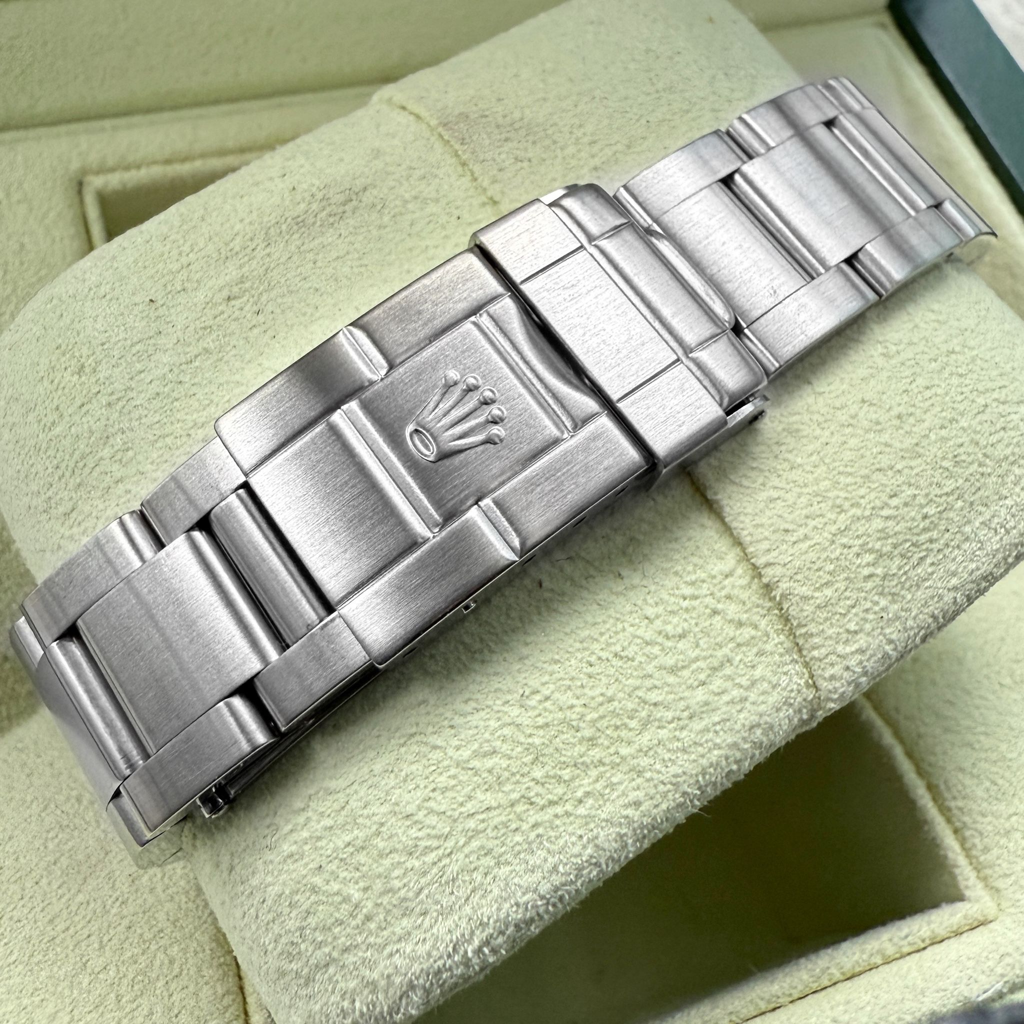 Bracelet/Strap: Original Rolex stainless steel oyster bracelet which has been polished by our watchmaker back to factory Rolex condition. The bracelet shows no stretch. The watch fill fit an 8 inch wrist. The buckle is marked 'CL8' dating the bracelet correctly to August 2004