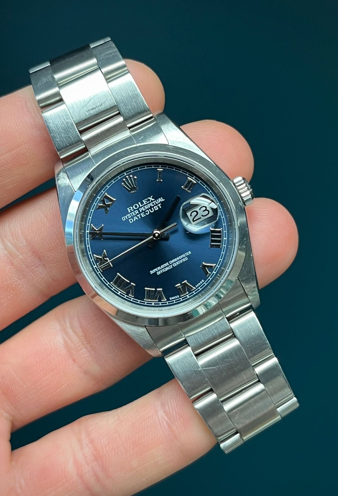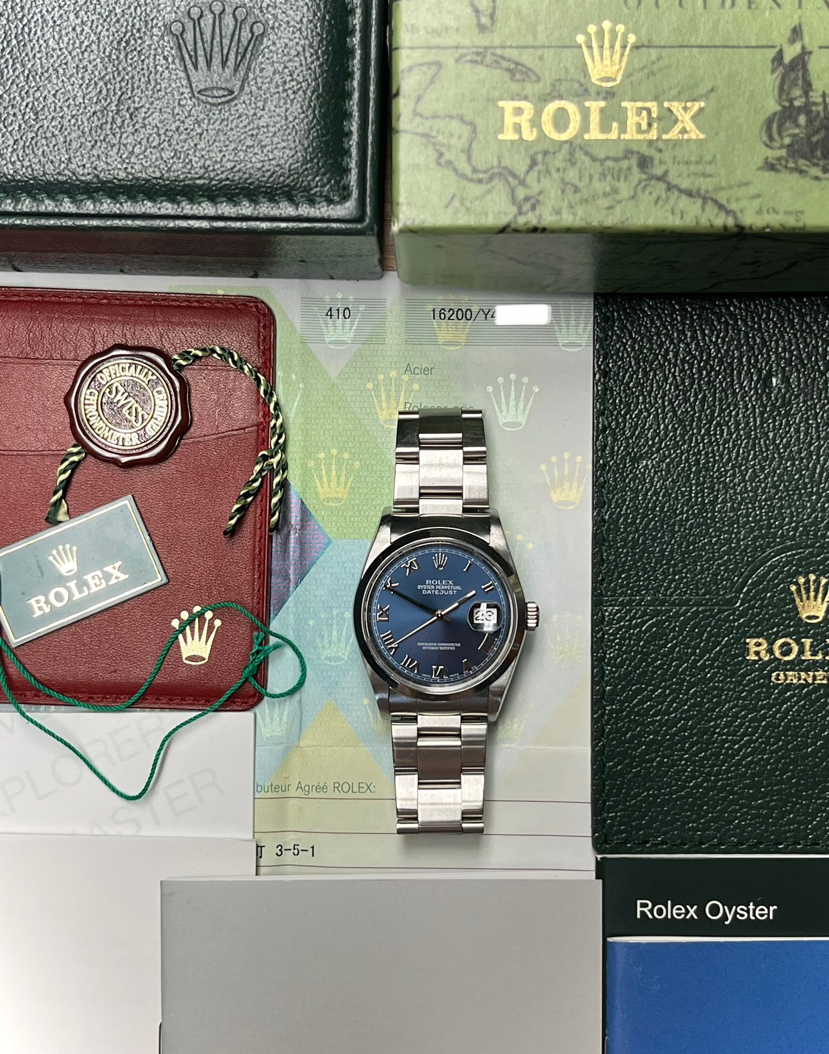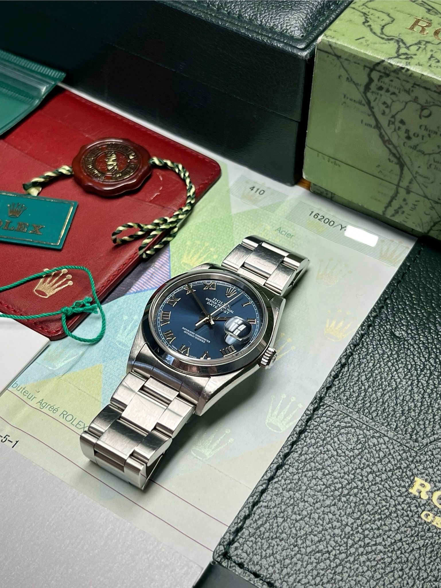 Rolex - 2004 Vintage Rolex Date Just Ref. 16200 Full Set Blue Roman