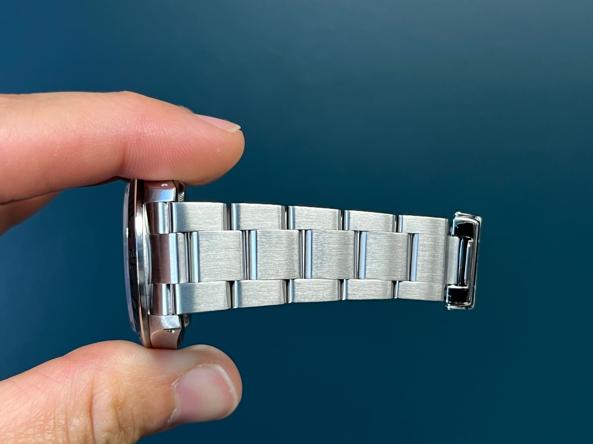 Today's example comes to us with in excellent retail ready condition. The dial is excellent showing no visible wear and has matching hands. The case shows thick and even lugs. The bezel is also in crisp condition with all of its enamel present. The SEL bracelet has 12 links with no stretch. An top example for the astute collector.