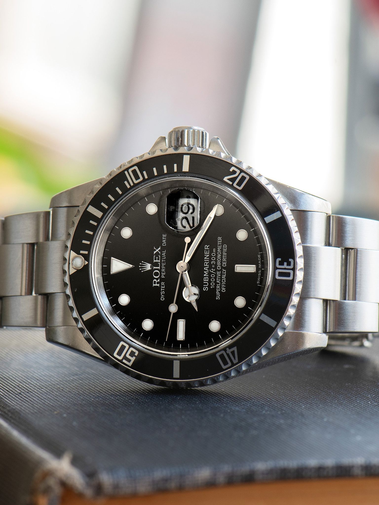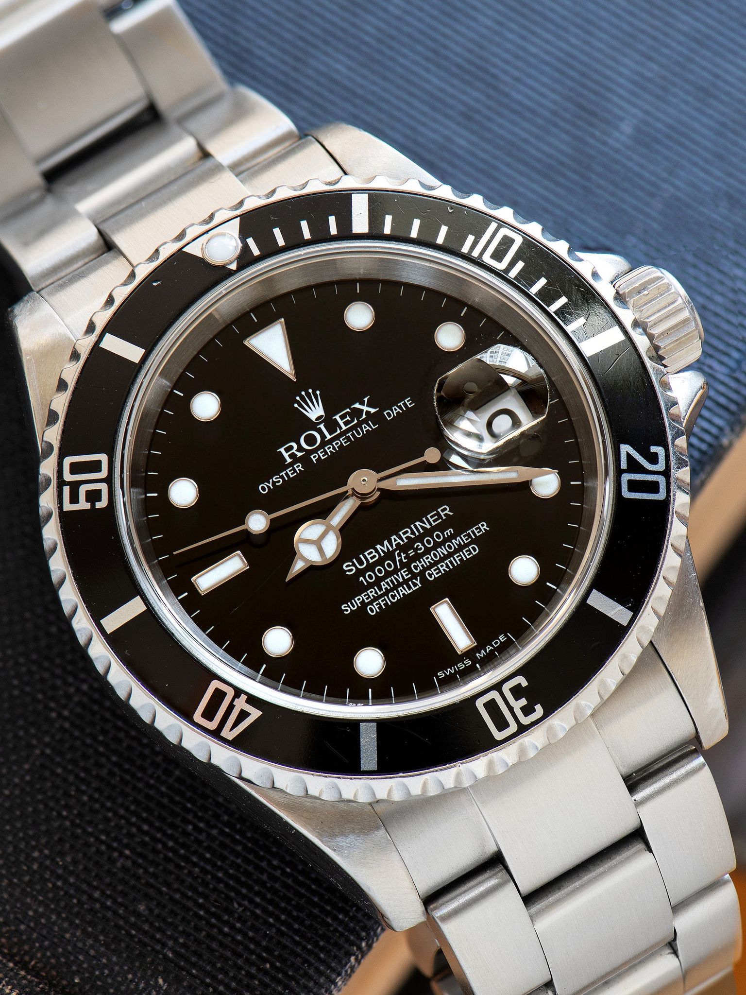 The Rolex Submariner ref. 16610 was first introduced in 1986 by Rolex but didn't come into commercial availability until about 1987 and is the direct successor to the earlier 16800 and 168000 Submariner references. Still featuring many of the same functions, the 16610 has an upgraded stainless steel case, from 316L steel to the highly corrosion-resistant 904L steel, and features the upgraded Rolex Cal. 3135 movement.