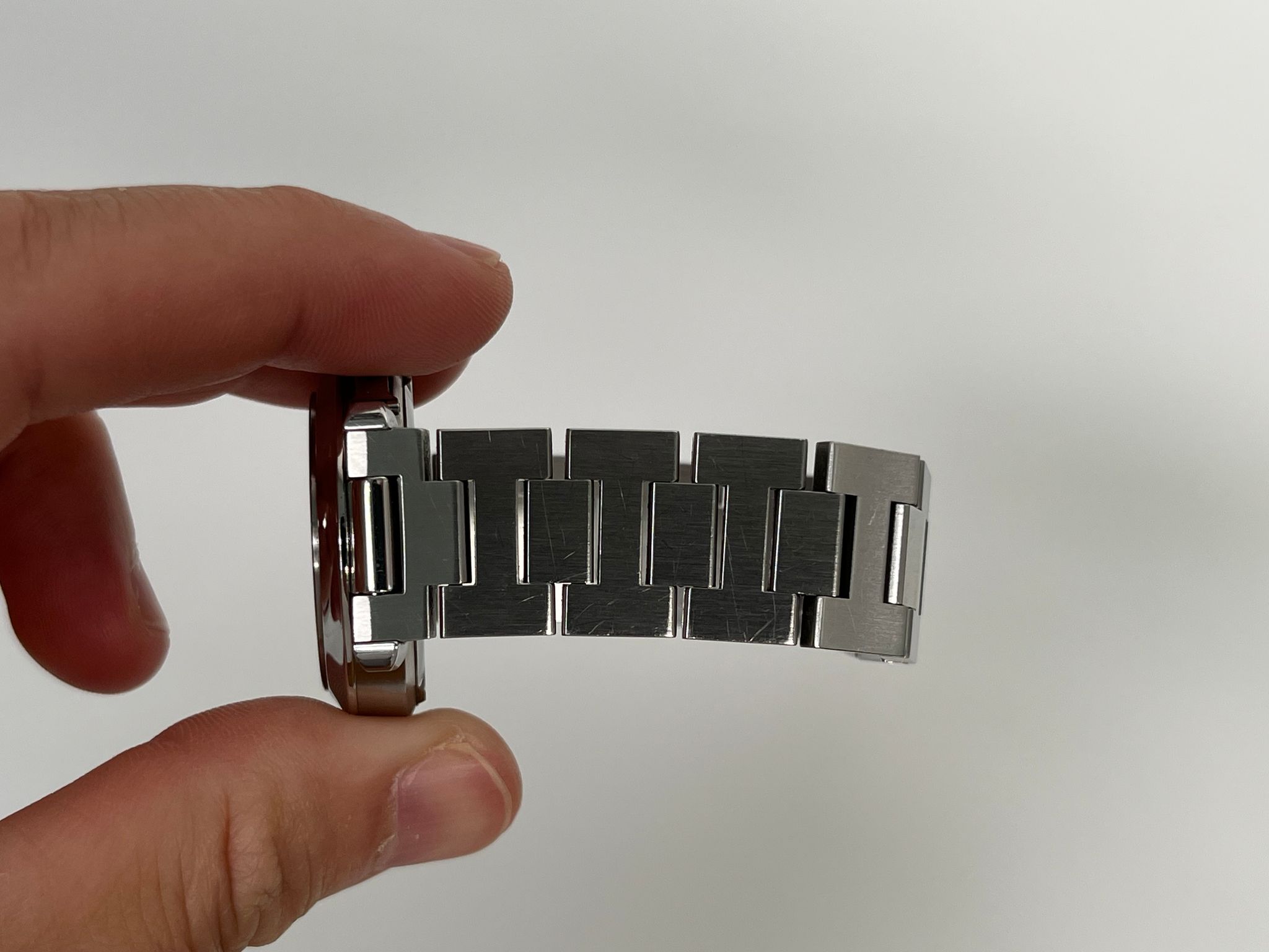 Today's example is in excellent preowned condition, The dial is mint and the automatic movement keeping time. The bracelet is long and fully linked with a total of 8 removable links and shows no stretch. This example is accompanied by its full complete set dated 2006.