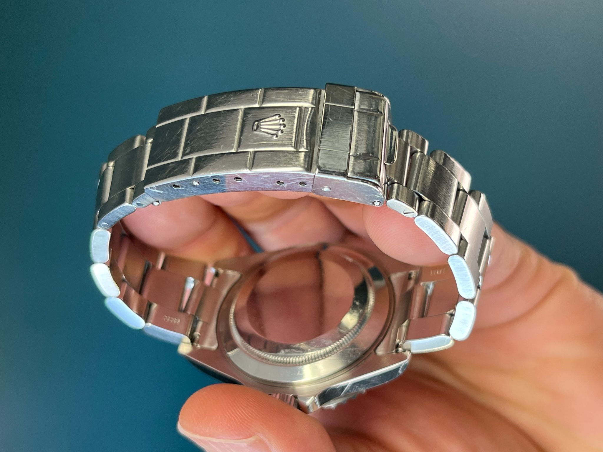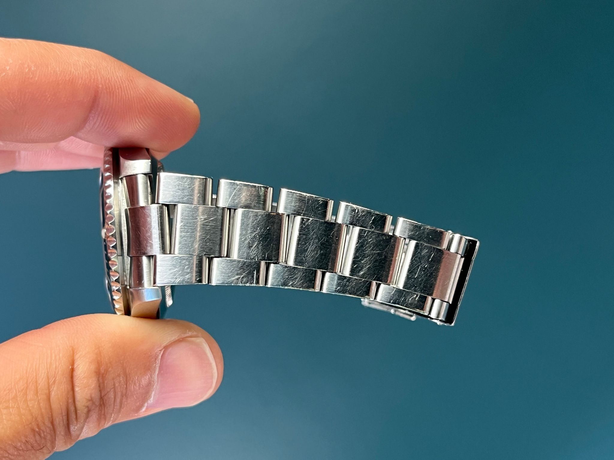 Today we bring you a nice Submariner reference 16610 watch only. The no holes case is thick and even. The Solid link Oyster bracelet is fully linked and shows some stretch. This example is running COSC and keeping time.
