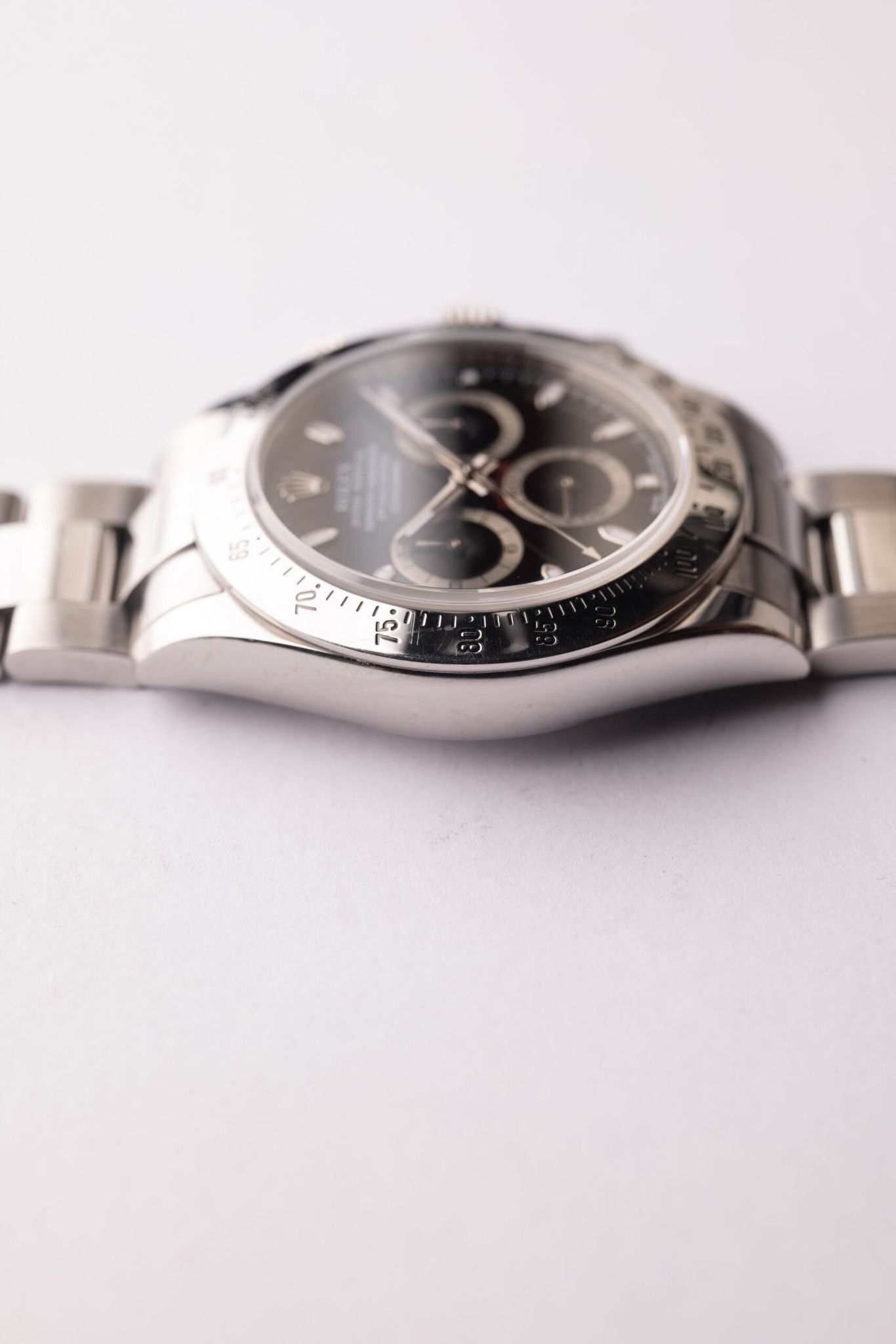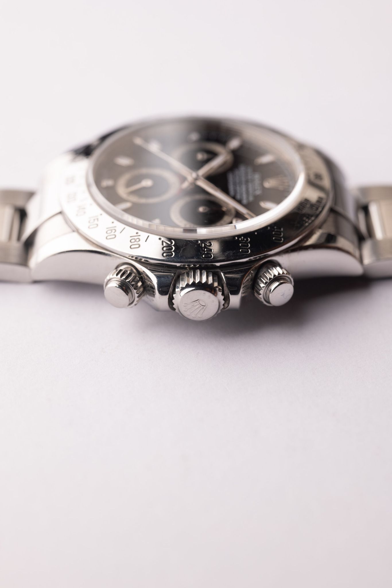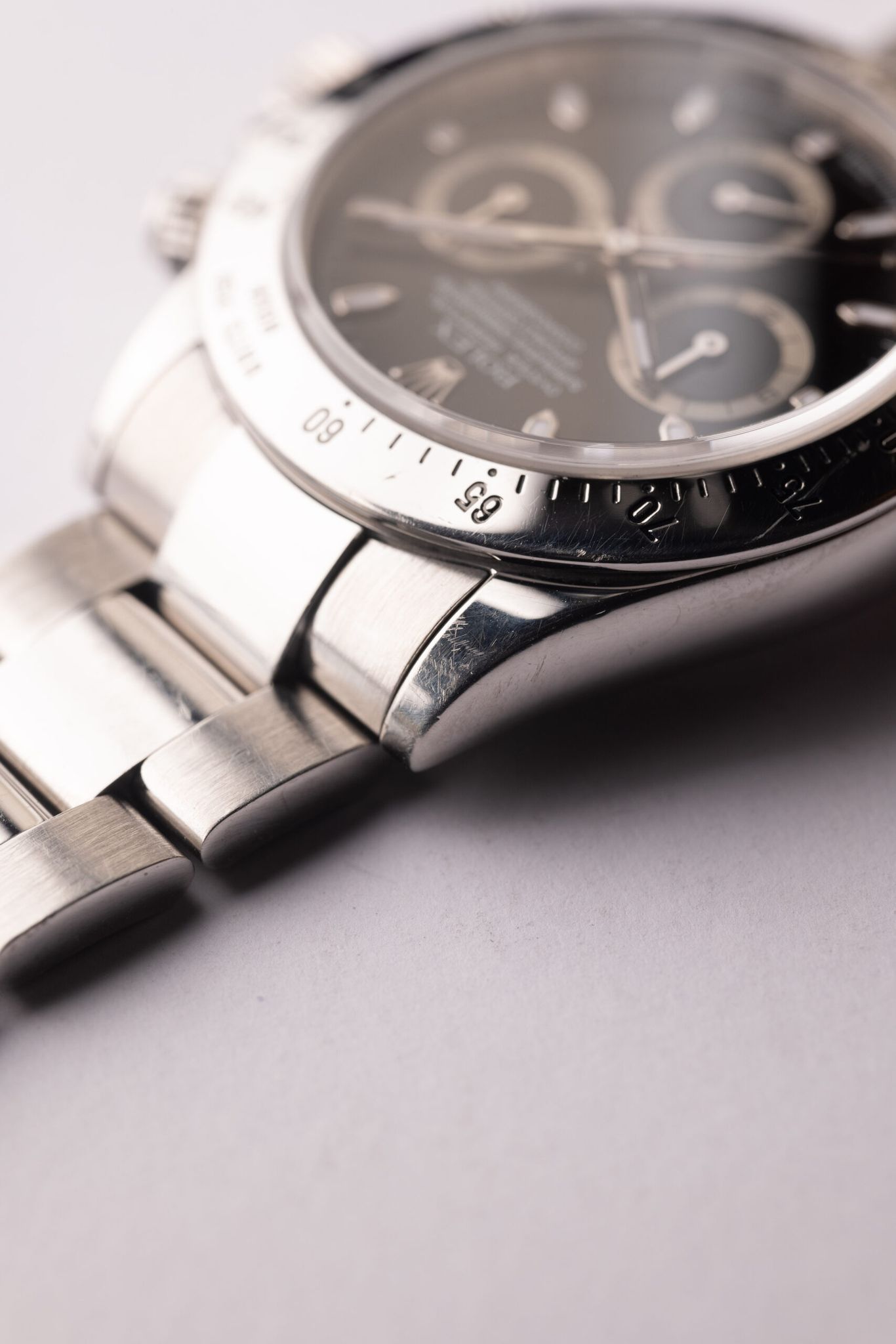 Description: The 116520 was Rolex’s first in house movement on the Daytona line up. The 116520 presents the most affordable Daytona in the halo line up from Rolex. Case is excellent and appears lightly polished in the past.