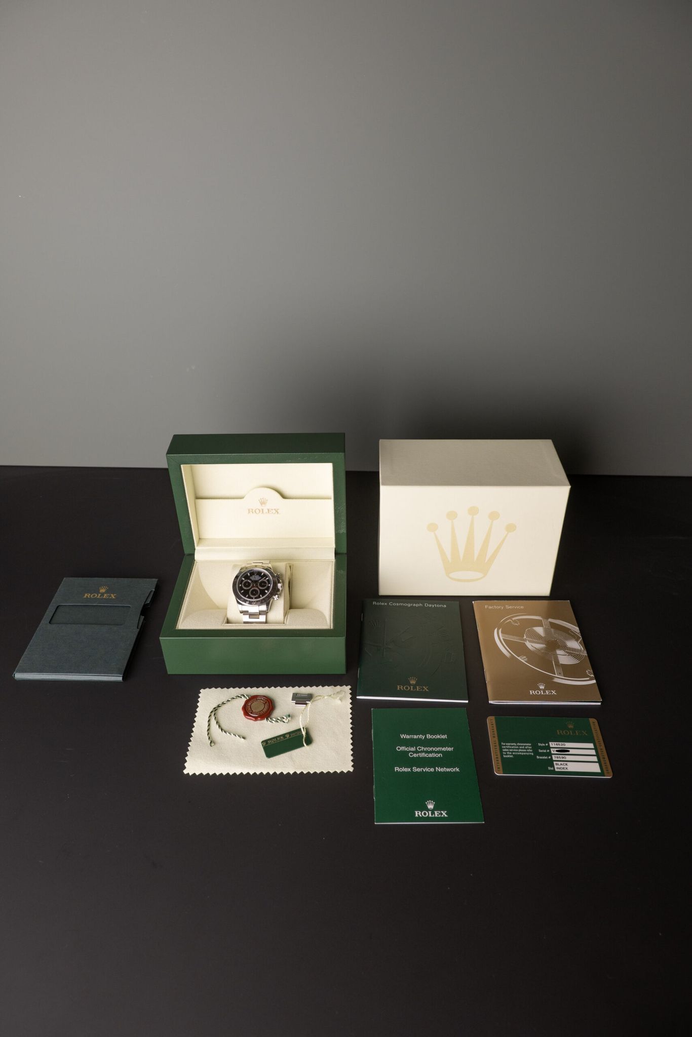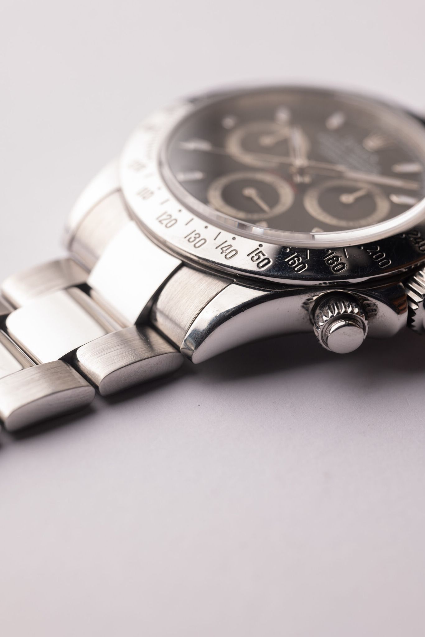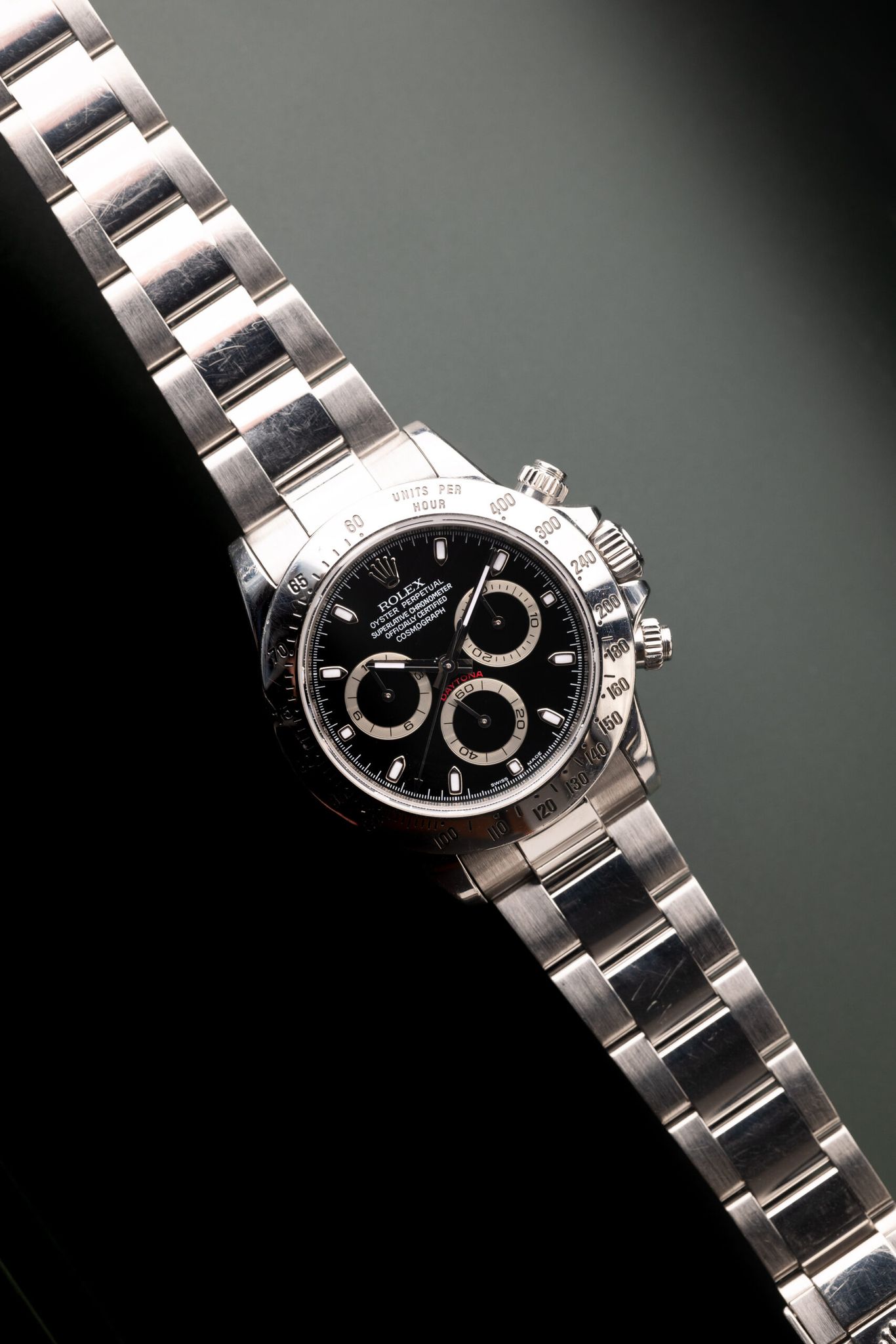 Description: The 116520 was Rolex’s first in house movement on the Daytona line up. The 116520 presents the most affordable Daytona in the halo line up from Rolex. Case is excellent and appears lightly polished in the past.
