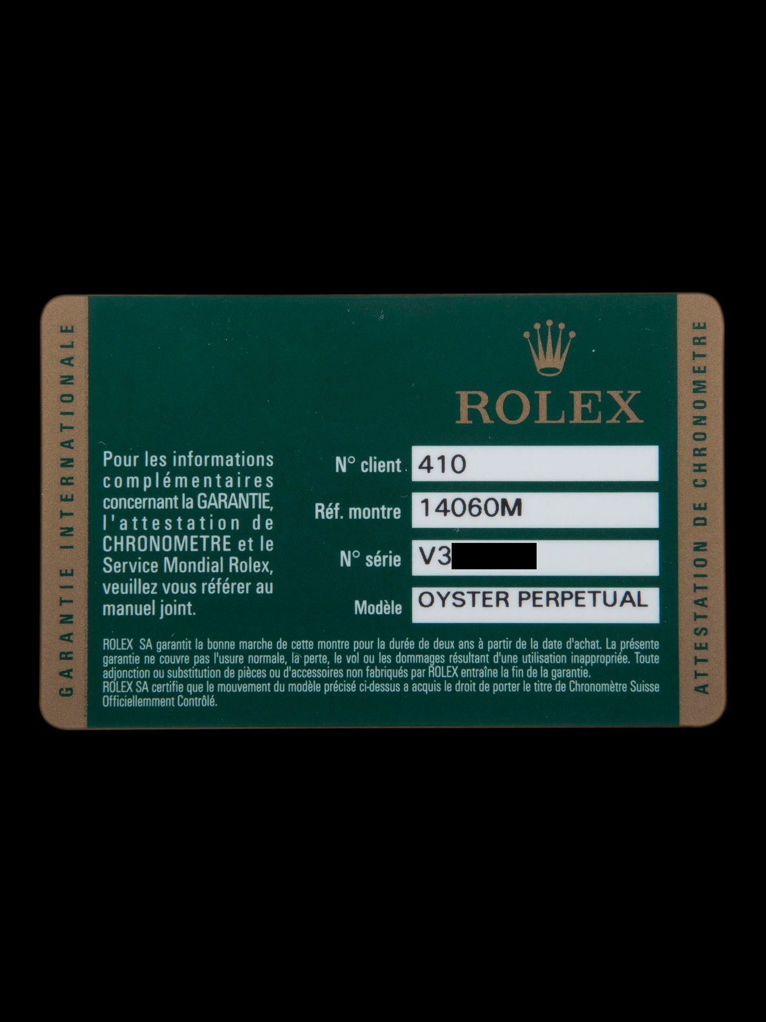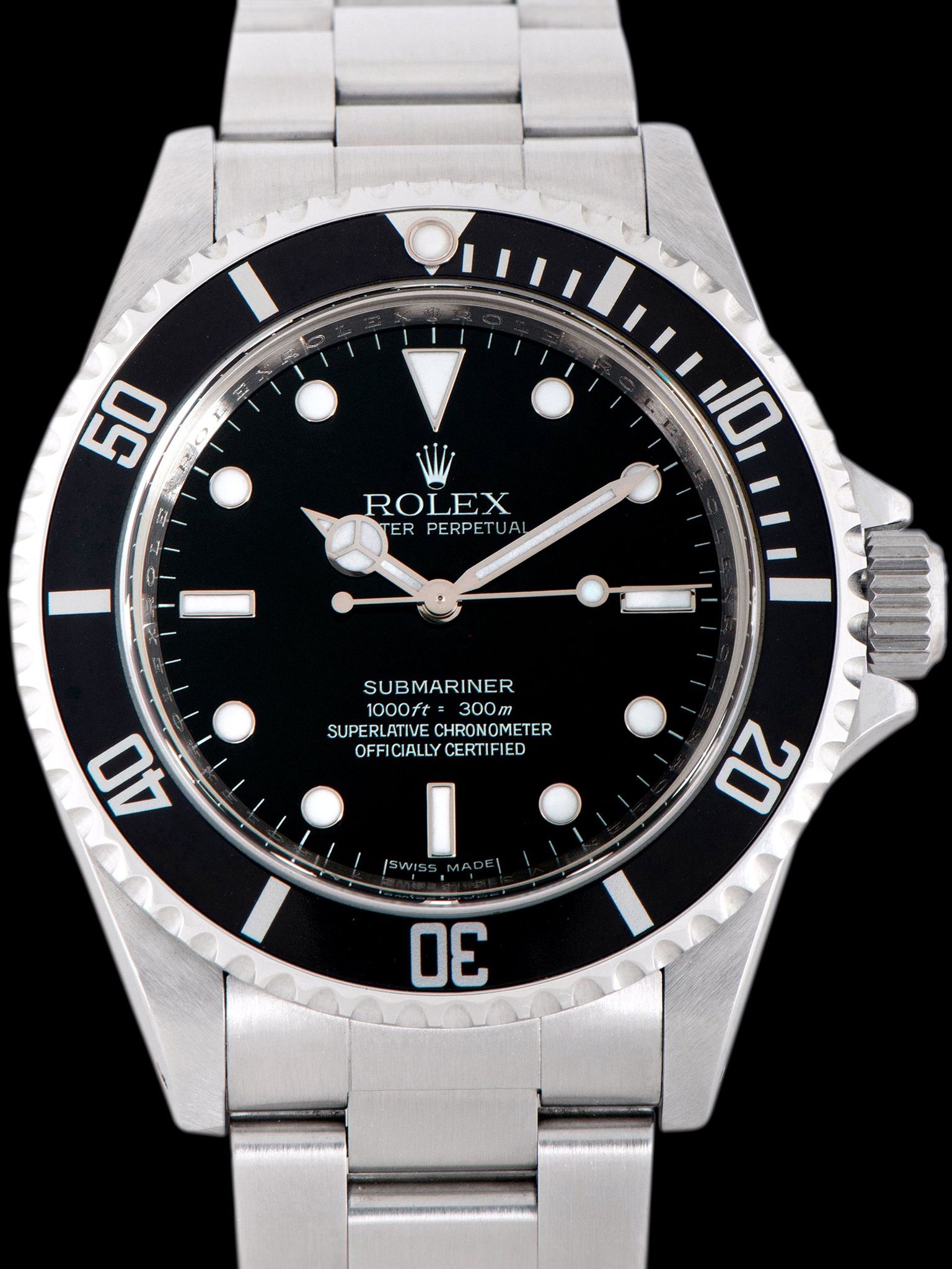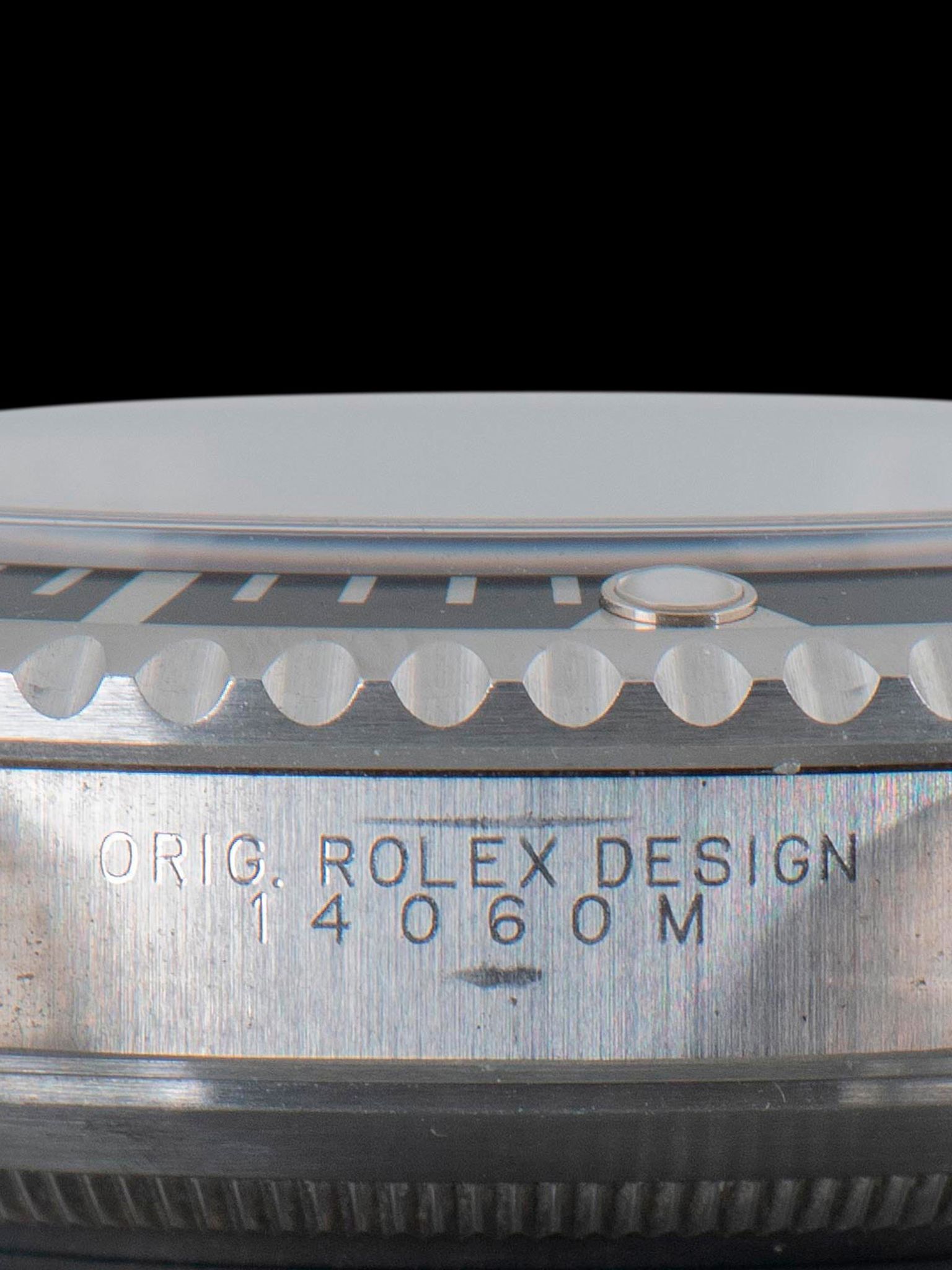 There is essentially two versions of the Rolex 14060M, known best to collectors as the 2-line dial and the 4-line dial. The main differences between the two, is well, the number of lines of text on the dial. The 2-line dial 14060M came first and was in production from 2000-2008. The 4-line dial came into existence when Rolex made the descision to submit the cal. 3130 movement to COSC to be chronometer certified, hence the "superlative chronometer officially certified" text that exists beneath the depth rating that gives the dial it's two extra lines of text. Along with the chronometer certification and the extra lines of text, Rolex began engraving the inner rehaut with both the Rolex name and the watchs serial number, a traditional that now comes standard on any new Rolex watch.