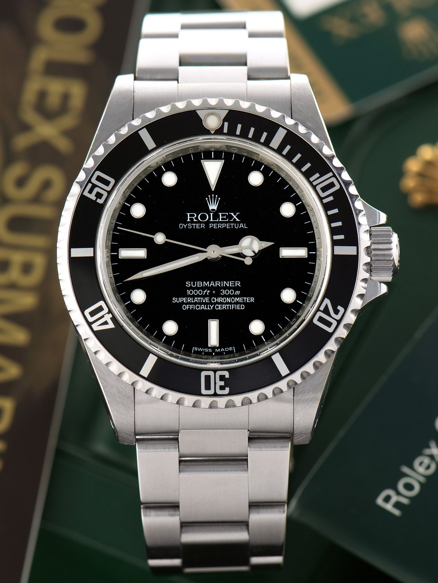 The ref. 14060 Rolex Submariner was introduced in 1990 as the new and improved version of its long-running predecessor, the legendary 5513. The 14060 featured a number of improvements from the 5513, including an increased depth rating to 300m or 1000 ft, a sapphire crystal, a 904L stainless steel case, and the upgraded cal. 3000 Rolex movement. The 14060 remained in production until 1999 when it was replaced by the 14060M reference, the "M" standing for modified as the 14060M was now outfitted with the Rolex cal. 3130 movement.