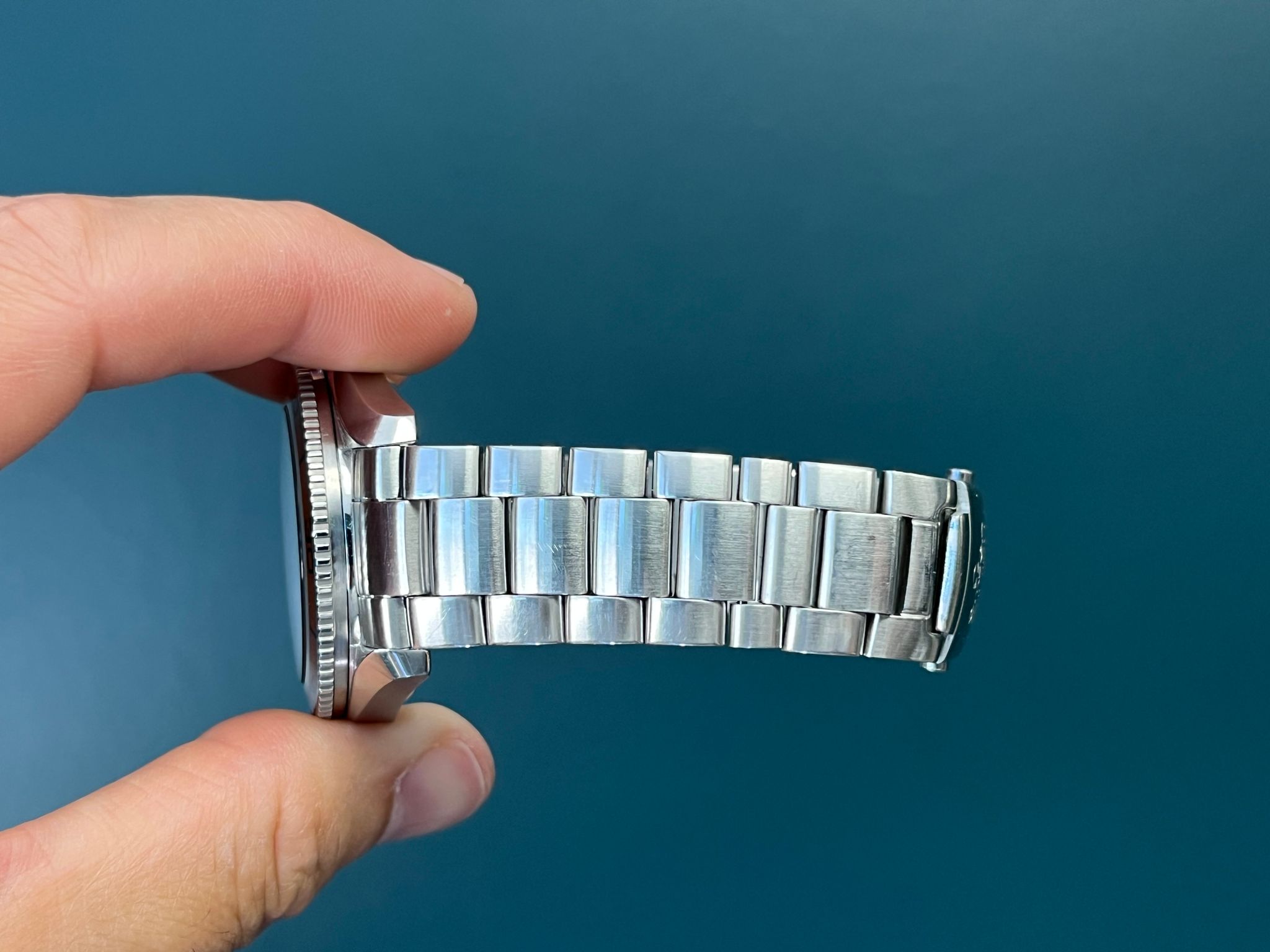 Todays example comes to us with its original papers 3/13/11, making it an excellent addition to any collection. The watch itself is in excellent pre owned condition. The case remains with thick lugs. The bracelet has 8 removable links and shows no stretch.