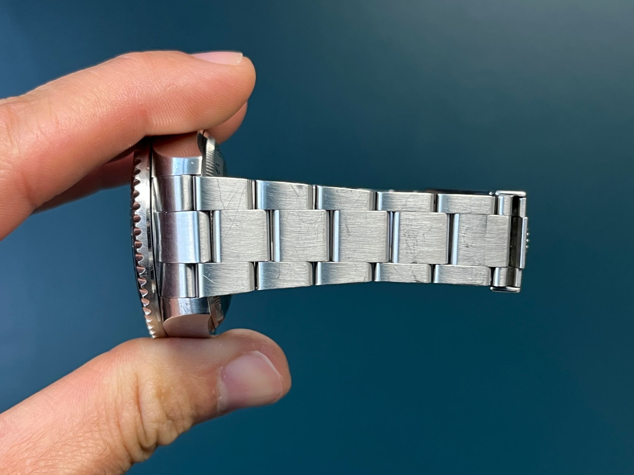 Today's example comes to us as a pre-owned full complete set example. The card is dated 1/30/11 and is accompanied by all the goodies, serial hang tags, booklets, wallet, double boxes and more. The bracelet is fully linked and shows no stretch while the rehault in engraved with the serial number. This example can use a light polish for like new condition and is running excellent.