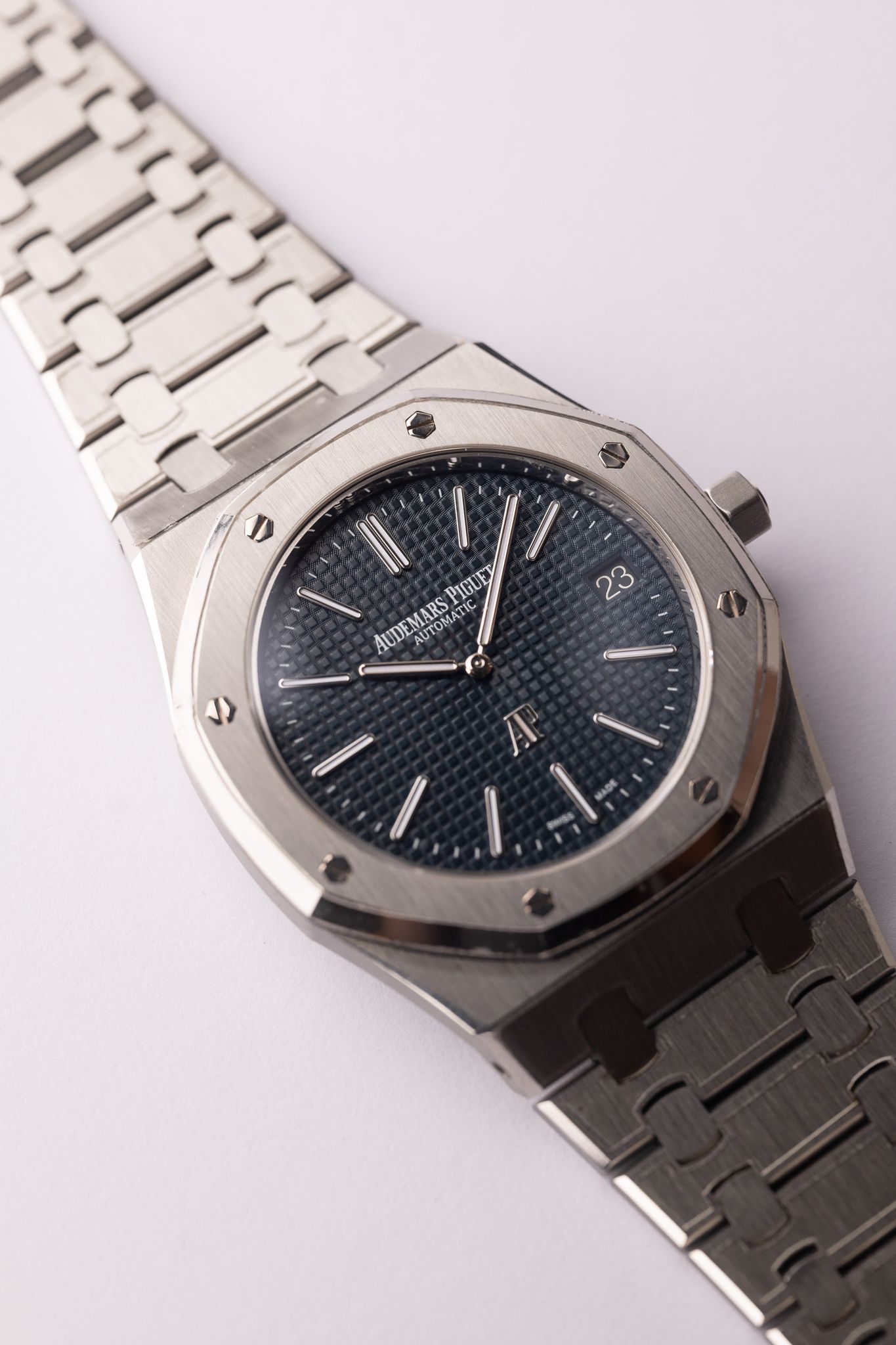 The 15202t is the spiritual successor to the 5402. It maintains the 39mm case and the ultra thin height the original Royal Oak was known for. This piece comes as a full set and is in excellent condition.the previous owner ran a clear protection film on the bracelet as well.