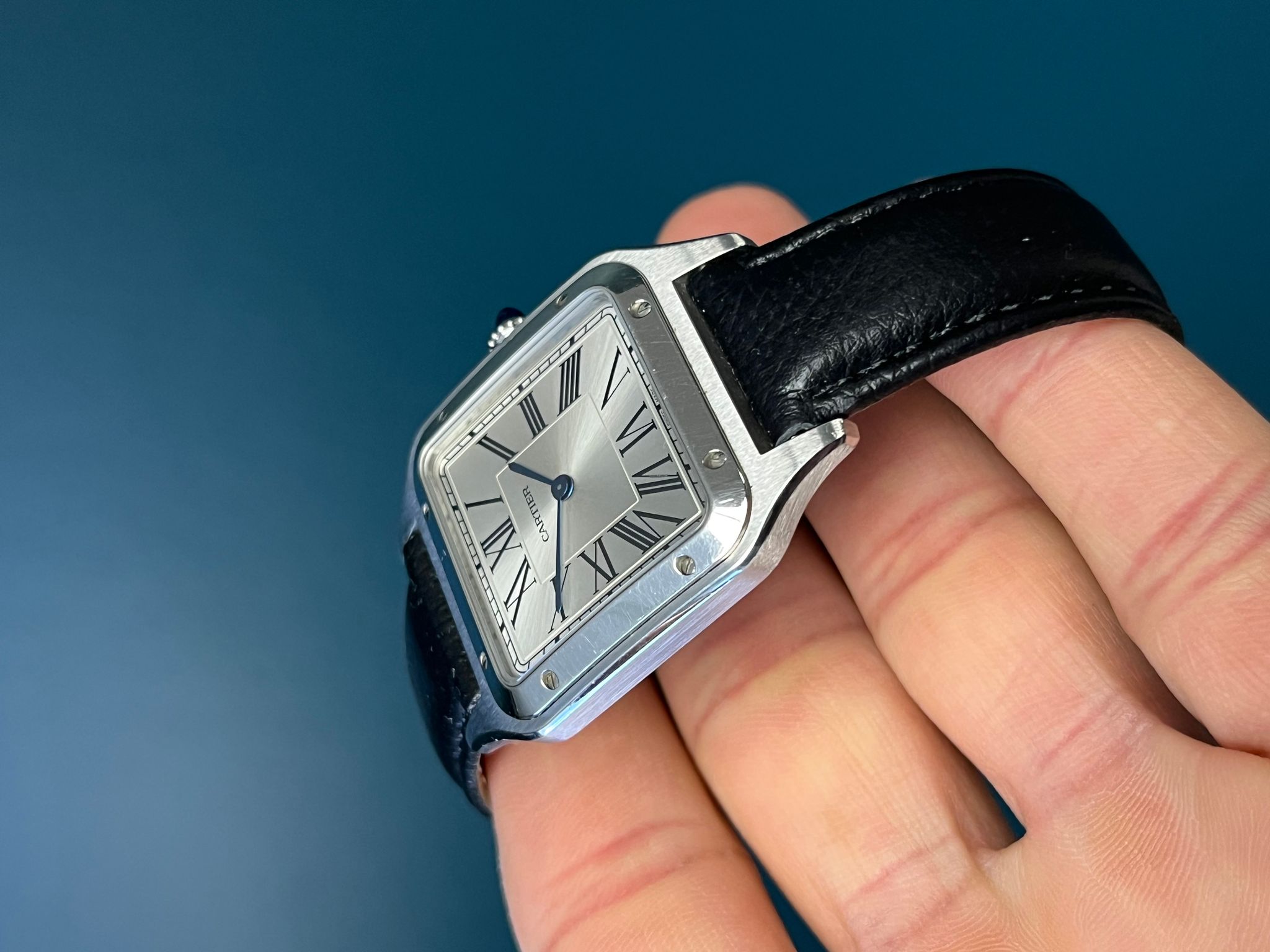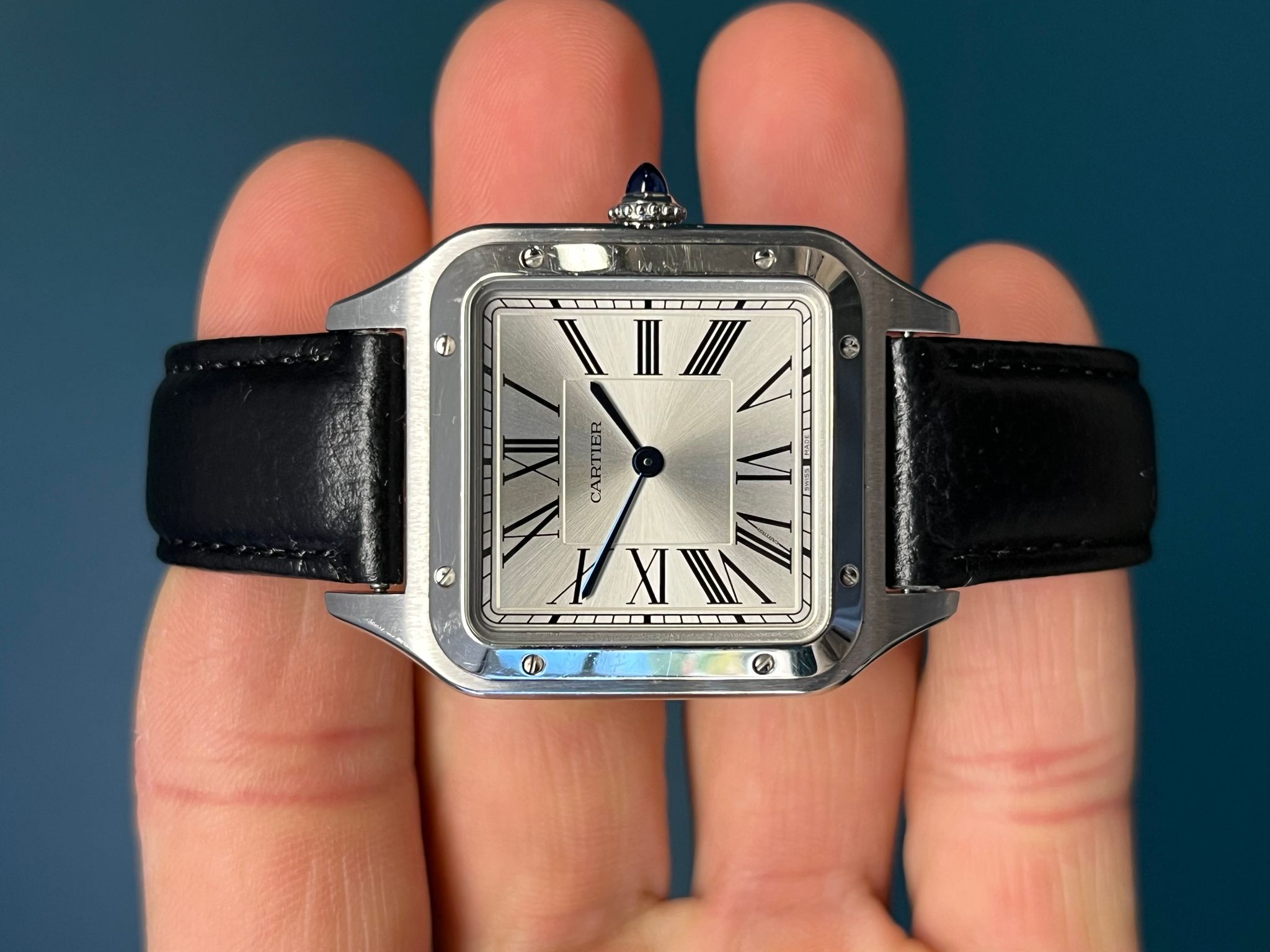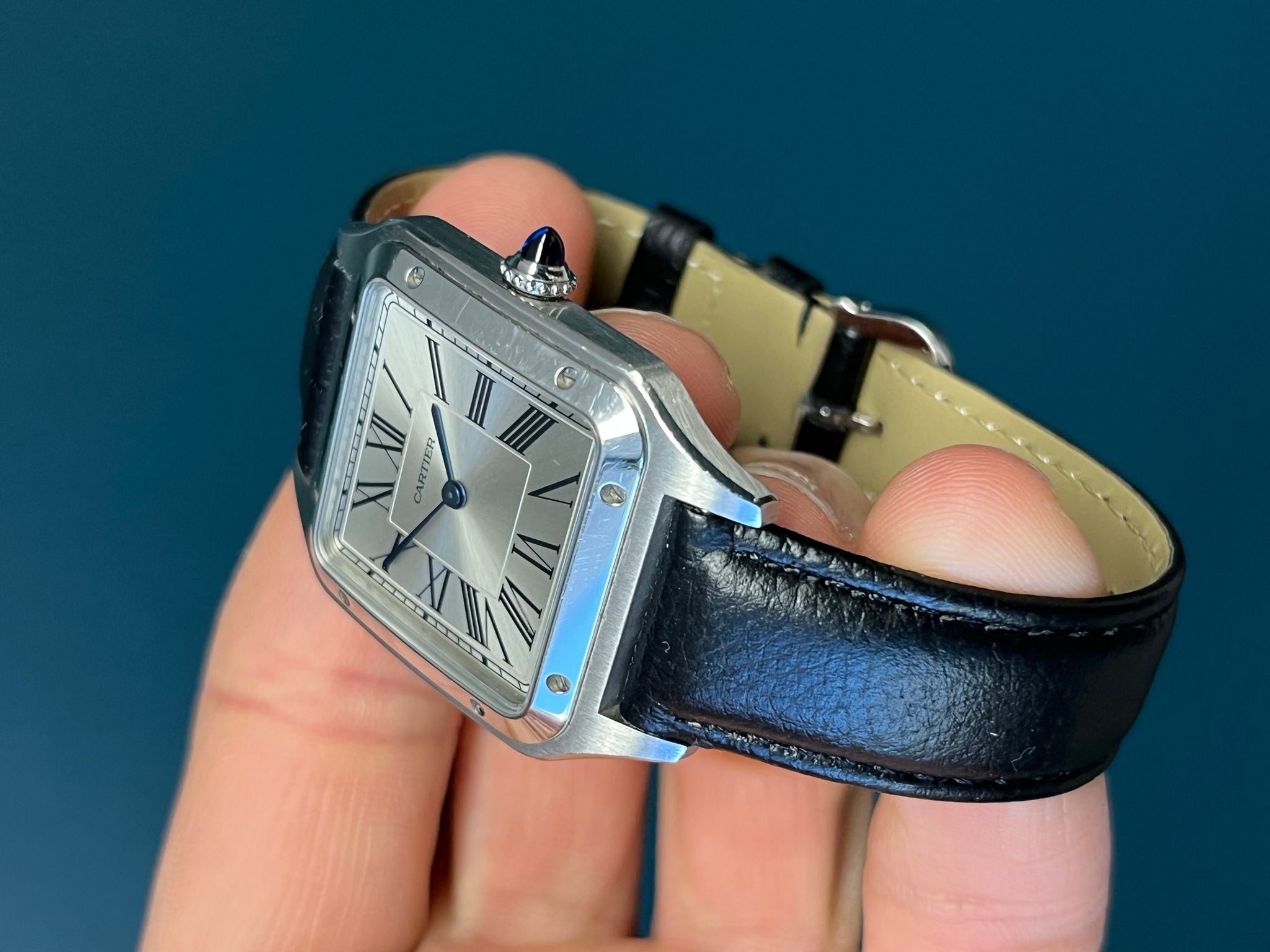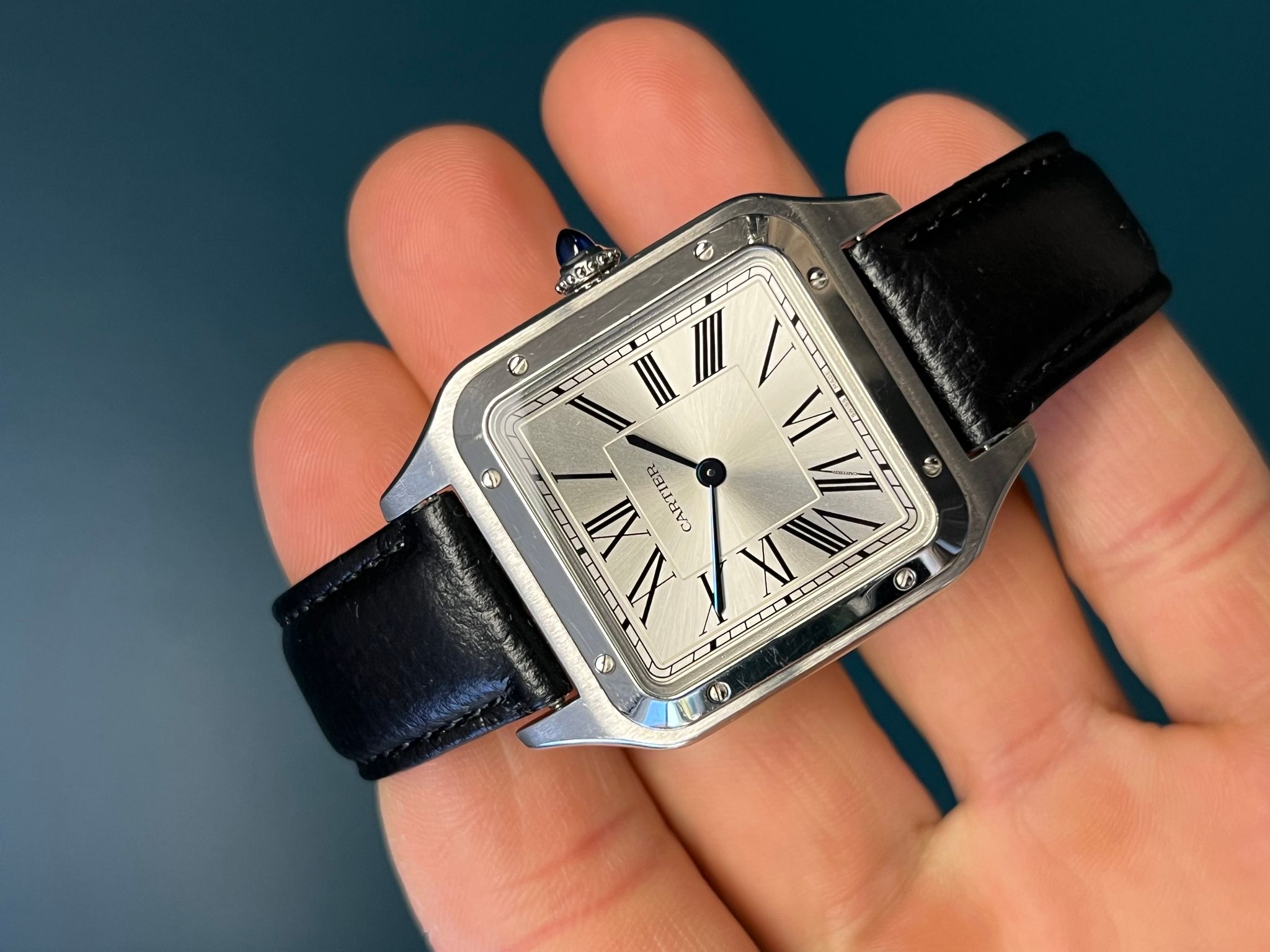 The Cartier Santos-Dumont Reference 4228 (WSSA0022) embodies classic sophistication with a contemporary edge. This exquisite timepiece features a refined stainless steel case with Cartier’s signature polished bezel, seamlessly blending vintage aviation heritage with modern craftsmanship. The silvered dial is adorned with bold Roman numerals and delicate blued steel hands, staying true to the timeless elegance of the Santos collection. Powered by a reliable quartz movement, this watch ensures precision and ease of wear. Accompanied by its original papers and purchase receipt, this set is a collector’s dream, offering both historical significance and investment-worthy appeal. A perfect choice for those who appreciate understated luxury and timeless design.