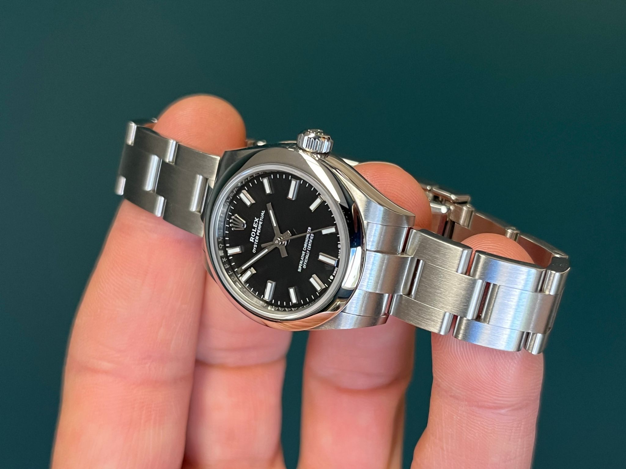 The Rolex Oyster Perpetual Ref. 276200 with a black dial is a modern classic that embodies the essence of Rolex design — timeless, versatile, and refined. Housed in a 28mm stainless steel Oyster case, this model is powered by the self-winding Caliber 2232, ensuring precision and reliability. The vibrant sunray-finished black dial adds a touch of elegance and depth, complemented by the clean layout and signature Oyster bracelet for everyday wearability. Offered as an unworn example & accompanied by its original box and papers, this example is turnkey ready to go.
