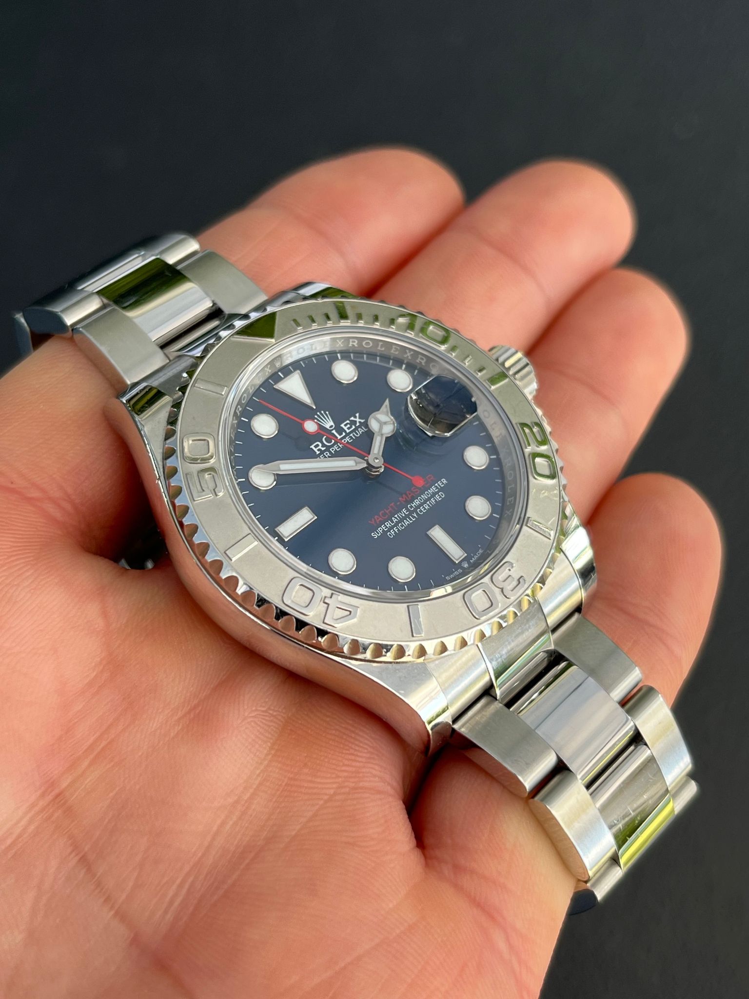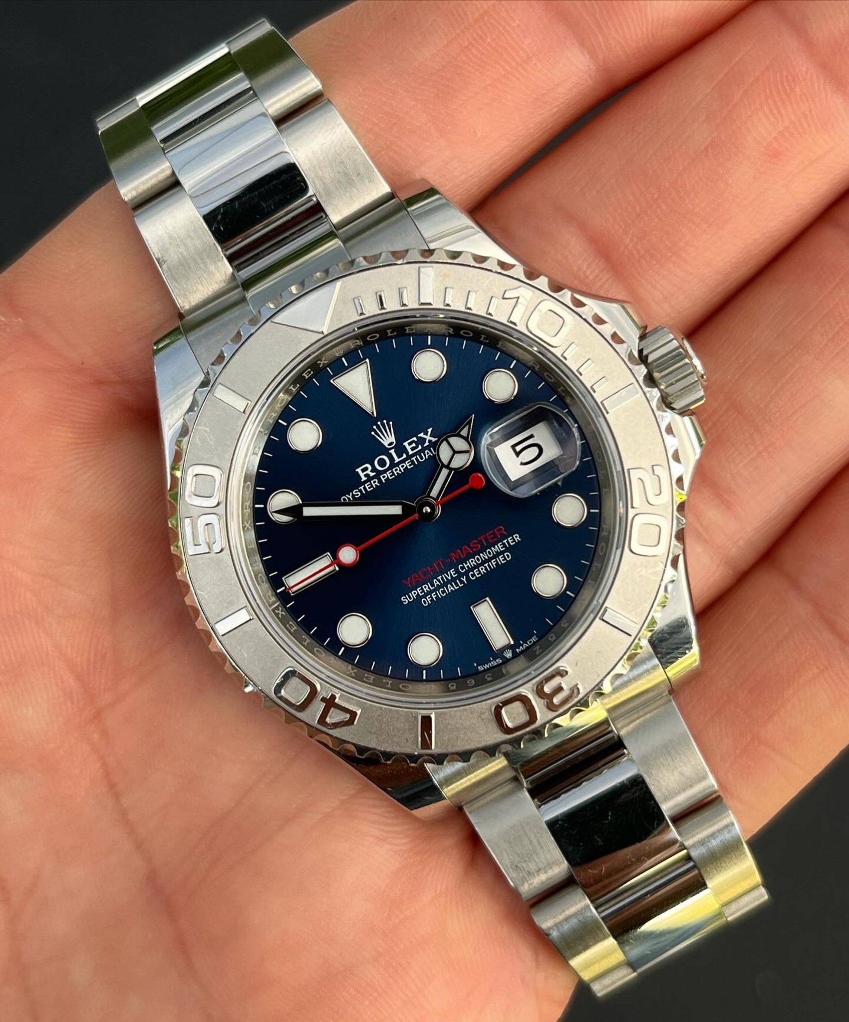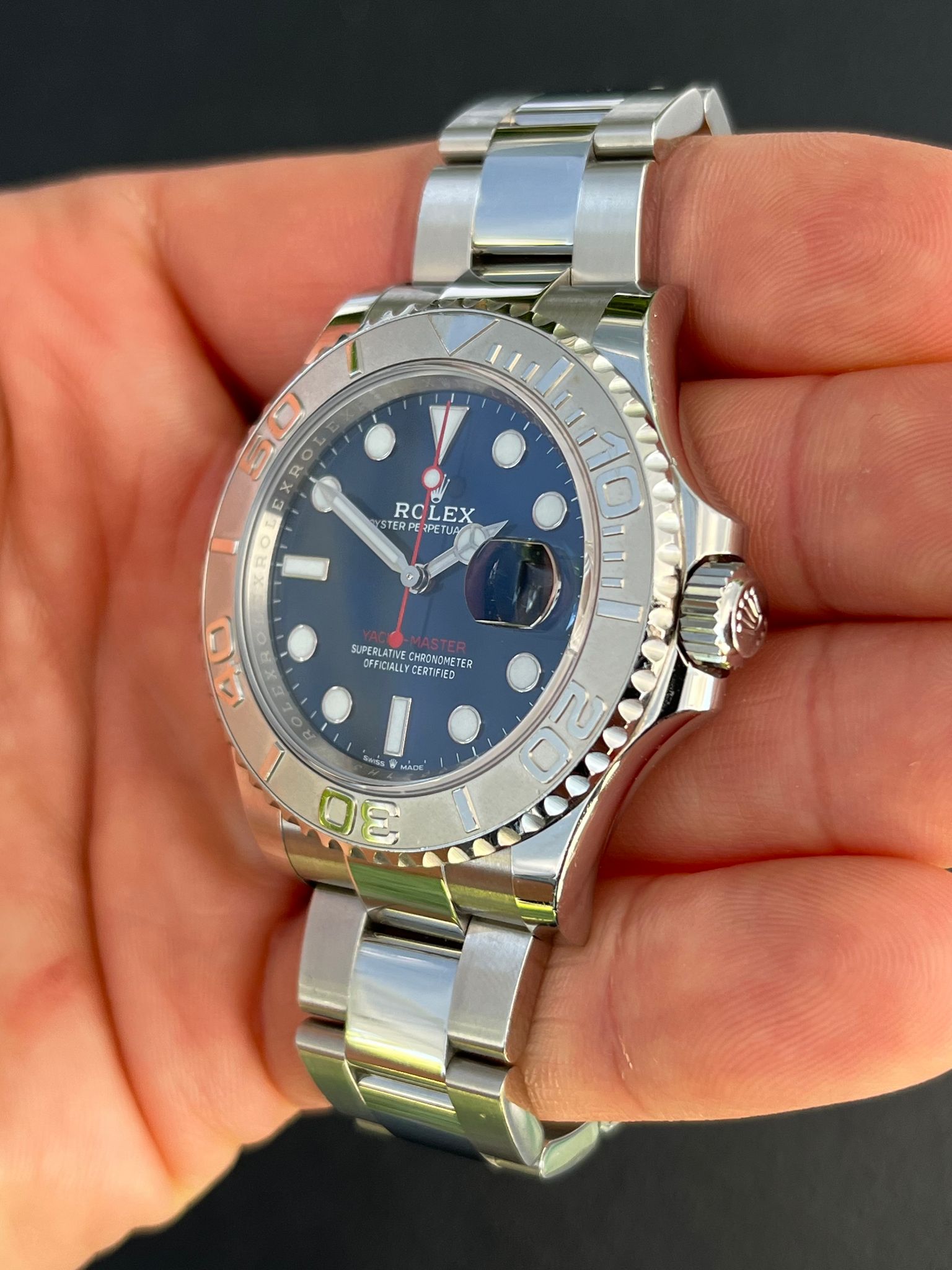 The Rolex Yacht-Master reference 126622 embodies a perfect blend of nautical elegance and technical prowess. This exquisite timepiece is crafted with precision, featuring a sleek stainless steel case and a platinum bidirectional rotatable bezel. The sunburst blue dial is a captivating focal point, adorned with luminous hour markers and hands that ensure optimal readability in any maritime adventure. Powered by the caliber 3235 movement, the Yacht-Master 126622 delivers unparalleled accuracy and reliability. Its Oyster case is waterproof up to 100 meters, providing durability for both on-deck excursions and underwater explorations. With a sophisticated combination of style and functionality, this Rolex timepiece is a symbol of maritime luxury, making it the perfect companion for those who appreciate the finer things in life.