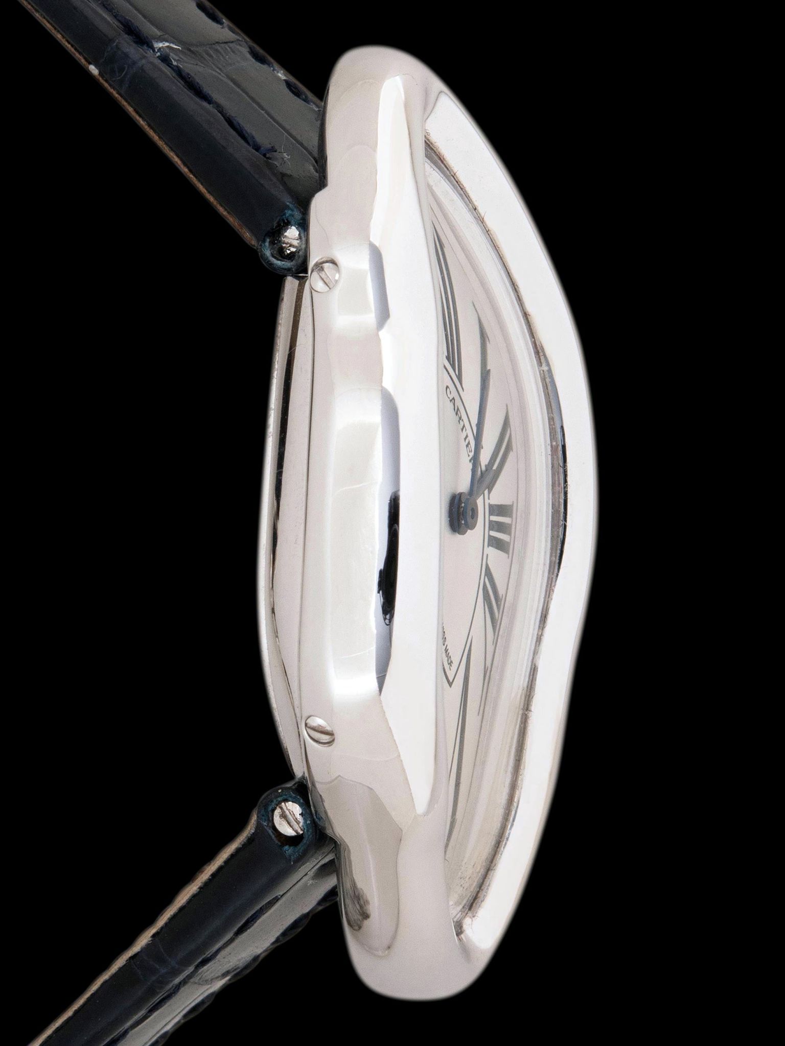 We are extremely proud to present this exceptionally beautiful, charming, and rarely seen Cartier Crash in 18K white gold, conceptualized from the Cartier NSO program in 2022, and one of less than 10 known white gold Crash to exist from the modern era. This example comes to us in exceptionally well-preserved, minimally worn condition, with its original box and papers set.