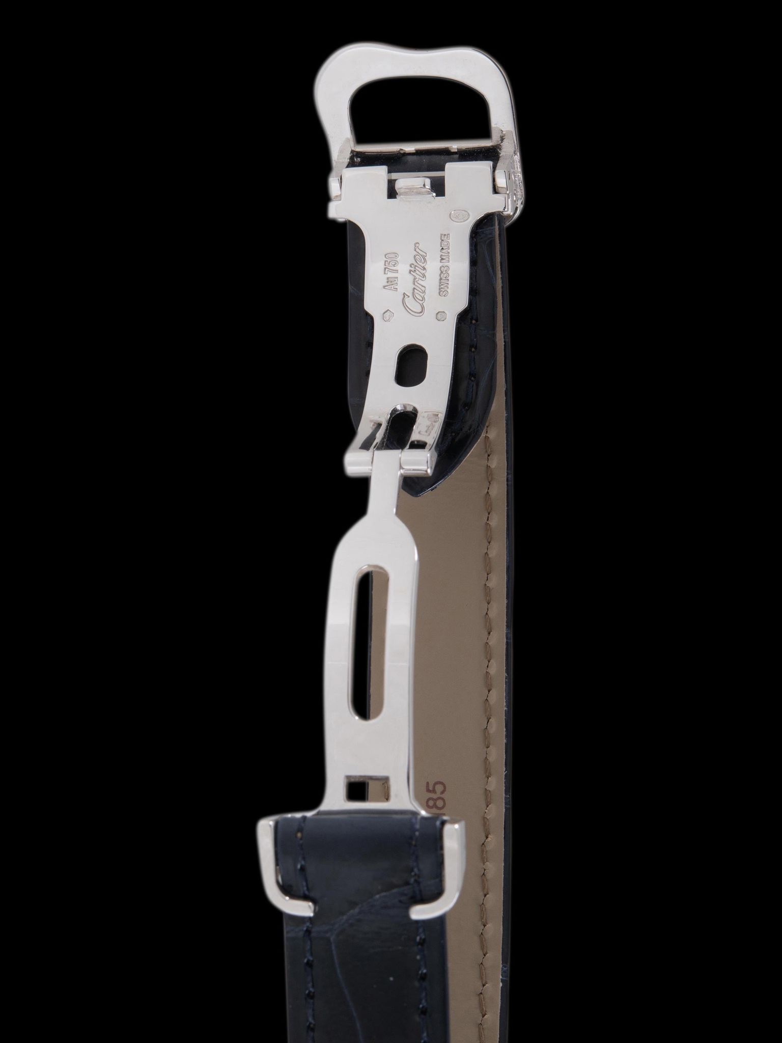 Strap 2pc Cartier Blue Patent Alligator Leather Strap W/ 18K WG Cartier Crash Deployant Clasp