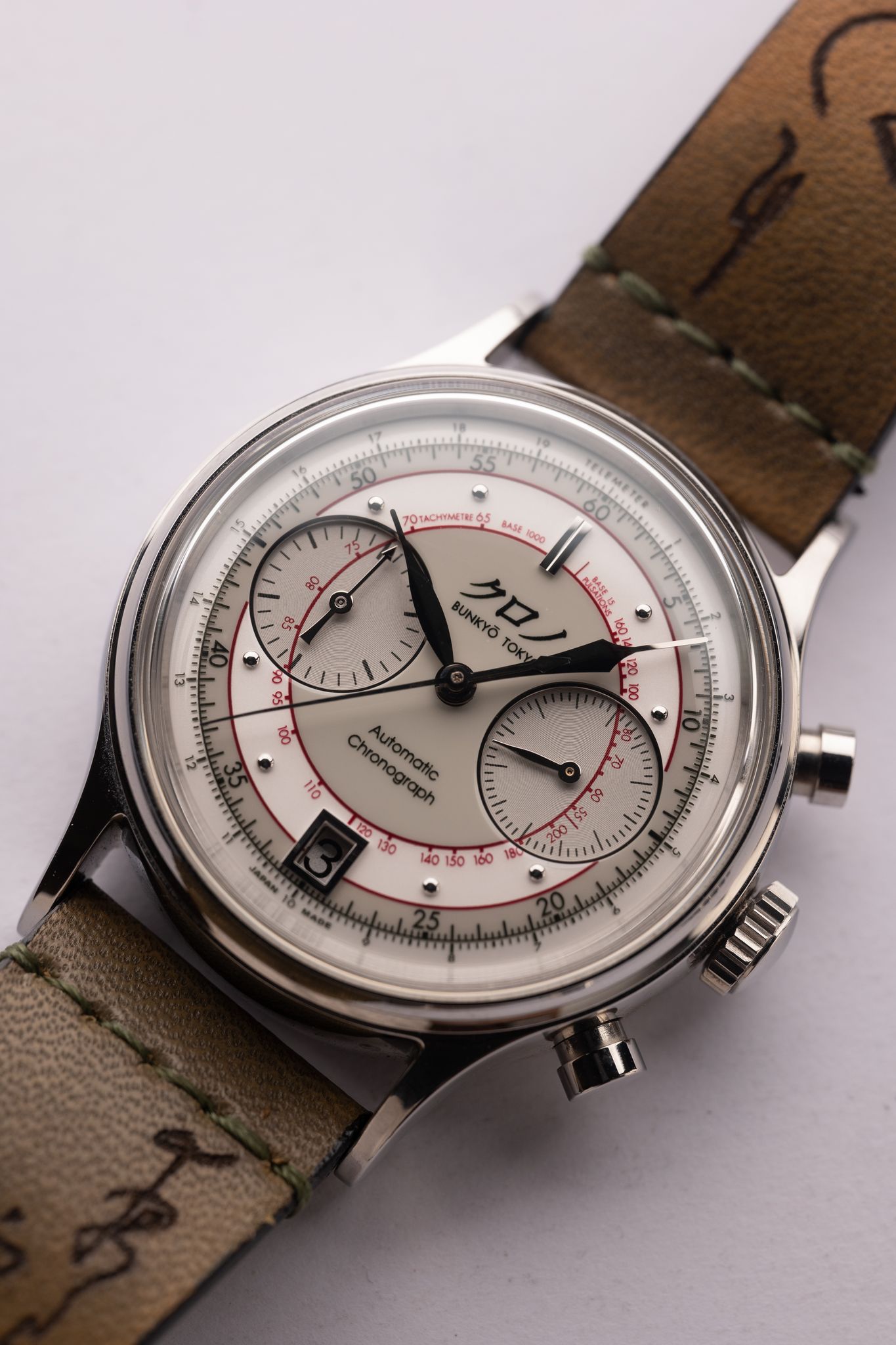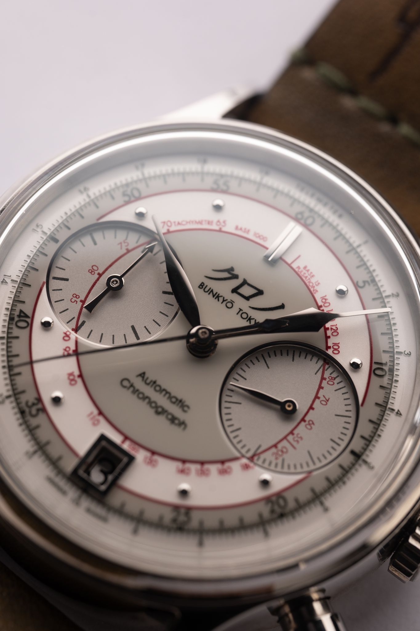 “The chronograph ii white, nicknamed ‘shiro’, is a refined interpretation of the iconic chronograph ii design by hajime asaoka • a longer prototyping period has allowed for numerous improvements across the board • from higher definition printing to greater depth of field from thicker lacquer • from light refraction and concentric guilloche, to parallax overprinting and ‘kyudo’ arrow hands • we hope customers will find pleasure in the exploration of the details put into the construction of the watch