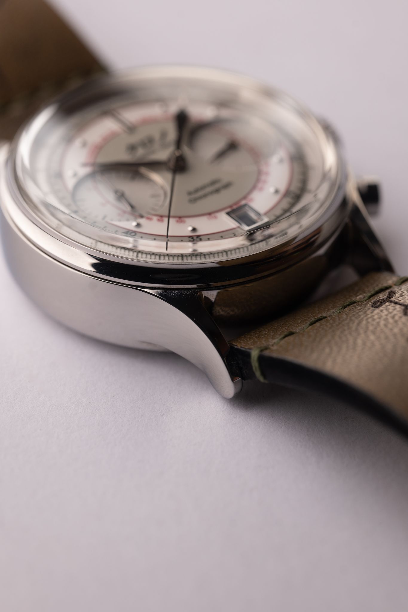 ‘simple elements such as the white on the dial is much more than just color – the brilliance of the white was achieved by fine sandblasting of the dial followed by silvering, and with the thick lacquer giving it the appearance of bright white’