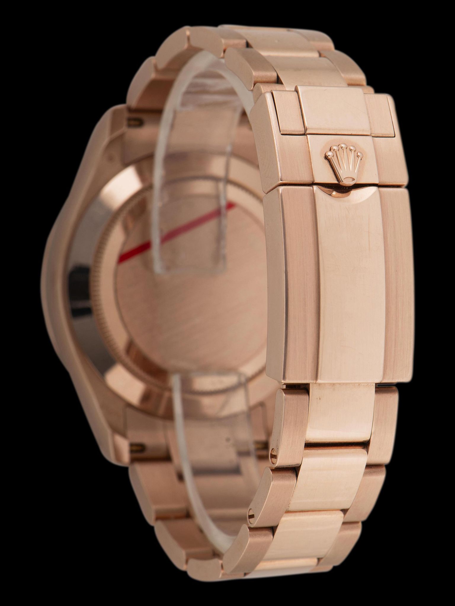 The 18K rose gold case remains in excellent condition, showing only gentle signs of previous use through the case and bracelet, with no notable dings or scratches present. The bracelet retains 11 links, fitting up to a 7.25-inch wrist. The watch comes with 2 additional links, making for a fully linked bracelet when installed.