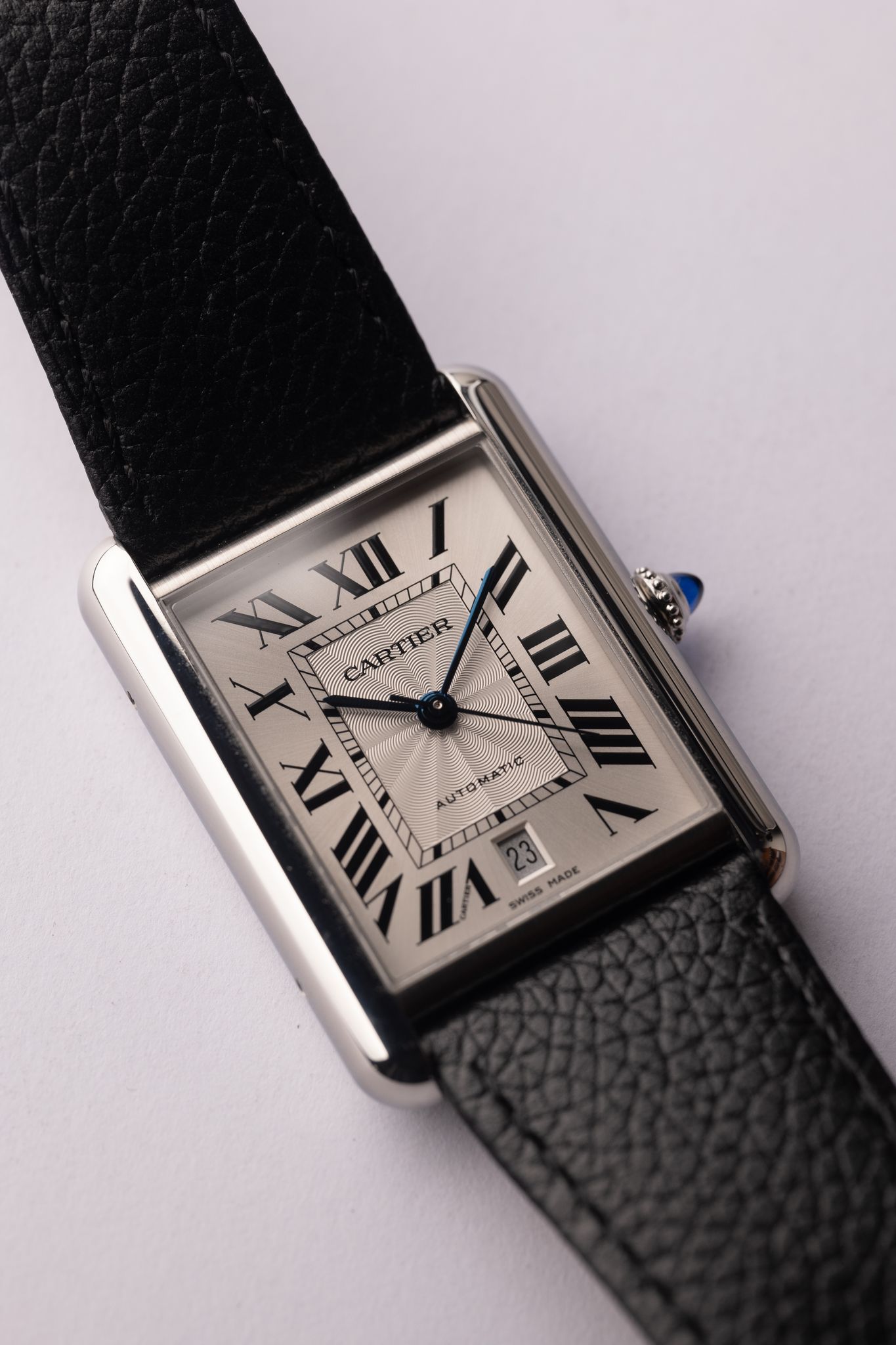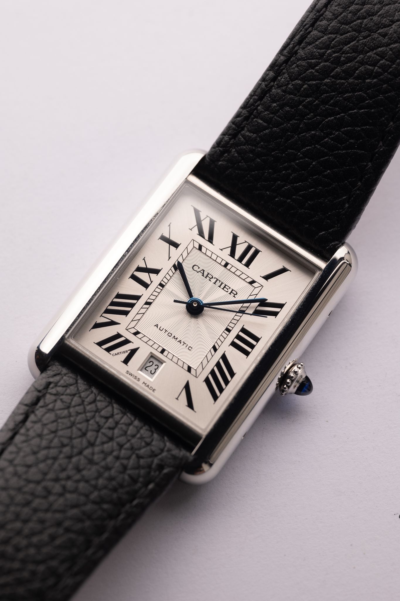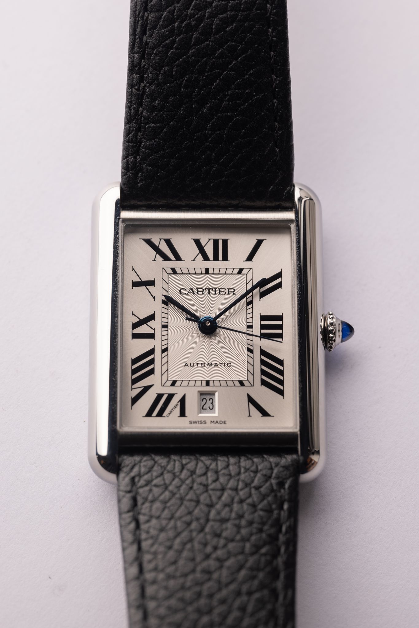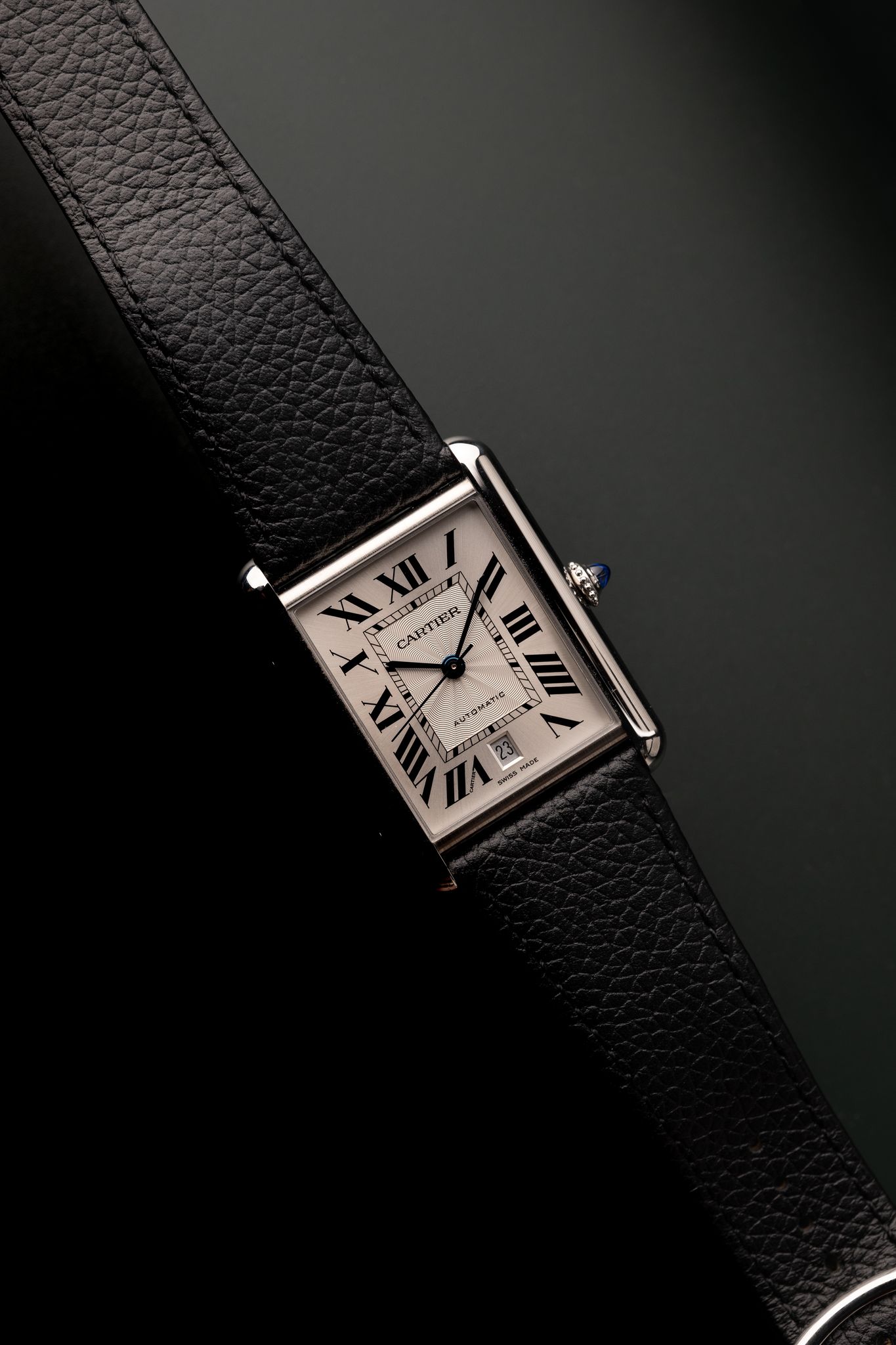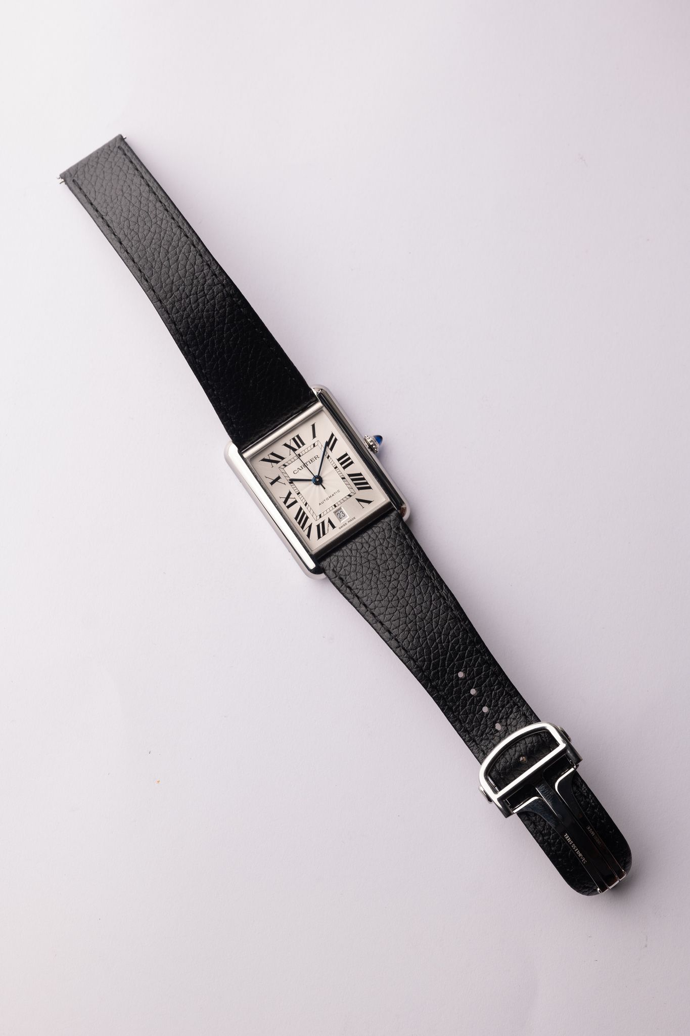 The Cartier Tank Must XL is for the bigger wrist individuals that don’t want to miss out on the rectangular watch season upon us. This stainless mechanical Tank is 31 x 41mm and wears like an XL tank, name. Complete with box tags and cards this full set doesn’t look like it yes’s ever been worn. We believe there is a stainless steel bracelet that Cartier makes that would be a perfect compliment to this watch along side the leather strap.