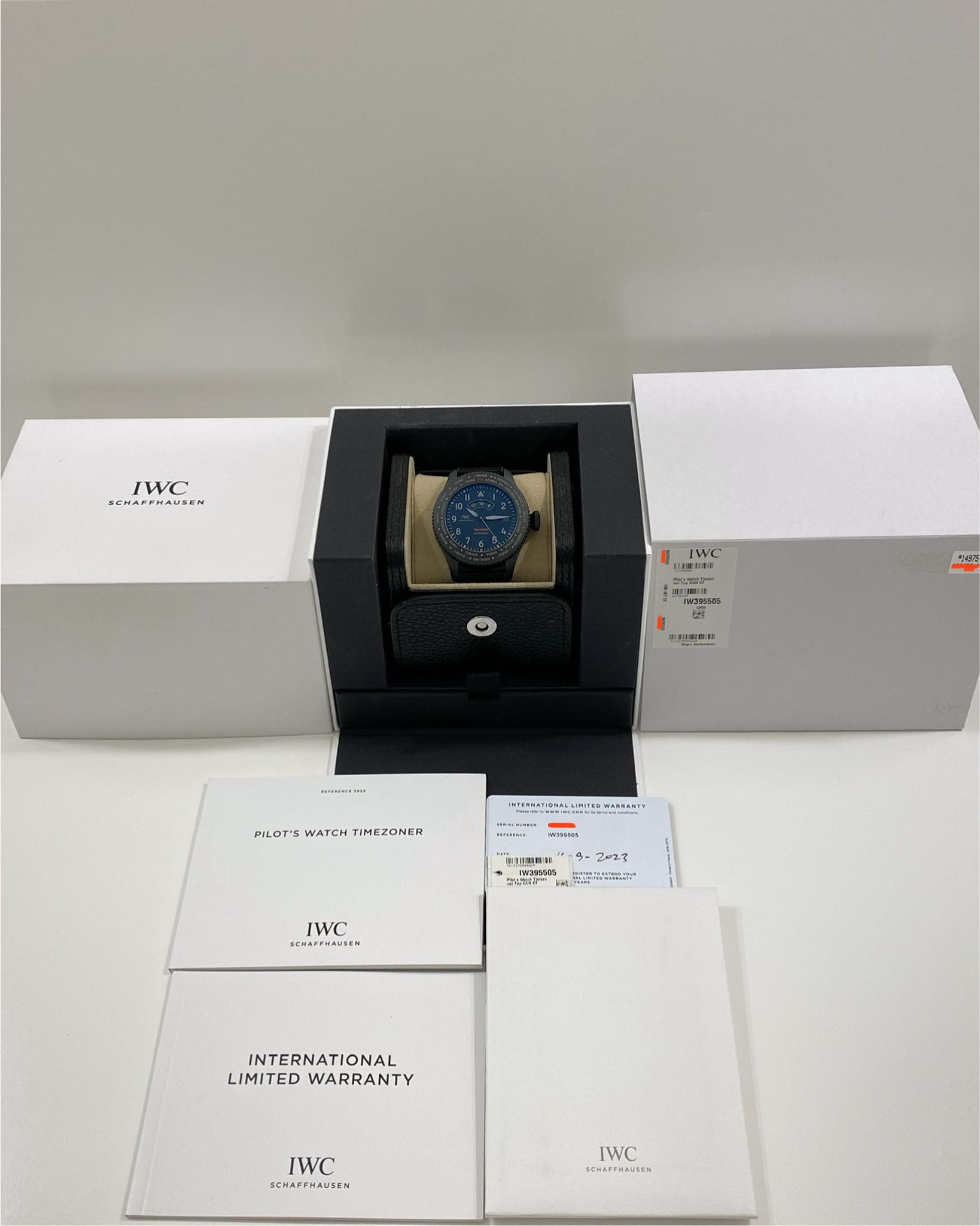For sale is a mint condition 46mm Ceratanium IWC Pilot’s Watch Timezoner Top Gun Ceratanium. The IW395505 was originally retailed in late 2023, is accompanied by full box and papers, and is under factory warranty until late 2031.