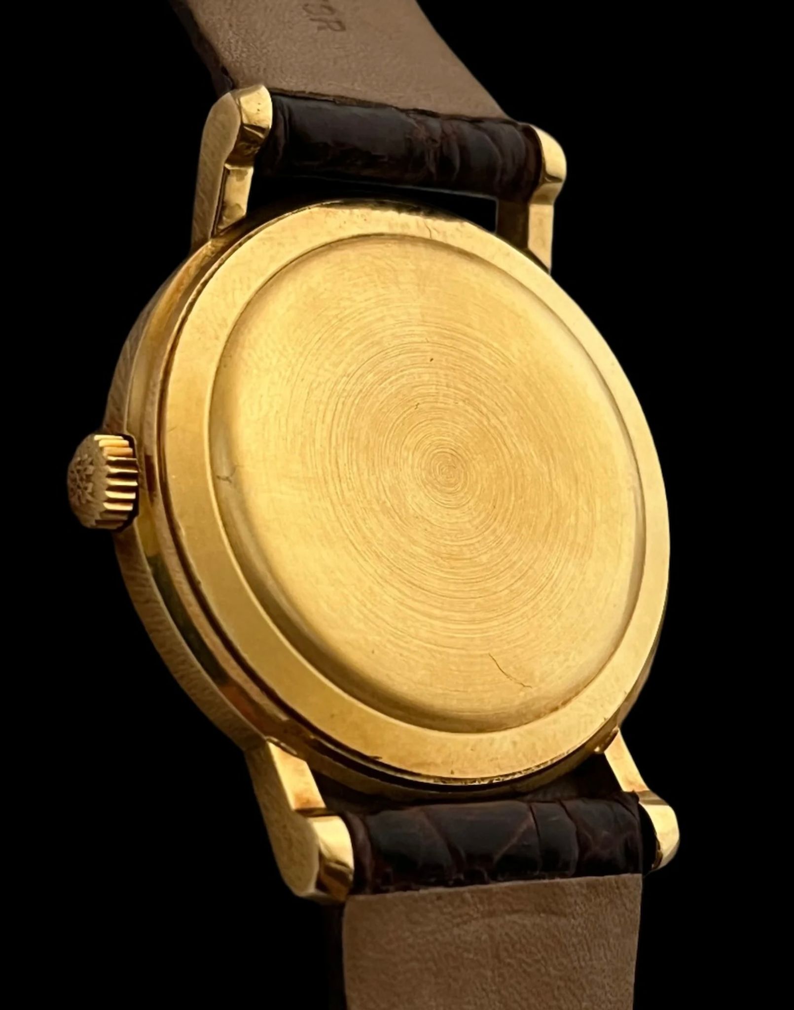 This is an extremely rare Patek Philippe Calatrava reference 3423 with a crosshair dial! It is one of the most unique Patek dials created in the 1960's and reminiscent of the Gilbert Albert designs without the large price premium attributed to those models. The condition of the dial and case are excellent on this watch and it has its original box as well. The watch is lovely on the wrist with the symmetry of the dial design.